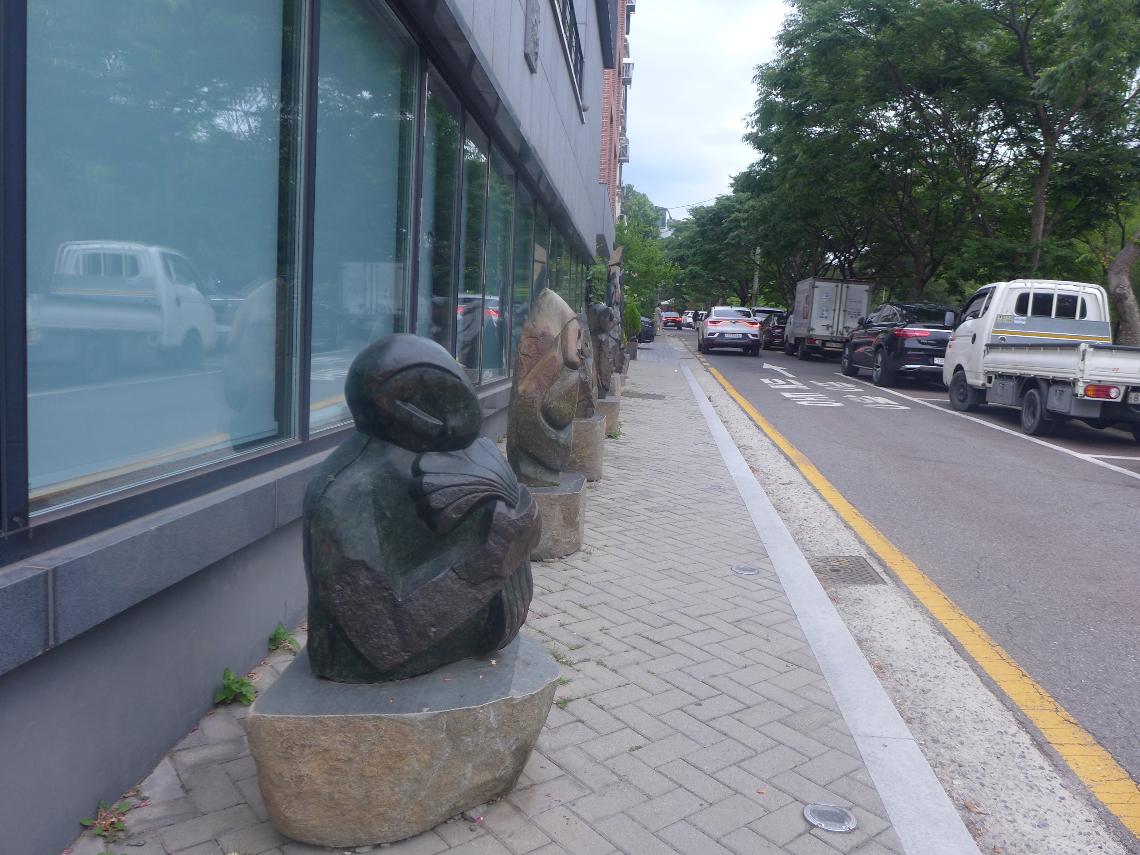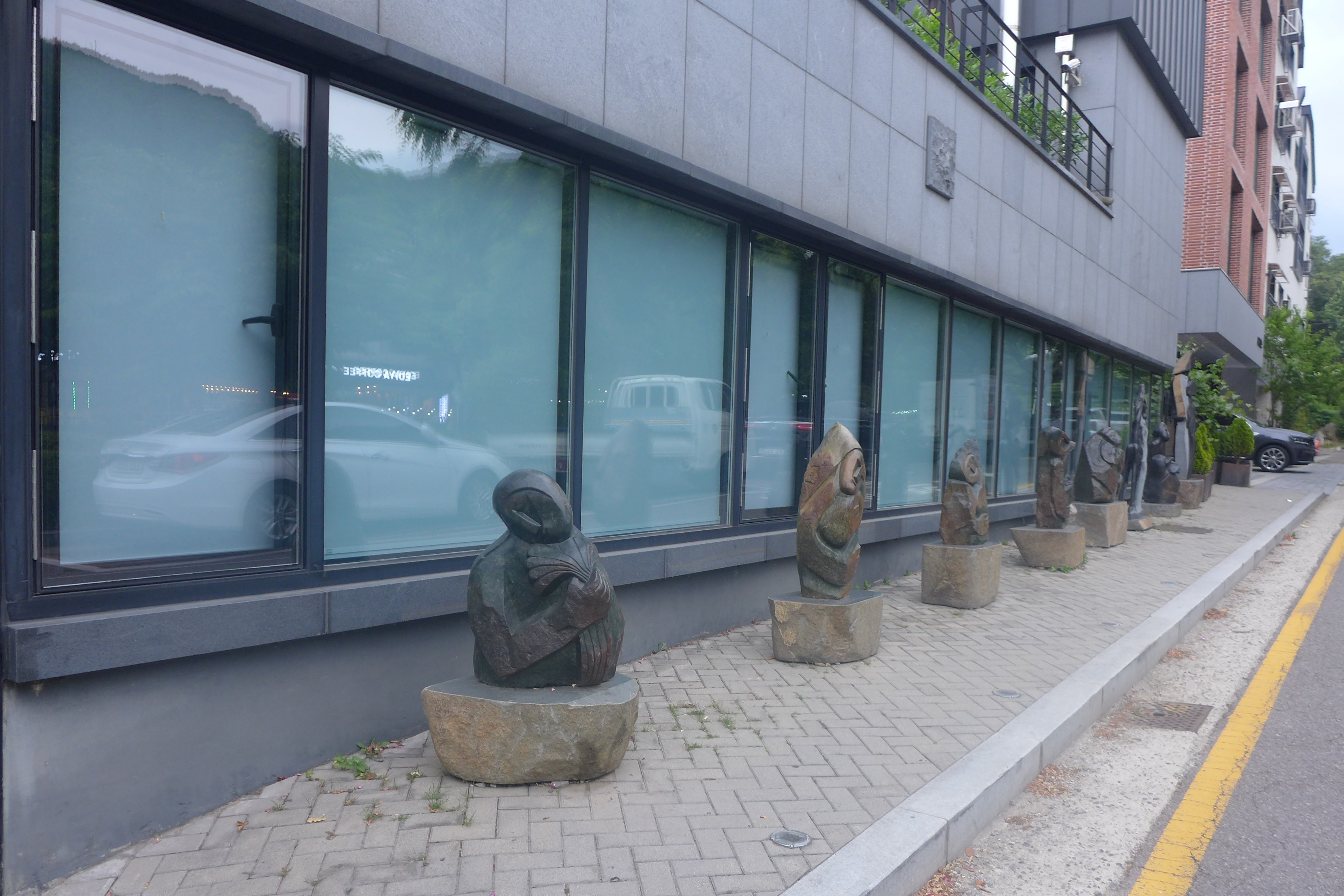 2025.06.15/ #도시기록 #안양./ 안양예술공원 스페이스 크리오홀 건물앞 길가로 나온 미술 조각품들.