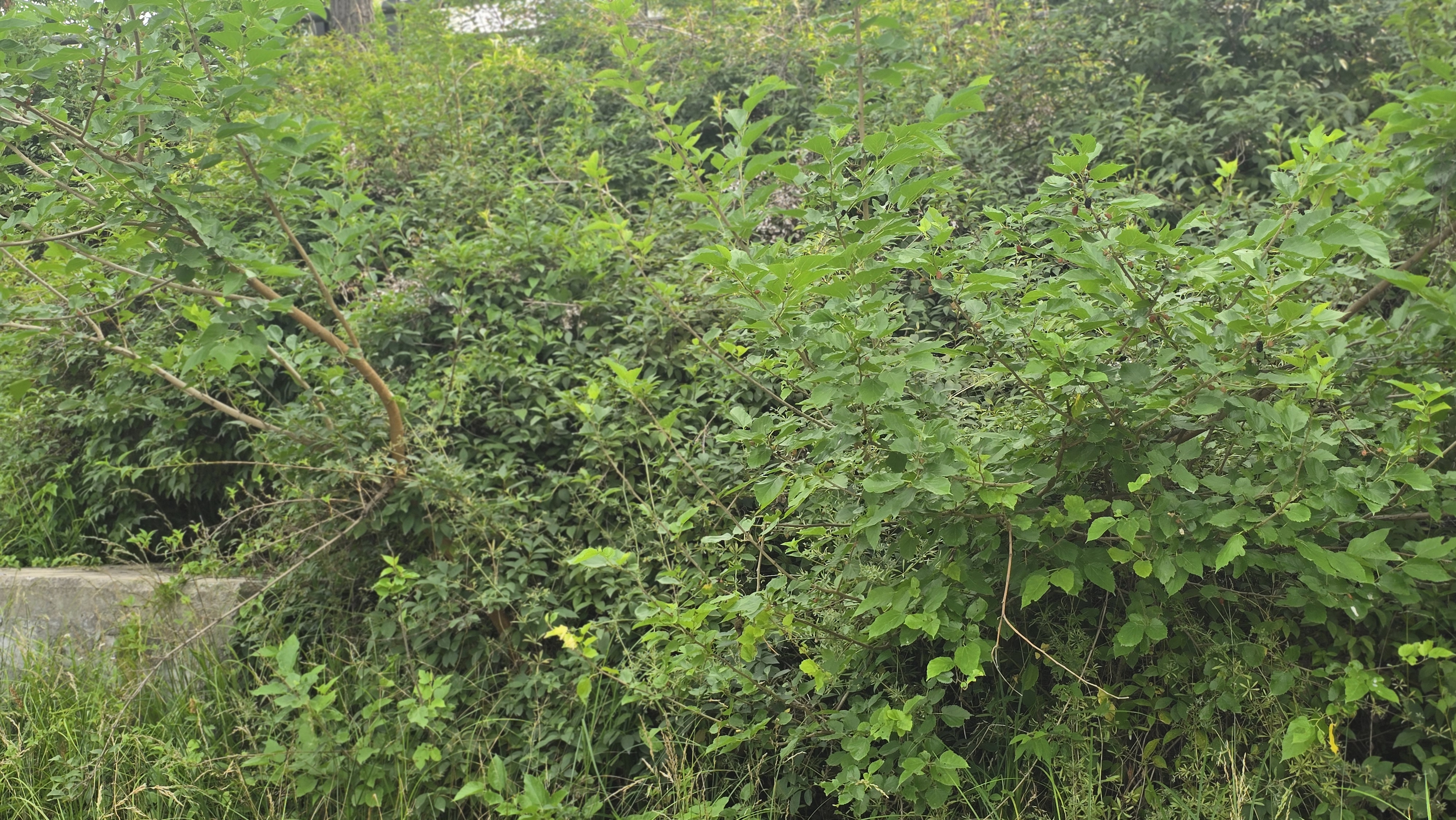 2025.06.19/ #도시기록 #안양 #뽕나무 #학의천/ 안양천과 지천에 뿌리를 내리고 잘 살면서 여름이면 주렁주렁 매달린 오디가 까맣게 익어가는 모습을 보여주었던던 뽕나무들. 치수대책을 이유로 뽑히고 베어지면서 사라져 이젠 보기가 어러워졌다. 6월19일 오후학의천에 대한 생태모니터링중 안양 학의천 중류 인덕원교 다리 근처(학의천 남단 제방 사변 인덕원교에서 인덕원인도교 방향 200미터)에서 두그루가 존재하고 있음을 발견하다.