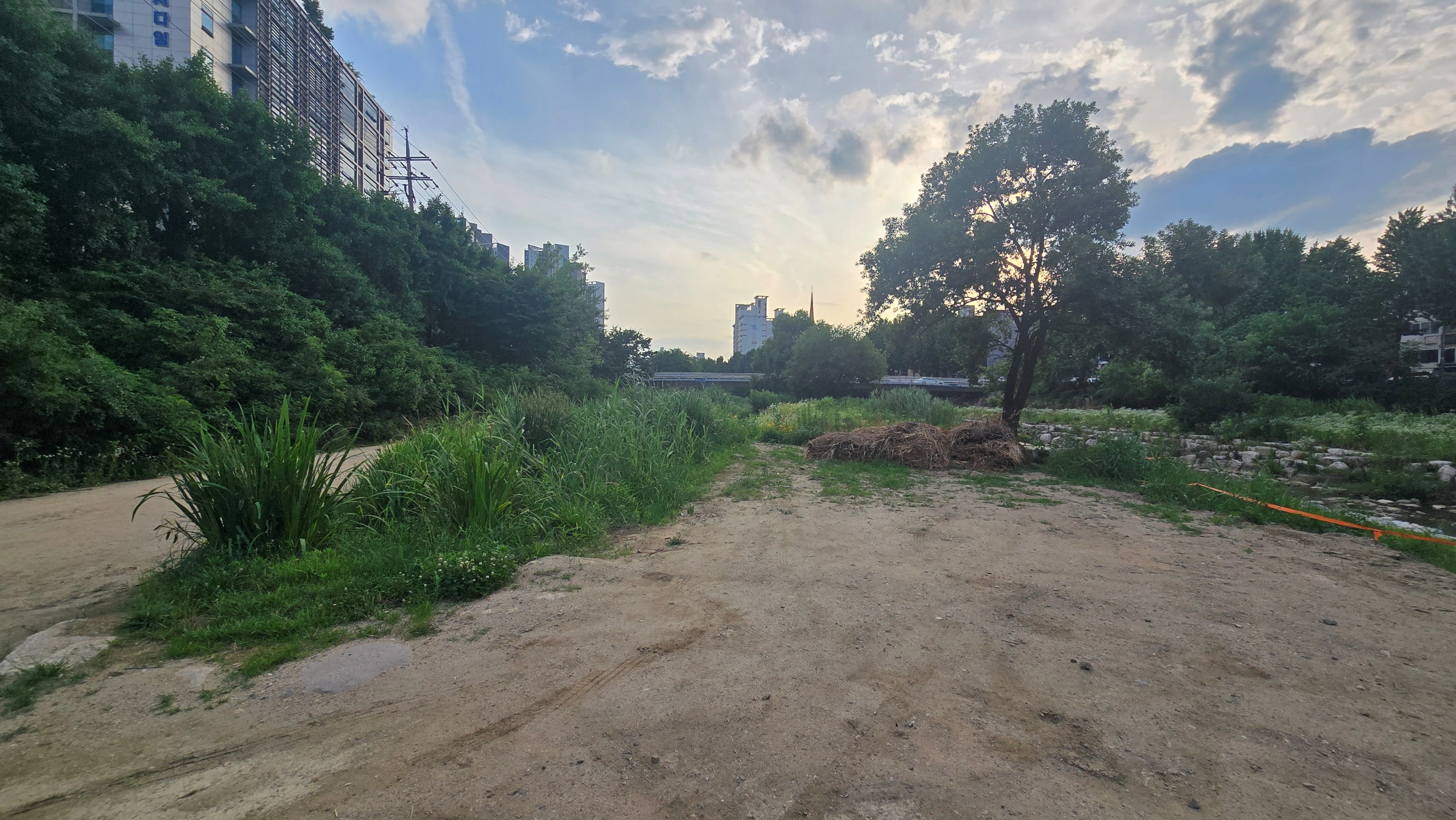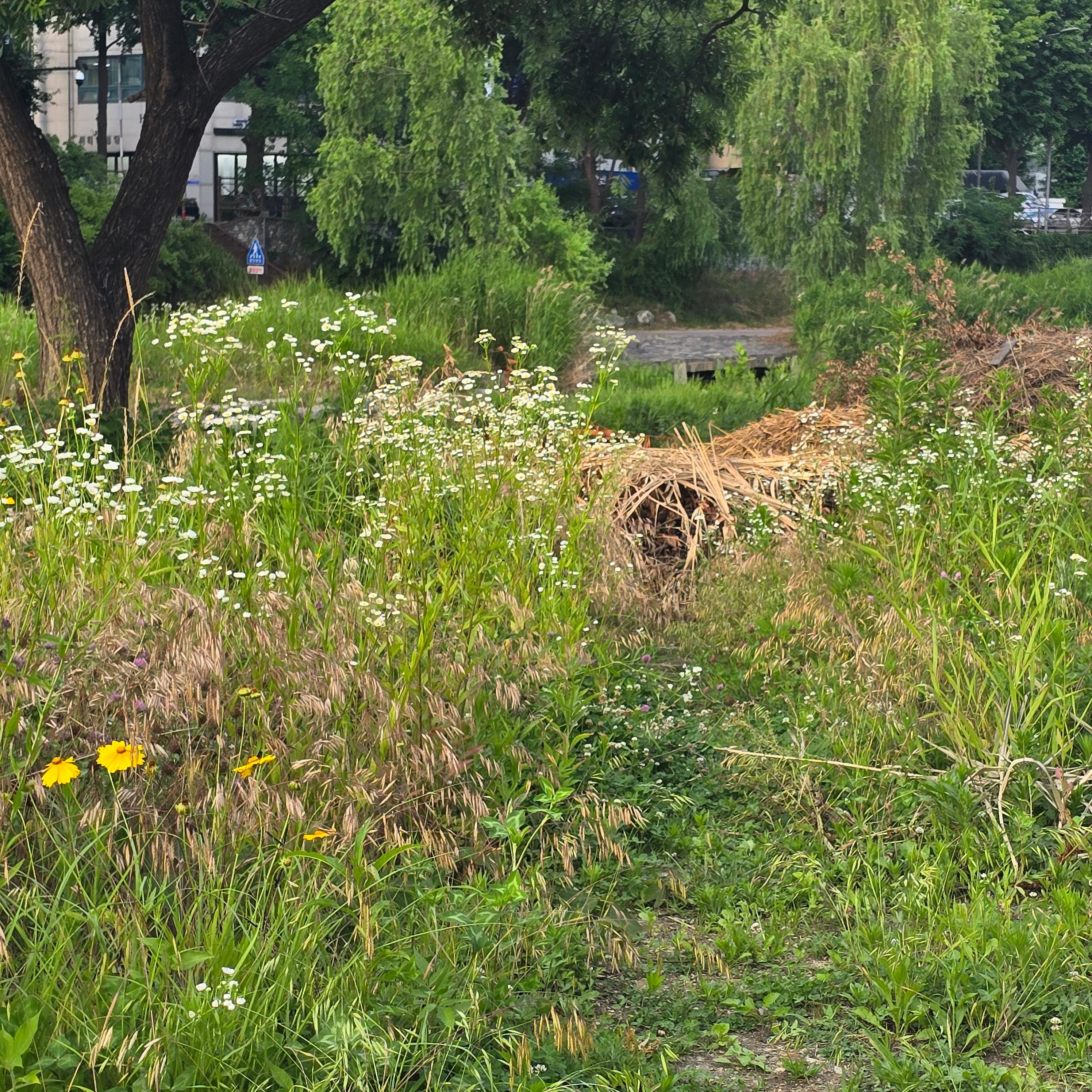 2026.06.19/ #도시기록 #안양 #학의천 #동안습지 #쉼터/ 안양 학의천 동안교옆 동안습지. 나무 그늘이 없어 쉼터로는 취약하다.