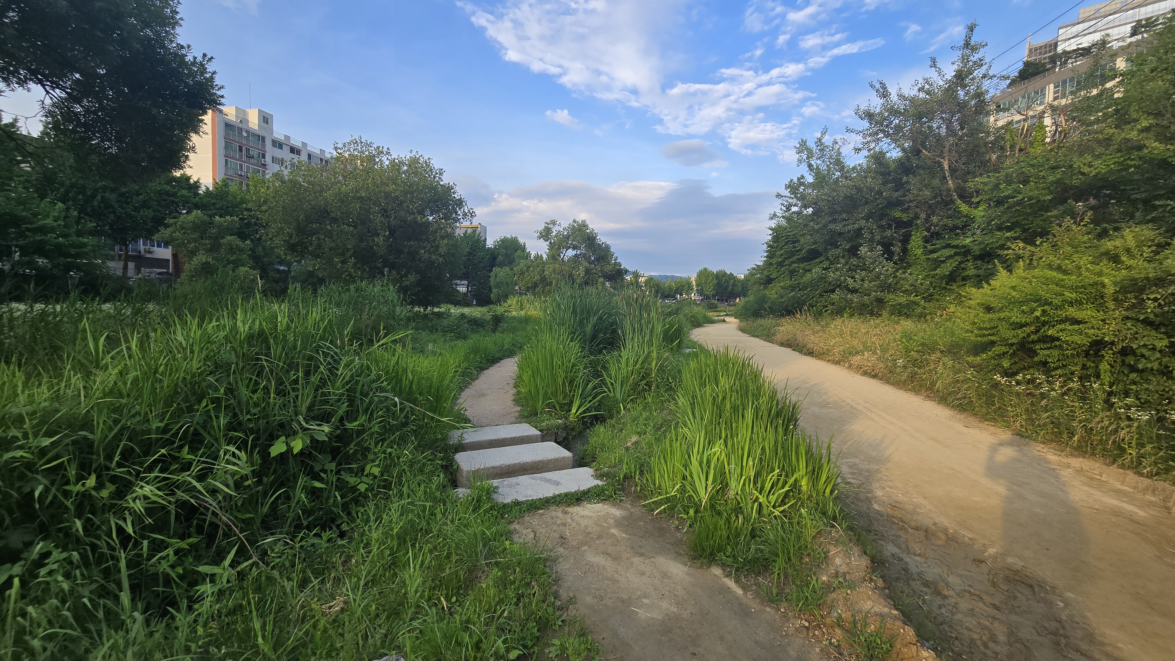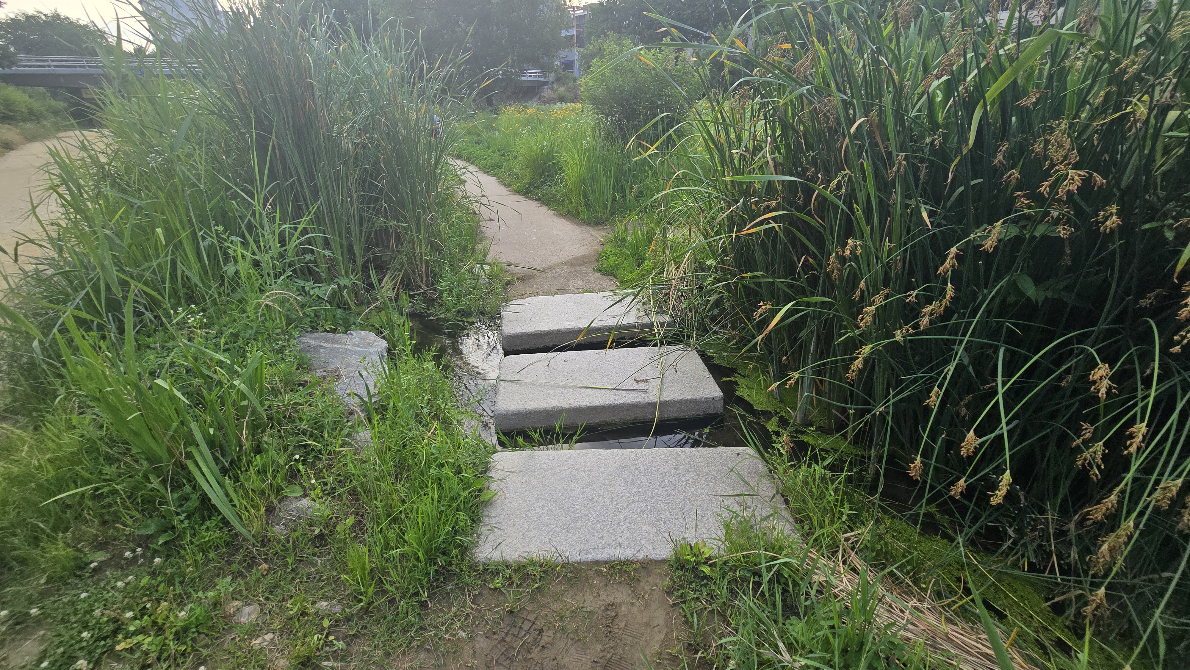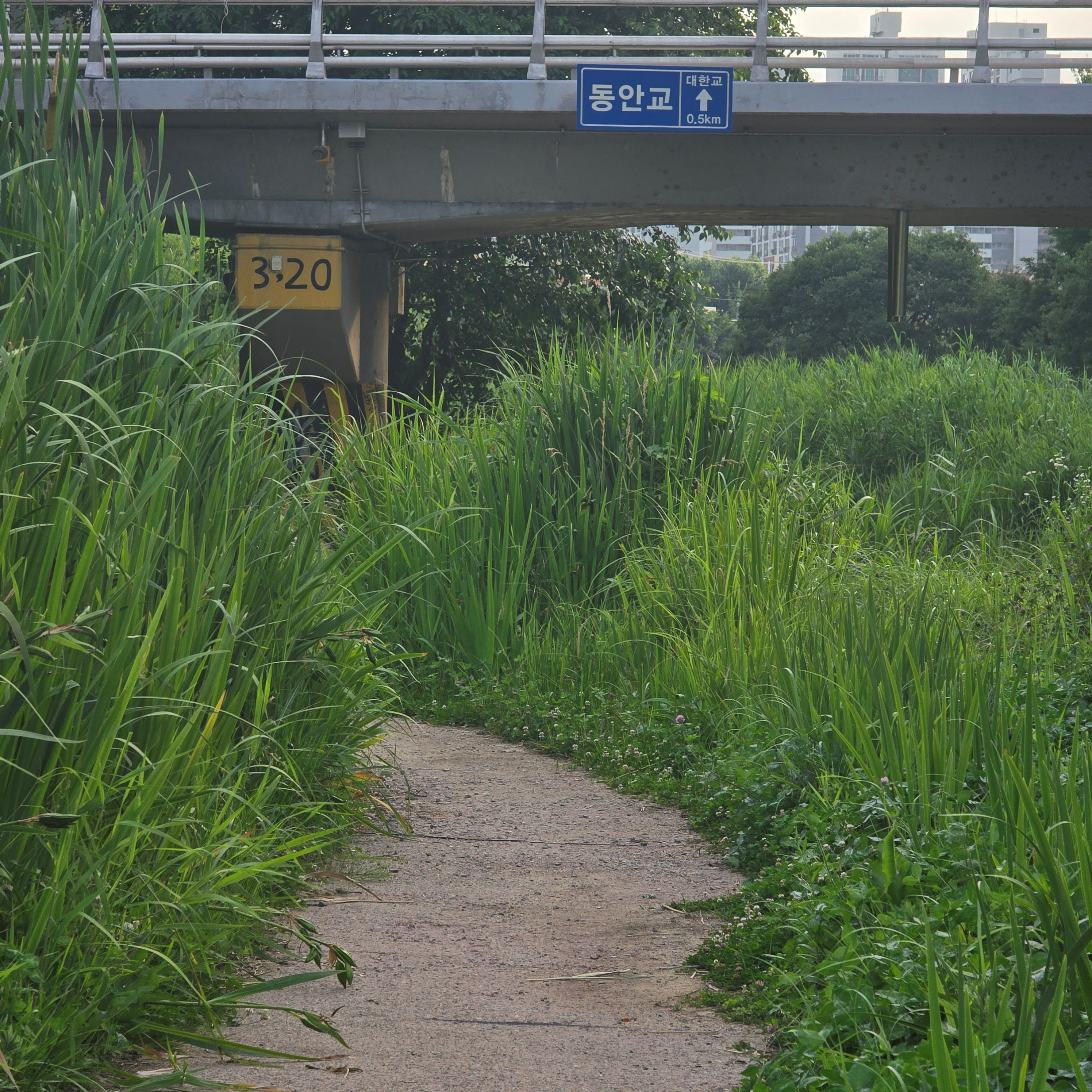 2026.06.19/ #도시기록 #안양 #학의천 #동안습지 #쉼터/ 안양 학의천 동안교옆 동안습지. 나무 그늘이 없어 쉼터로는 취약하다.