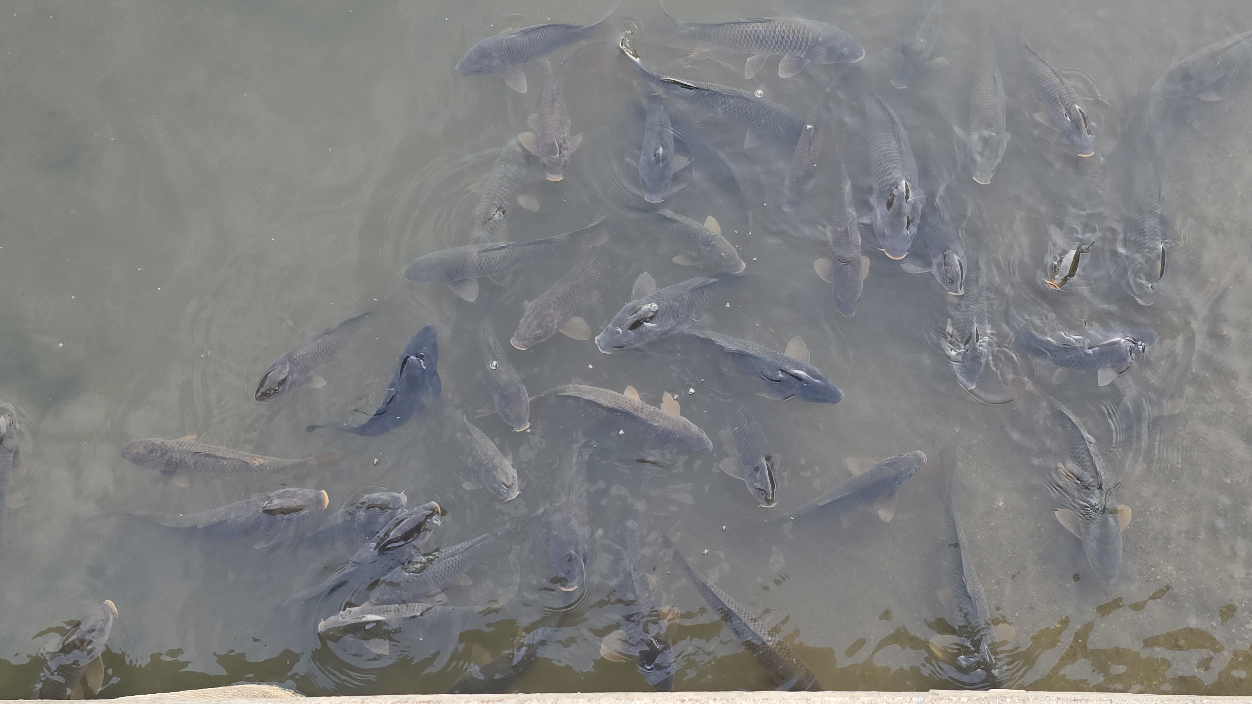 2025.06.23/ #도시기록 #안양 #생태모니터링 #학의천/ 안양 학의천 대한교와 동안교 중간에 있는 평촌더샵 세월교 밑에는 어른 팔뚝만한 크기의 커다란 잉어들이 노니는 놀이터다. 이곳에는  붉은 무뉘가 멋진 비단잉어와 또다른 비단잉어 두마리도 함께 살았는데 2024년 여름 이후 어디론가 사라진후 아직까지 보이지 않는다. 어디로 갔을까.