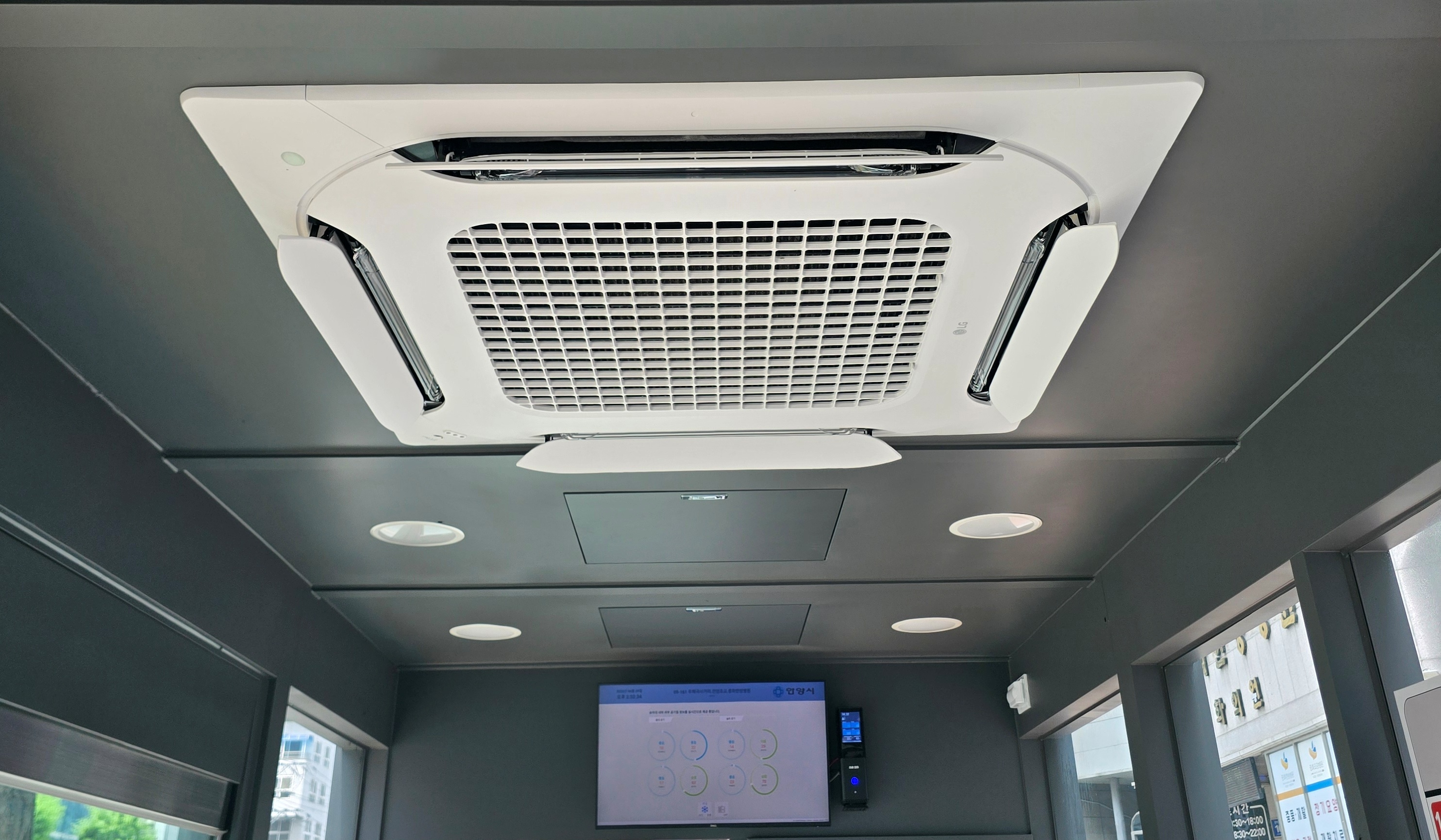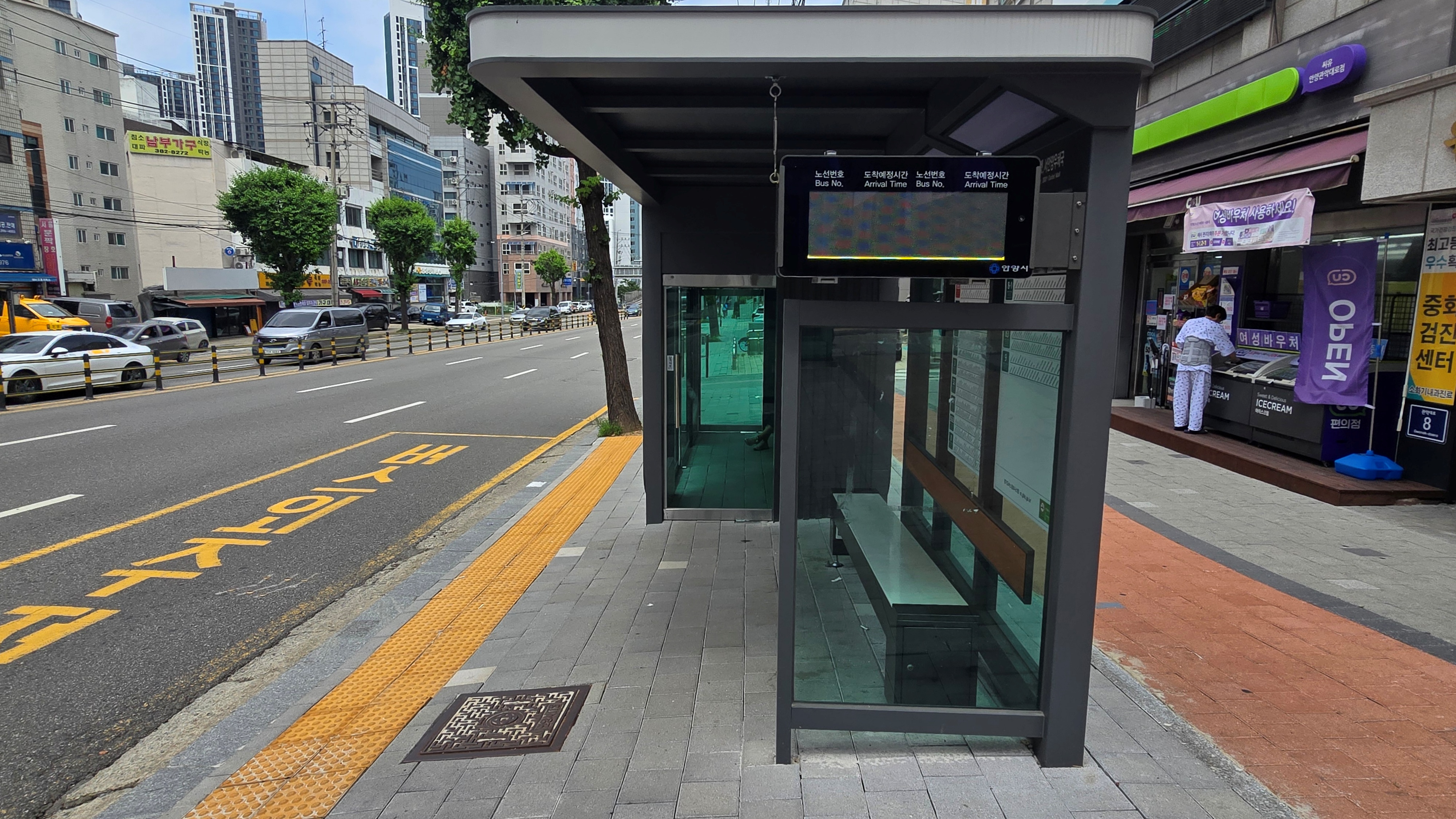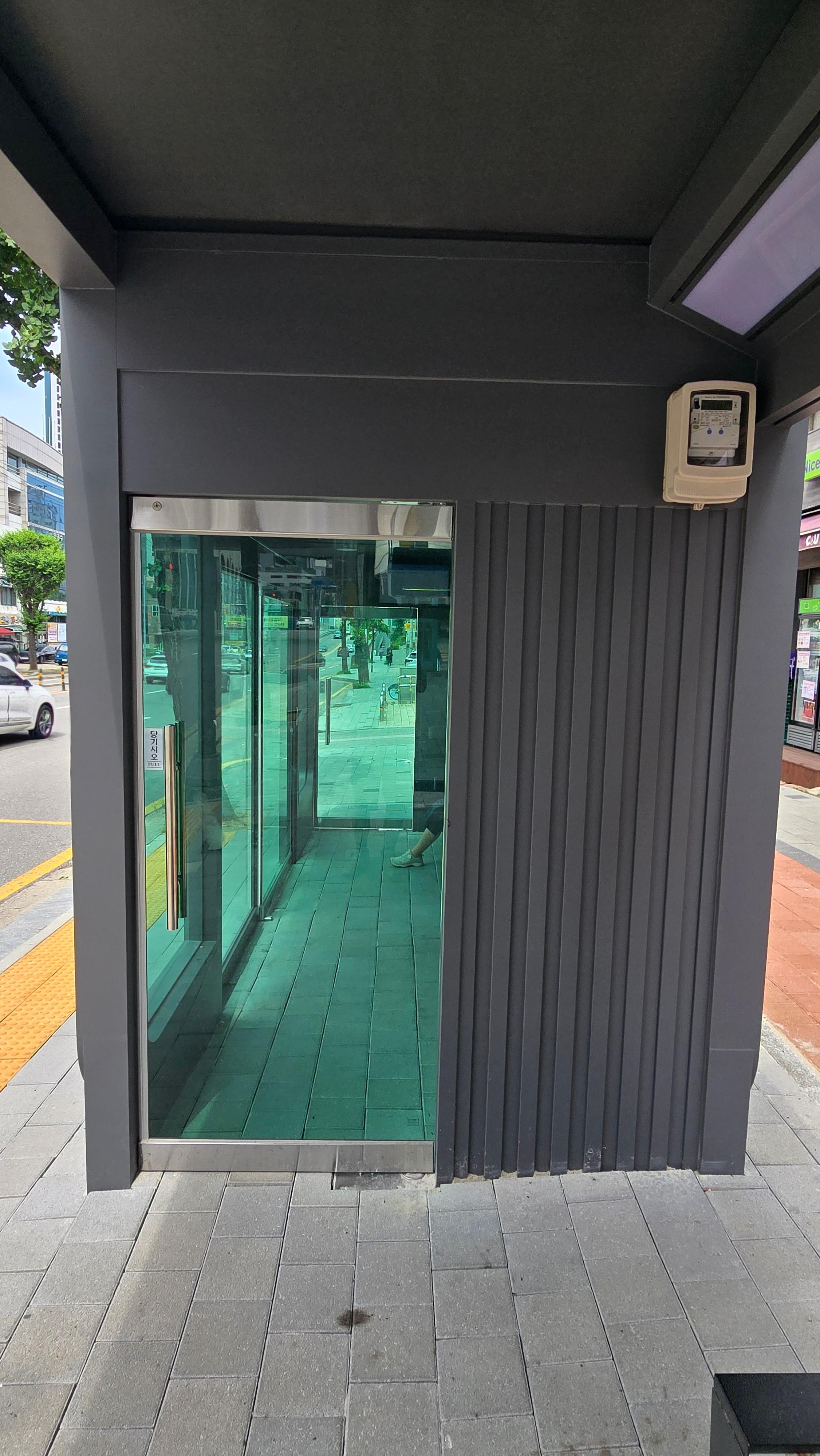 2025.06.29/ #도시기록 #안양 #버스정류장 #폭염쉼터 #에어콘/ 안양시 안양5동 안양초교앞(중화한방병원 비산동 방향) 버스정류장이다. 버스 베이 절반에 가까운 면적이 에어컨이 설치된 폭염쉼터로 꾸며져 30도에 육박하는 폭염이 찾아왔지만 정류장 안에서는 시원함을 느낄 수 있다.