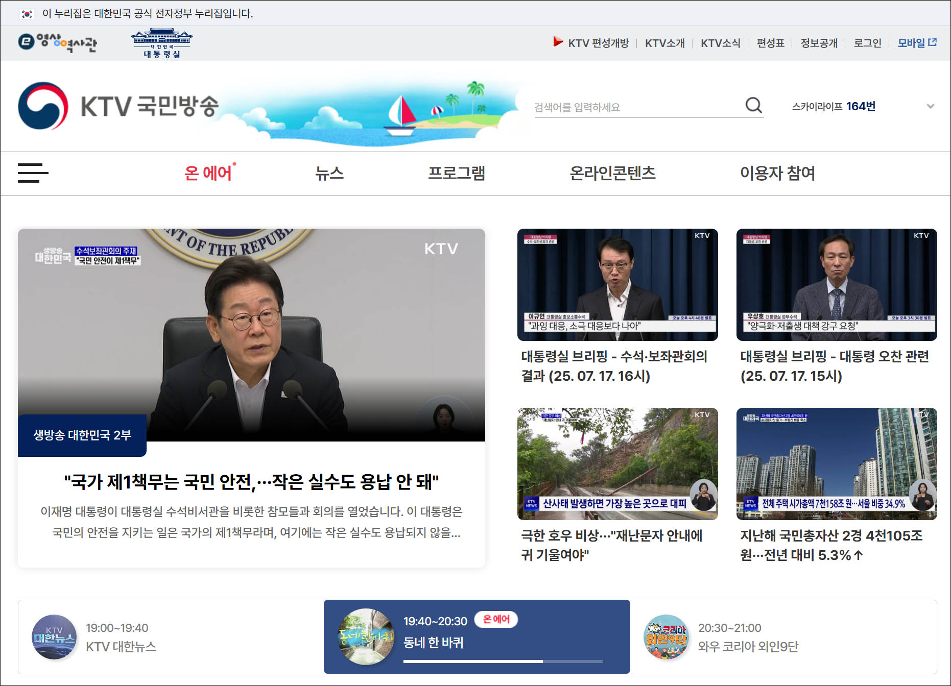 대통령실은 “이번 조치는 국민 세금으로 제작된 공공저작물을 국민의 권익에 부합하도록 환원하고, 표현의 자유와 정보 접근권을 보장하는 공공 플랫폼으로서의 KTV 본래 기능을 회복하겠다는 국정 철학에 따른 것”이라고 설명했다.