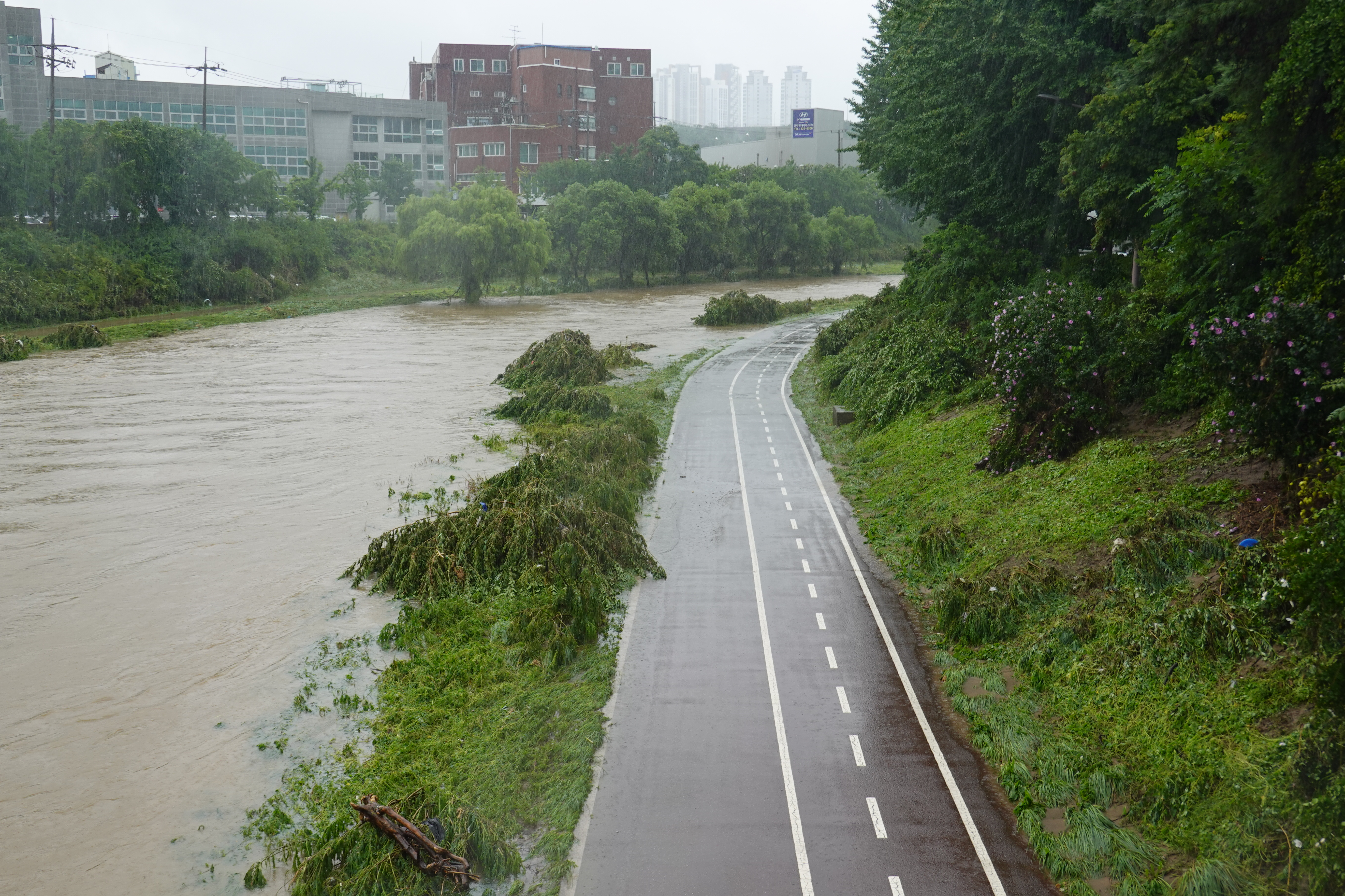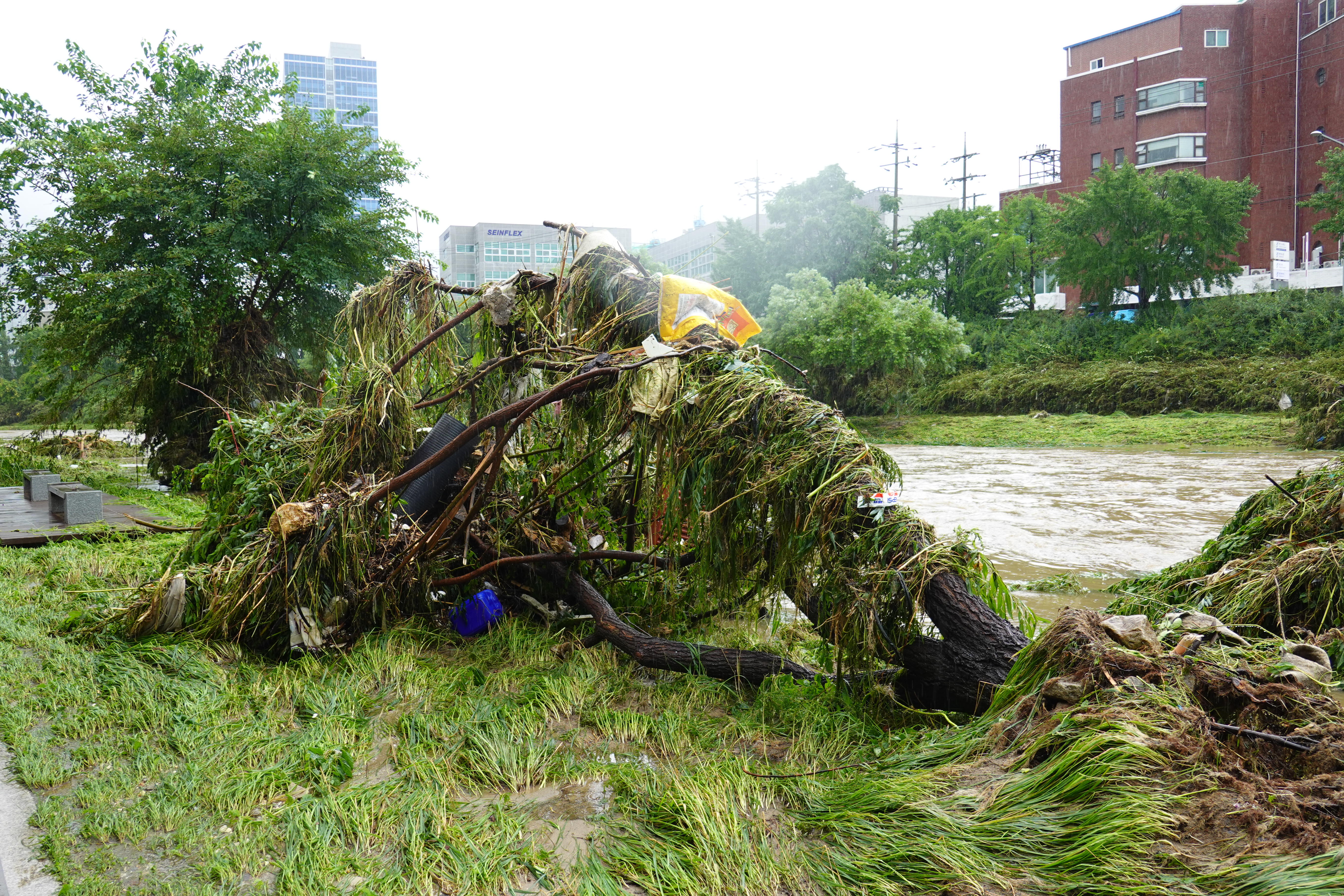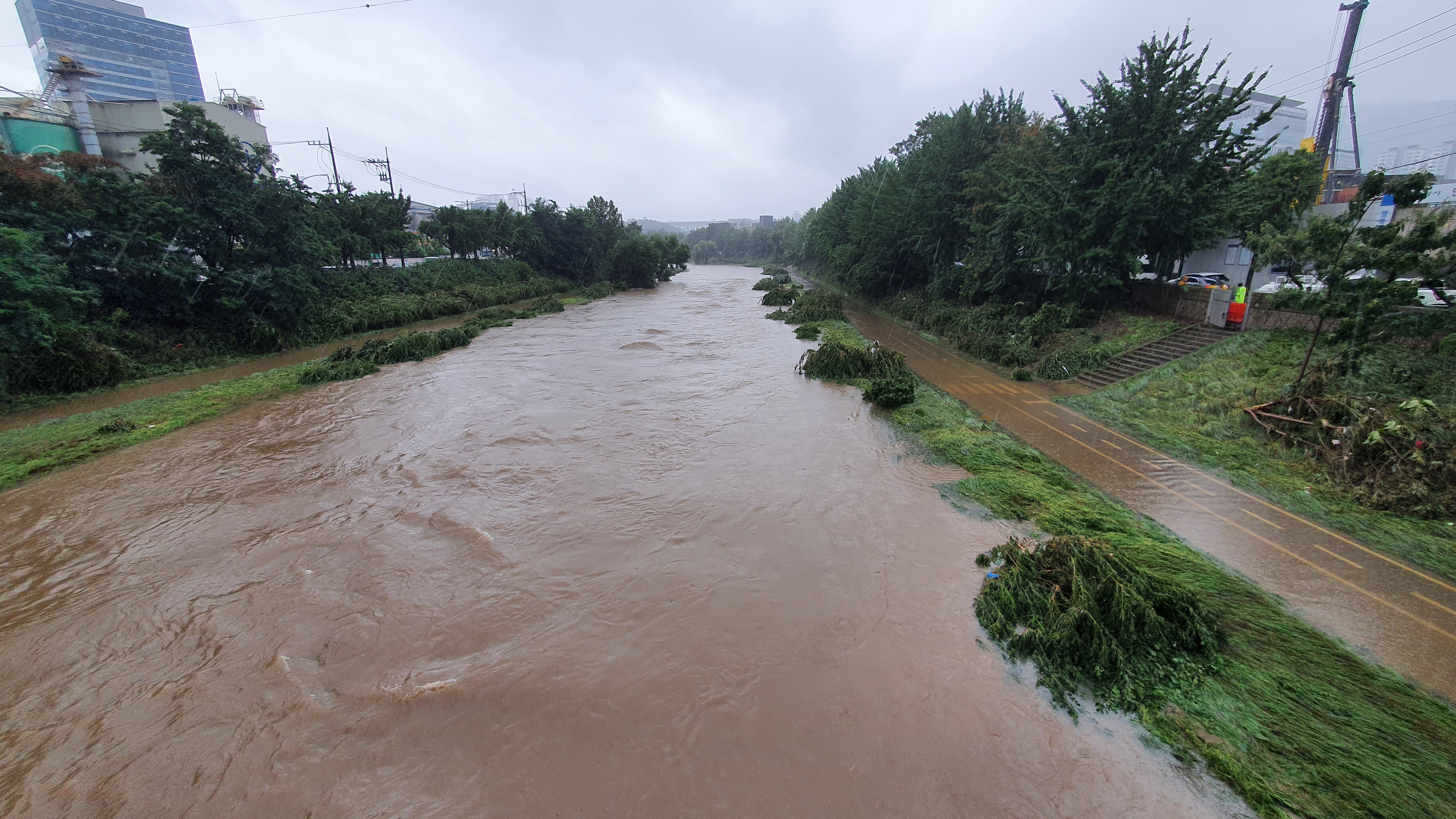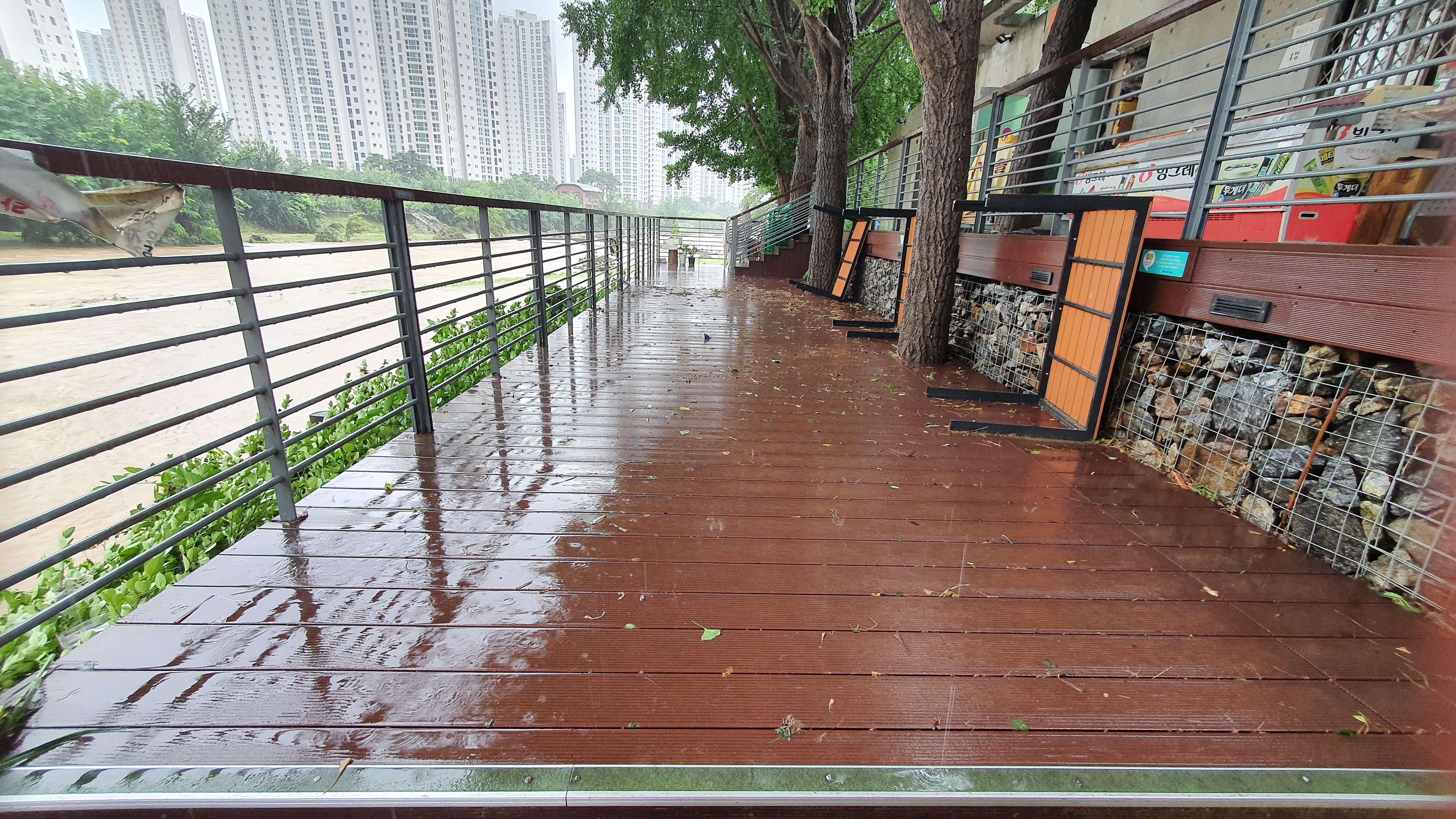 2025.07.27/ #도시기록 #안양천 #큰물/ 안영천에 큰물 지나가던날의 모습. 쌍개울~명학대교 구간에서 똑딱이가 보다.