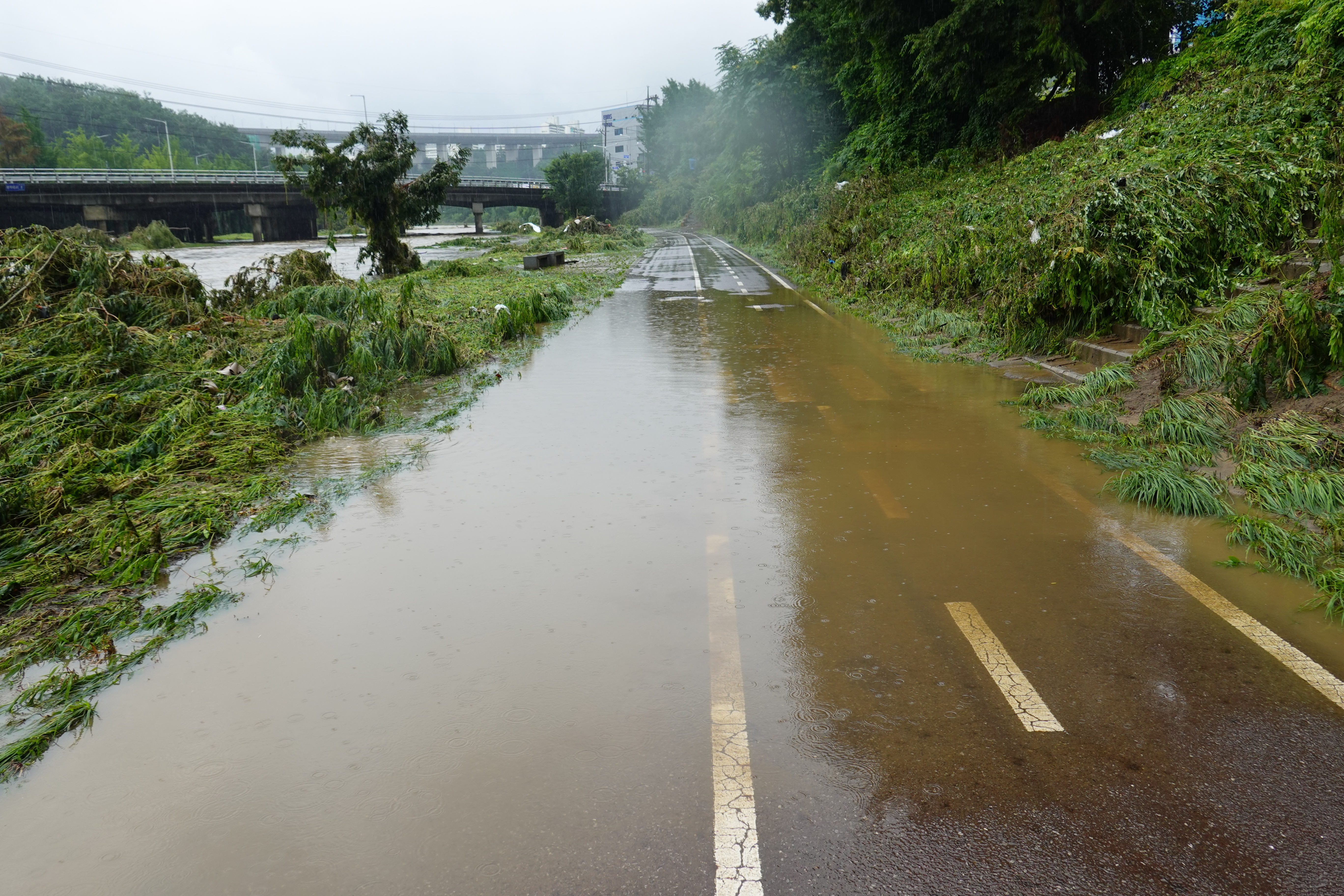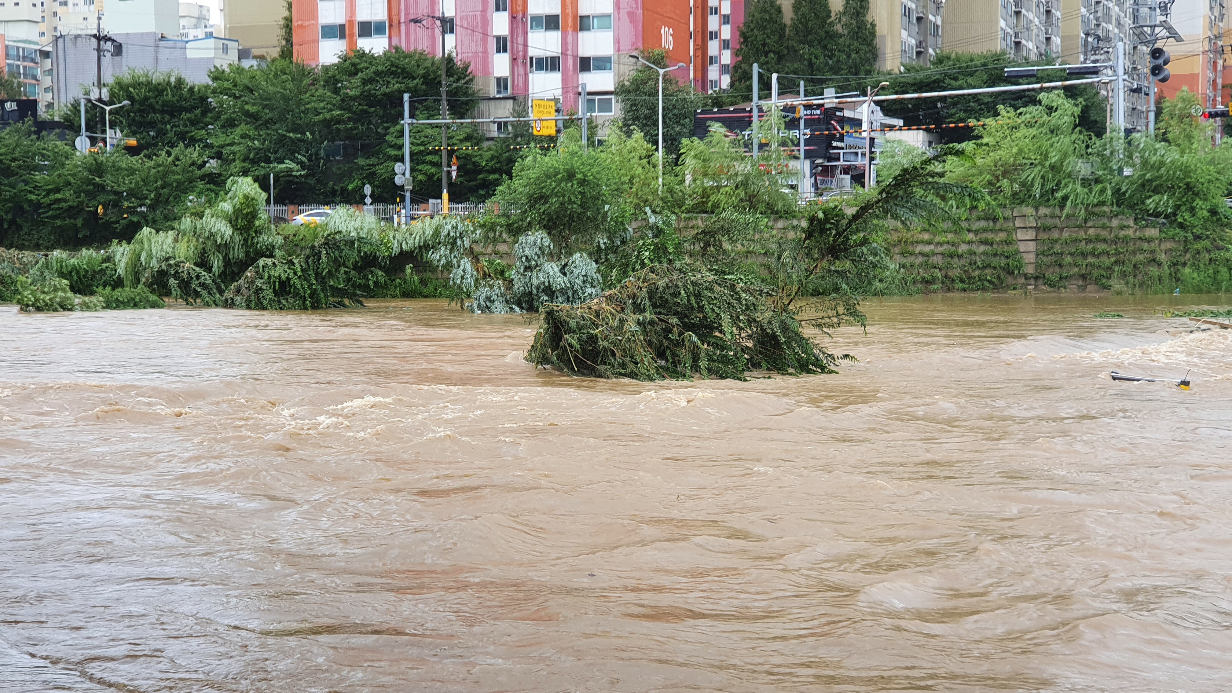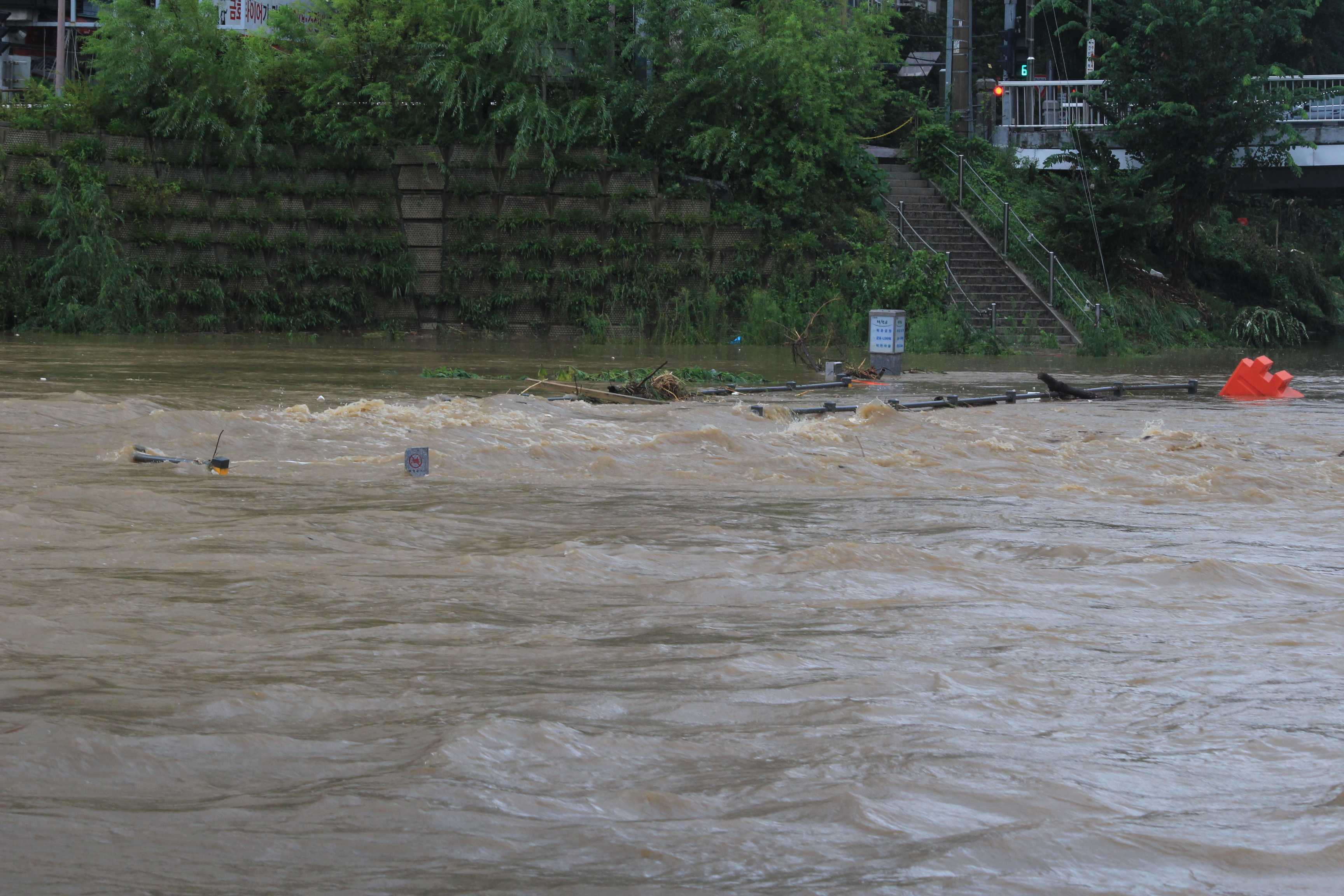 2025.07.27/ #도시기록 #안양천 #큰물/ 안영천에 큰물 지나가던날의 모습. 쌍개울~명학대교 구간에서 똑딱이가 보다.