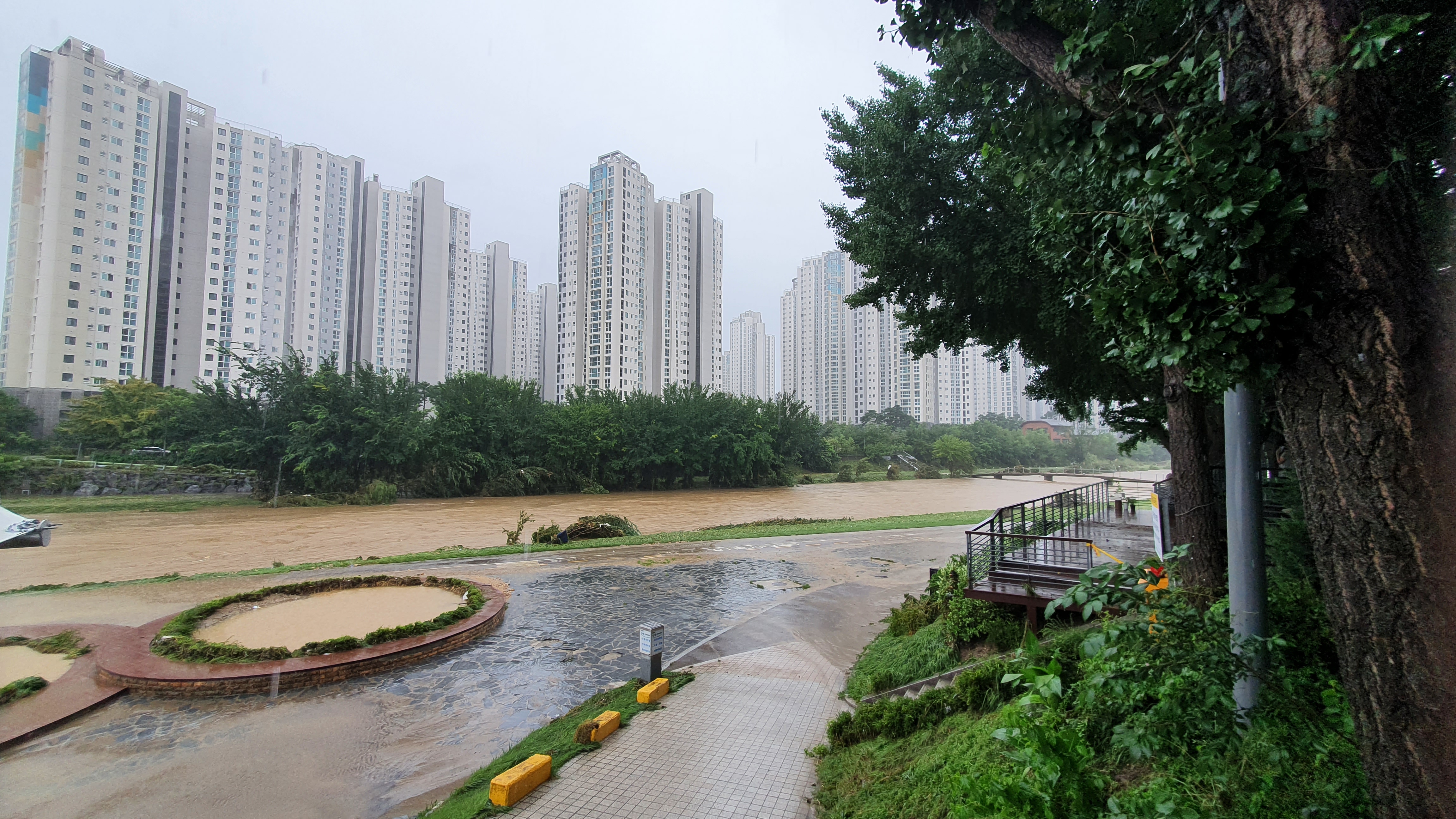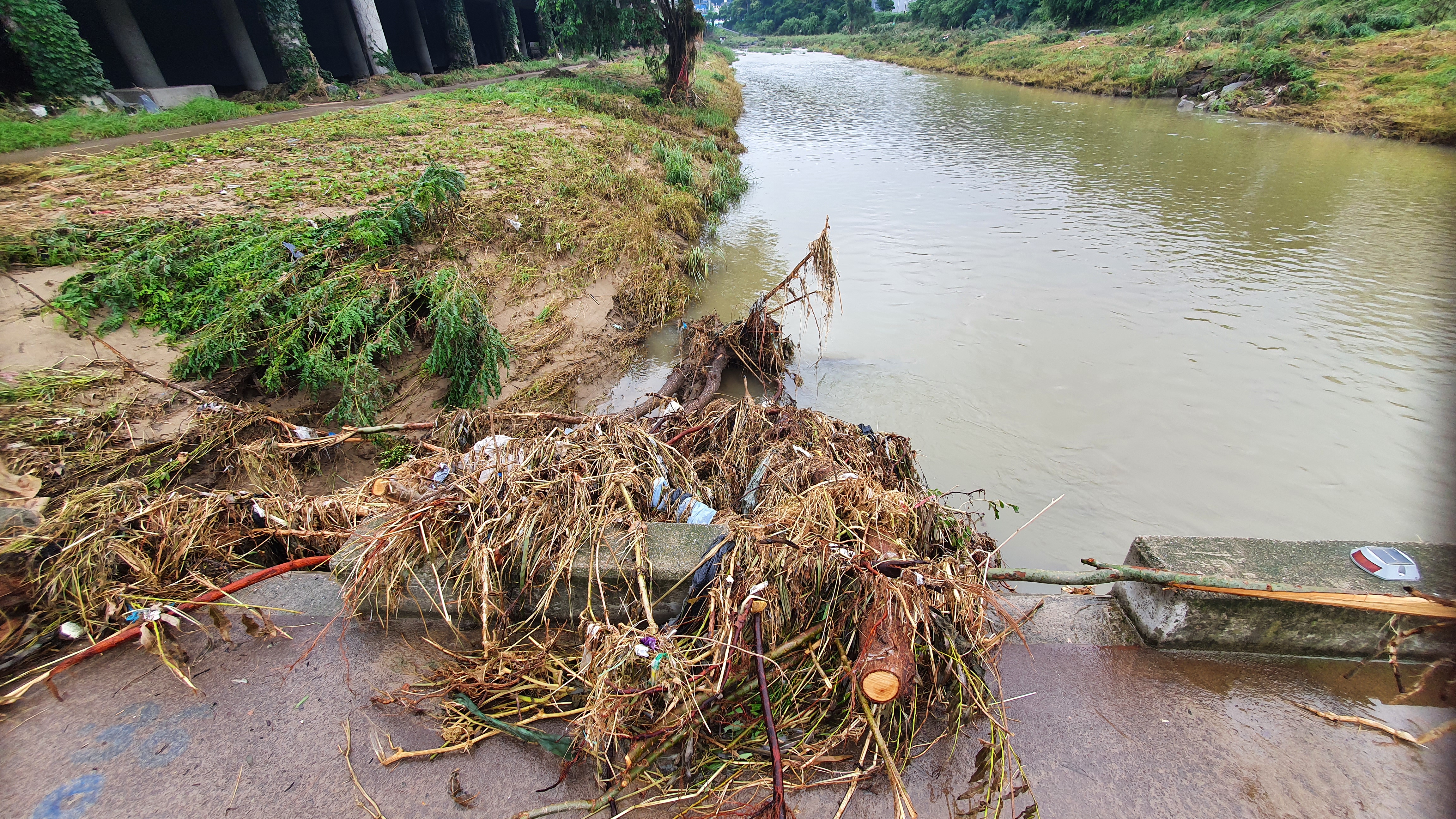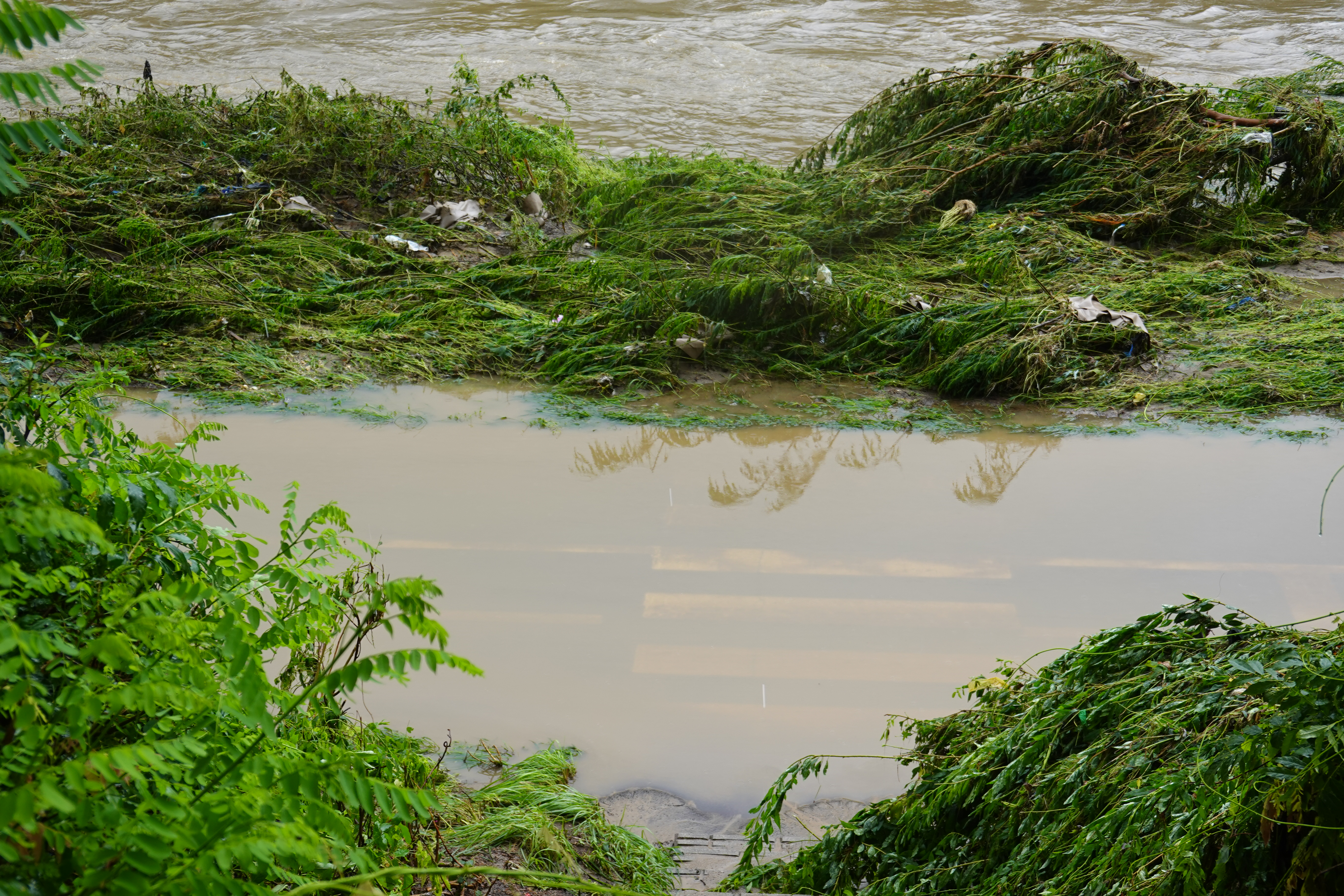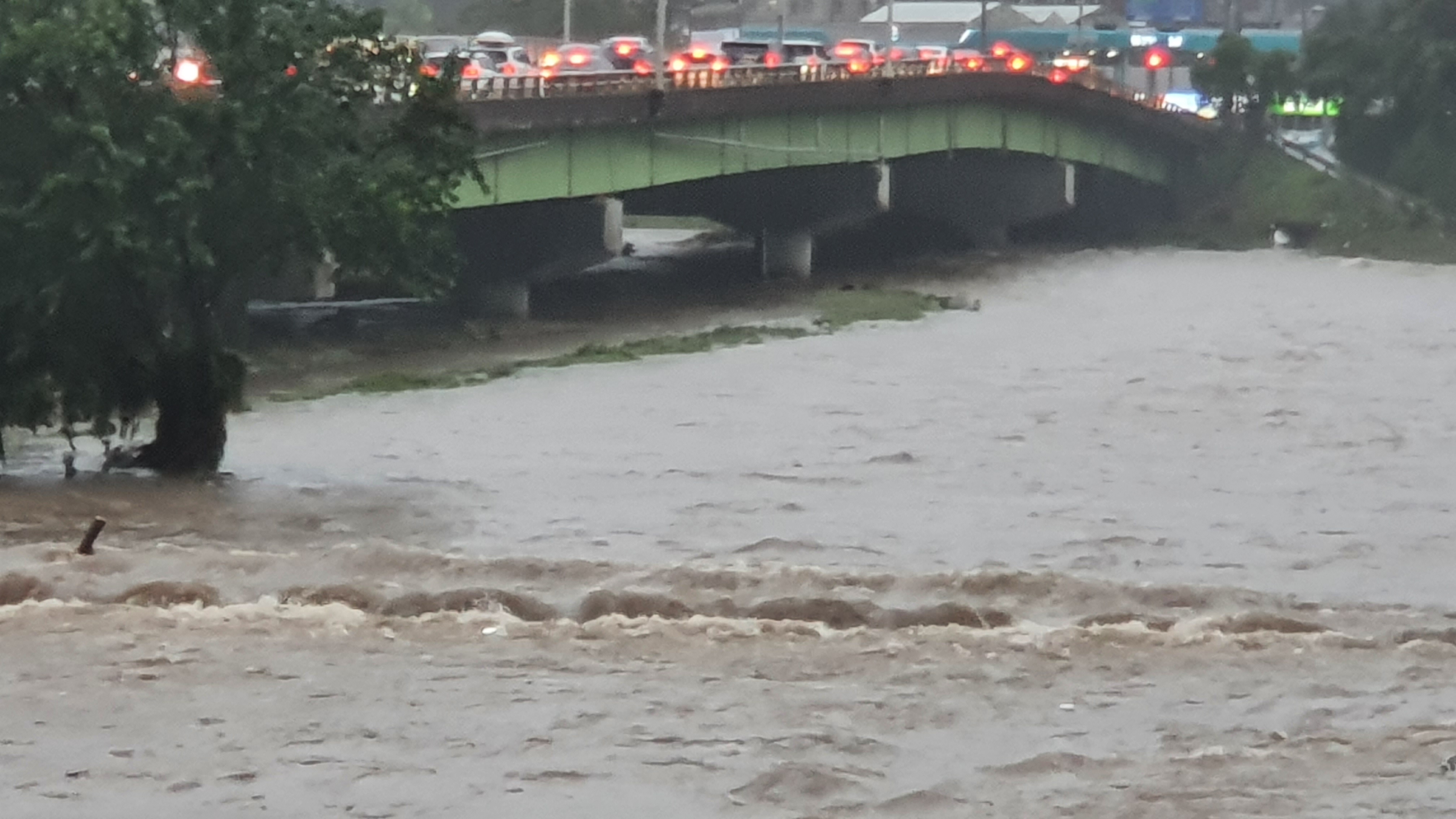 2025.07.27/ #도시기록 #안양천 #큰물/ 안영천에 큰물 지나가던날의 모습. 쌍개울~명학대교 구간에서 똑딱이가 보다.