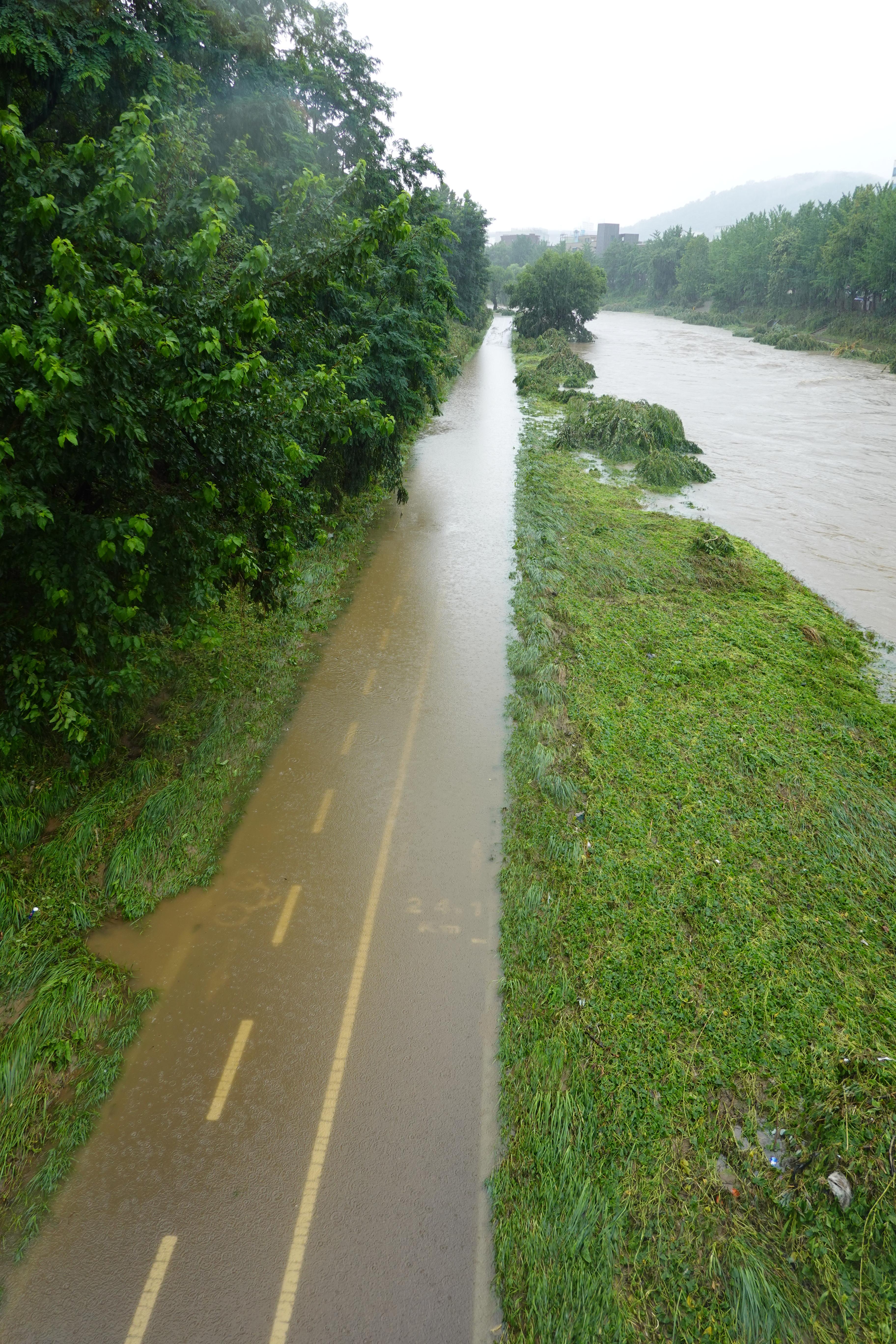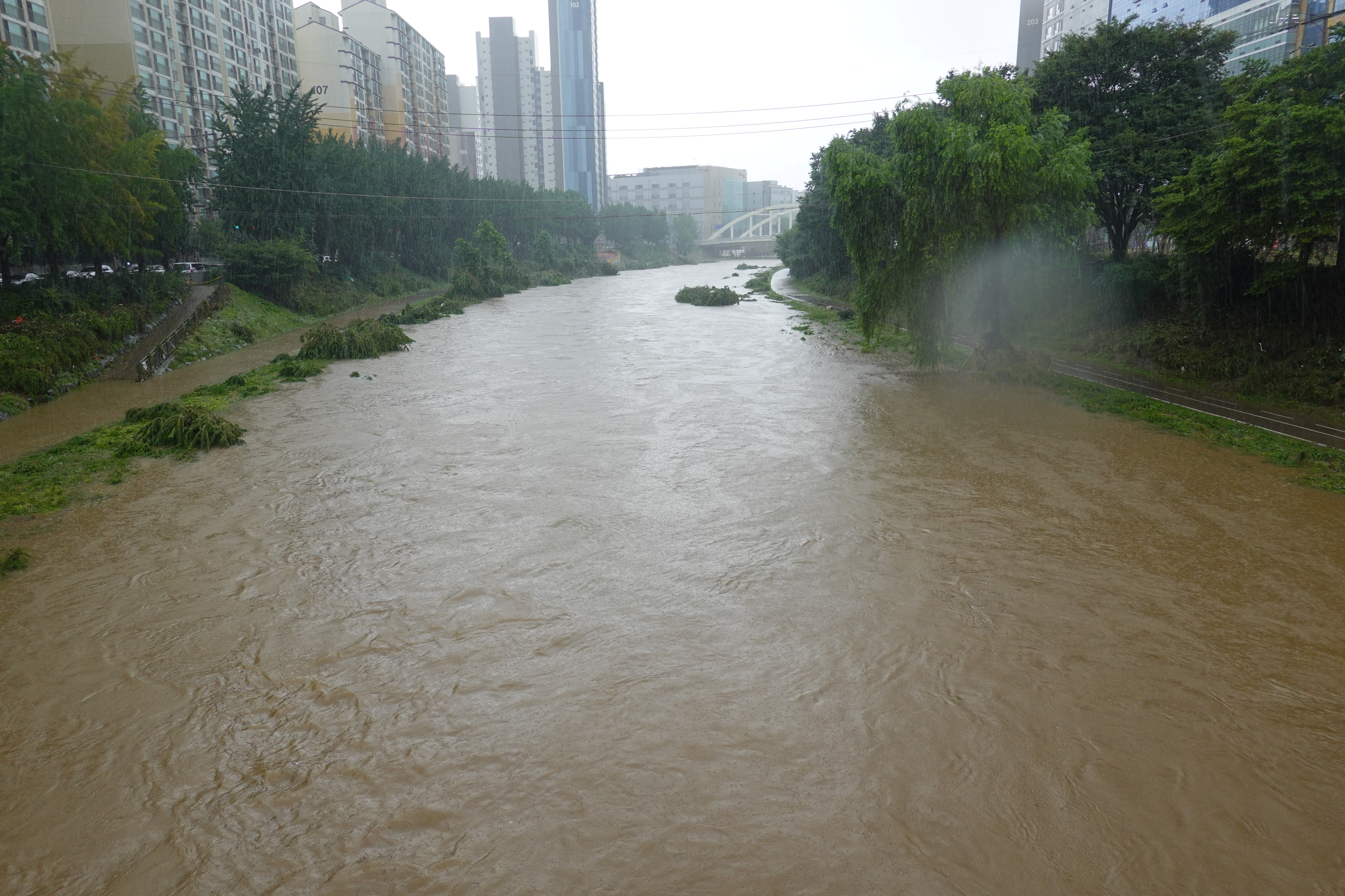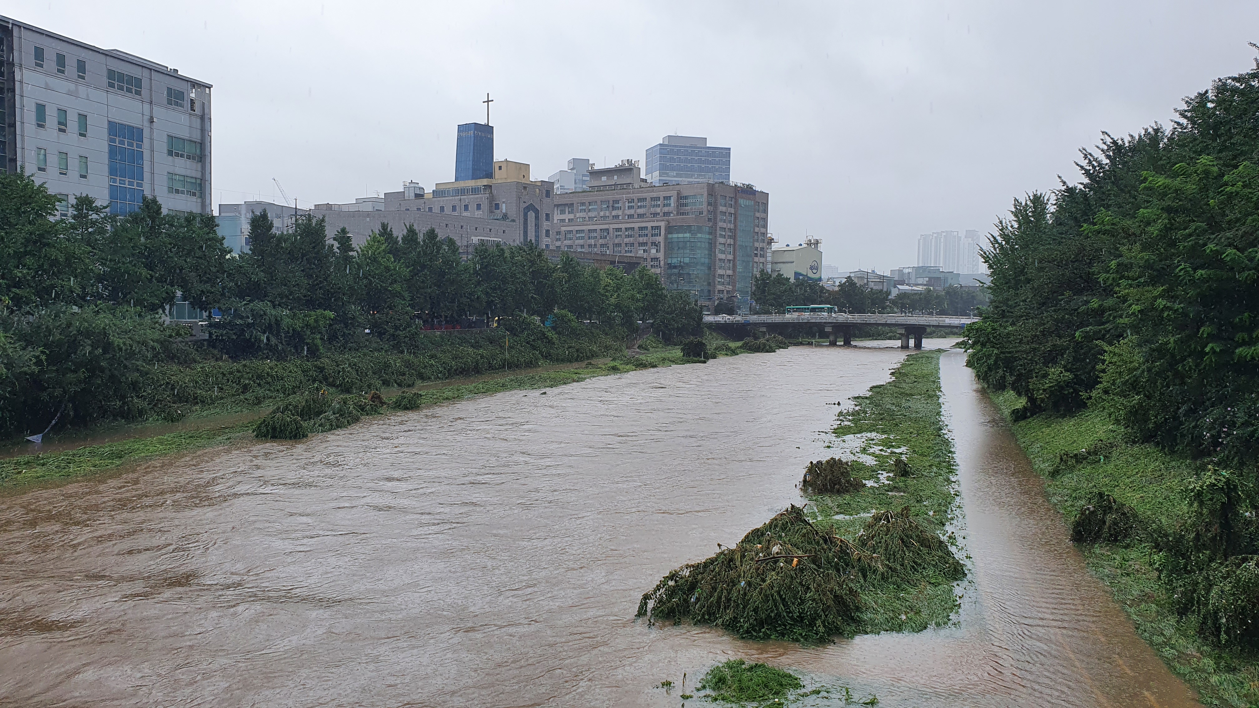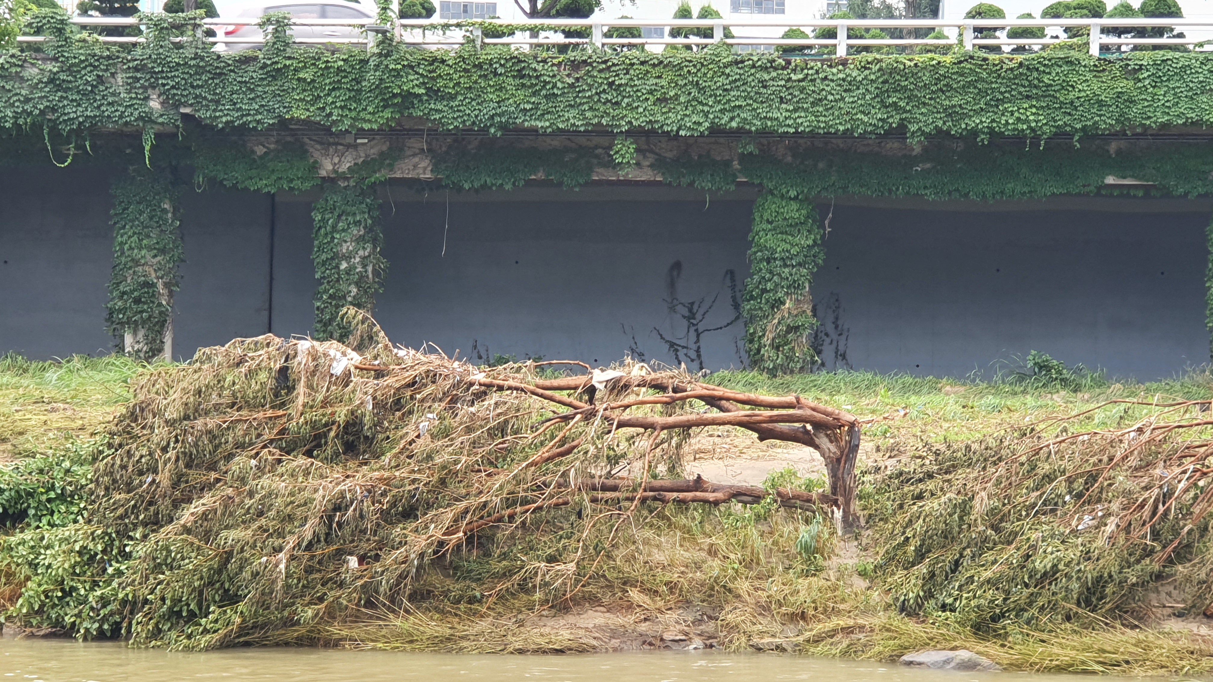 2025.07.27/ #도시기록 #안양천 #큰물/ 안영천에 큰물 지나가던날의 모습. 쌍개울~명학대교 구간에서 똑딱이가 보다.