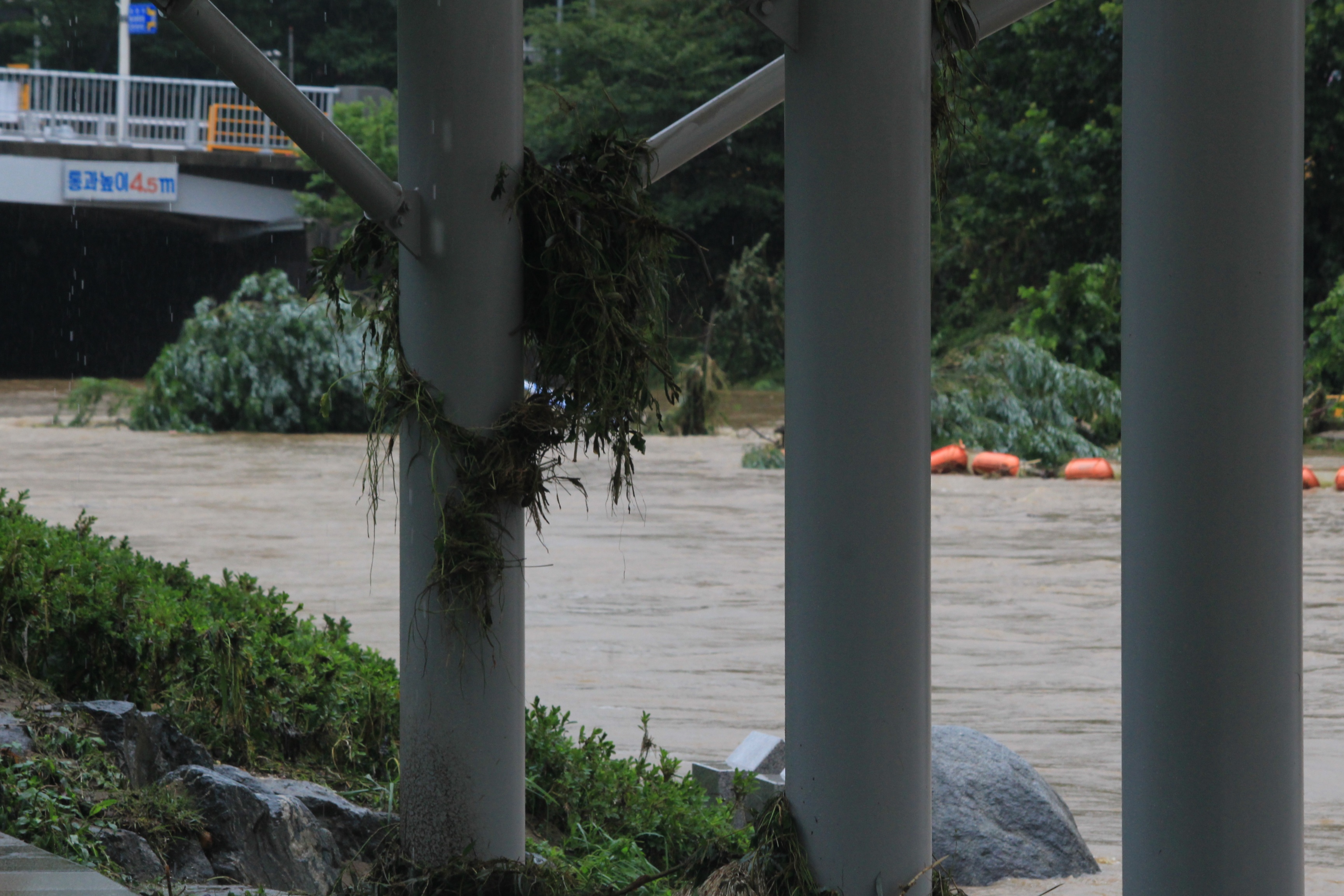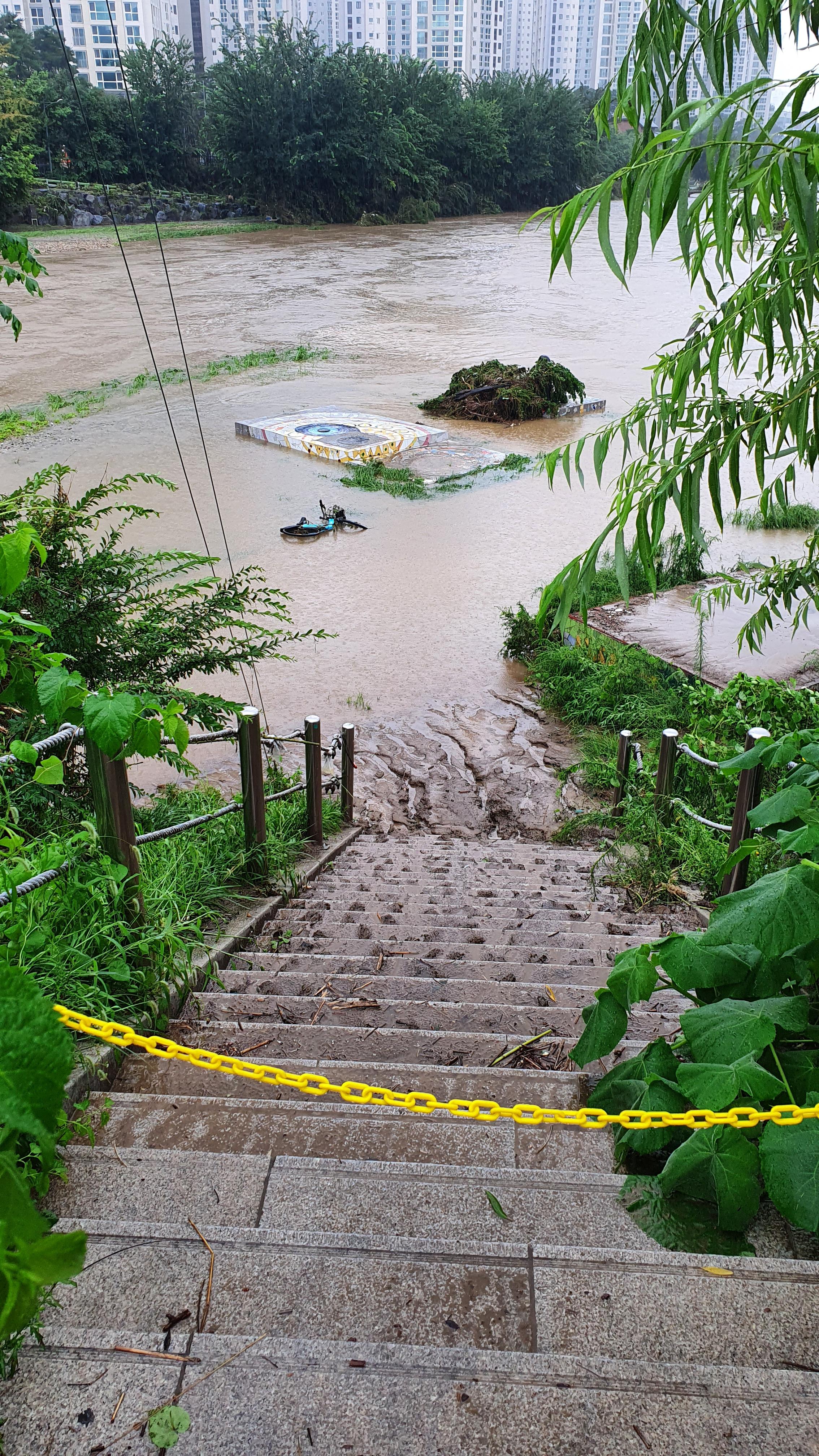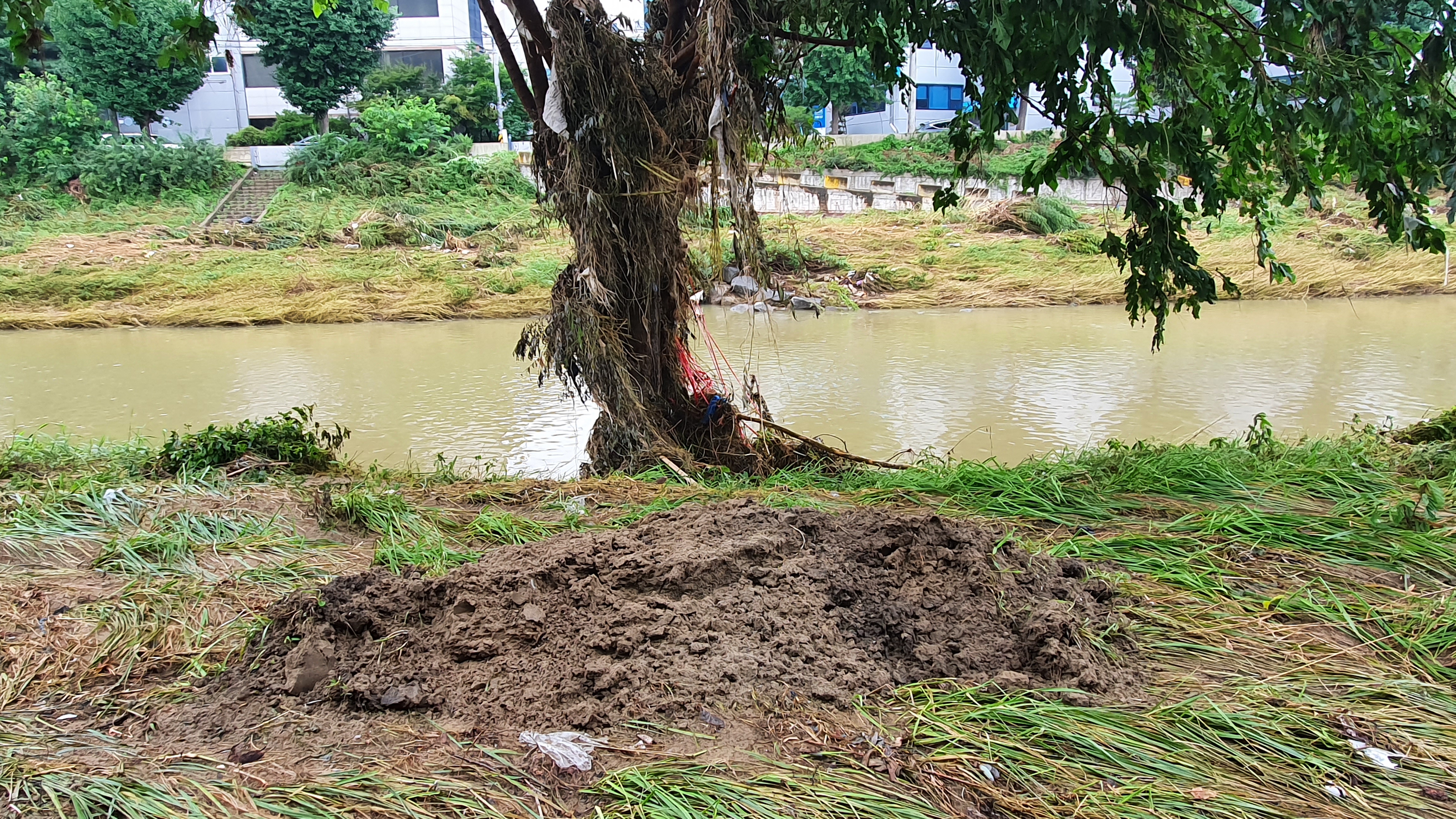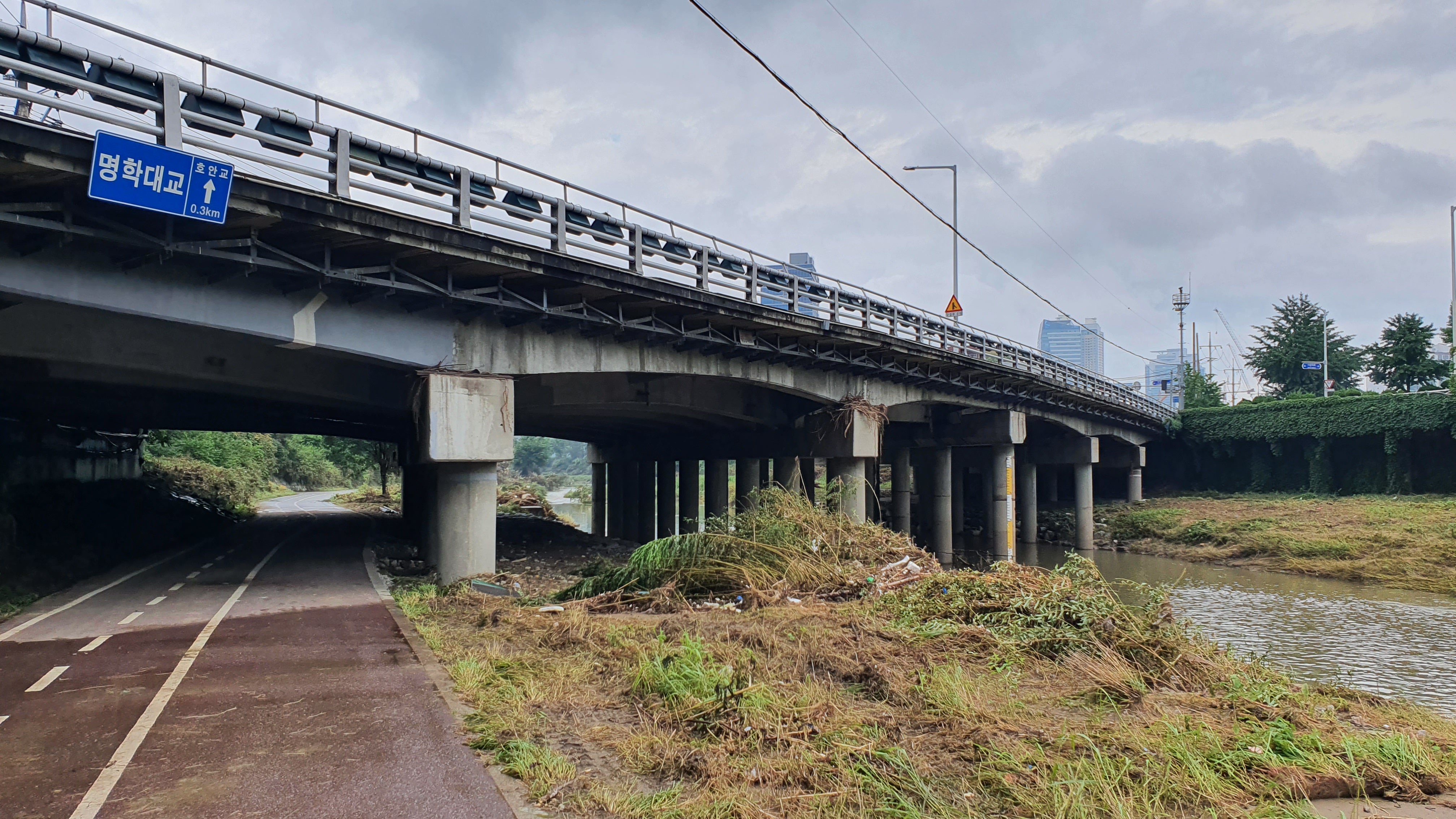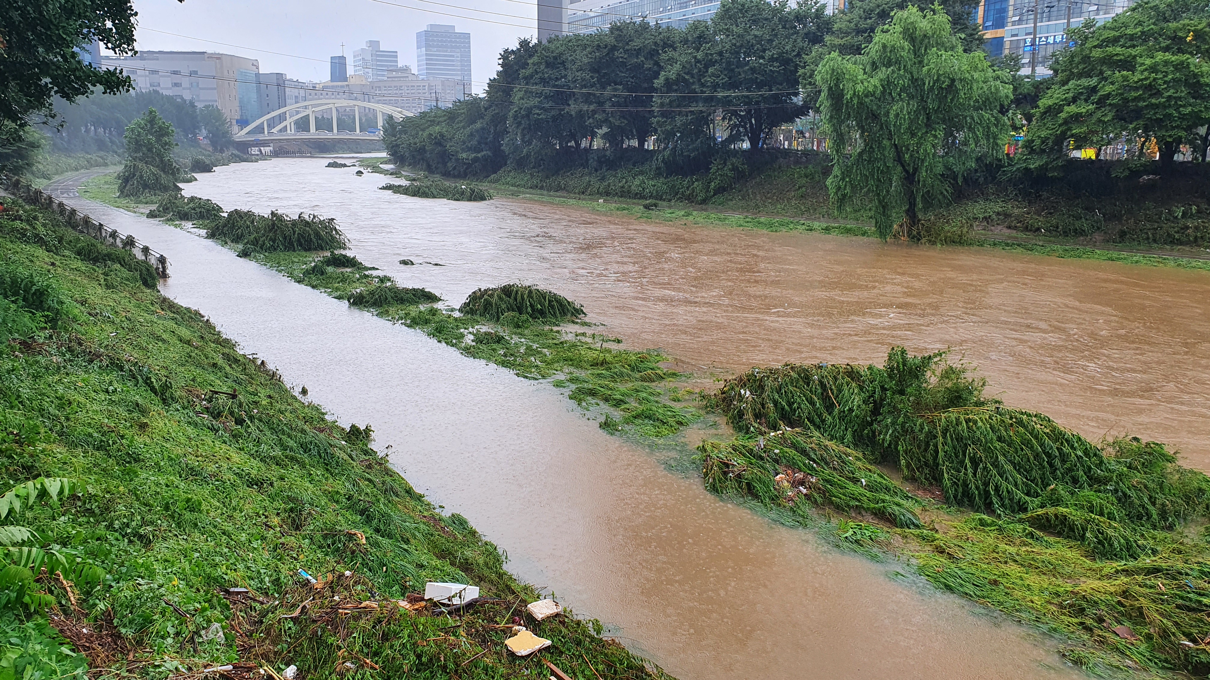 2025.07.27/ #도시기록 #안양천 #큰물/ 안영천에 큰물 지나가던날의 모습. 쌍개울~명학대교 구간에서 똑딱이가 보다.