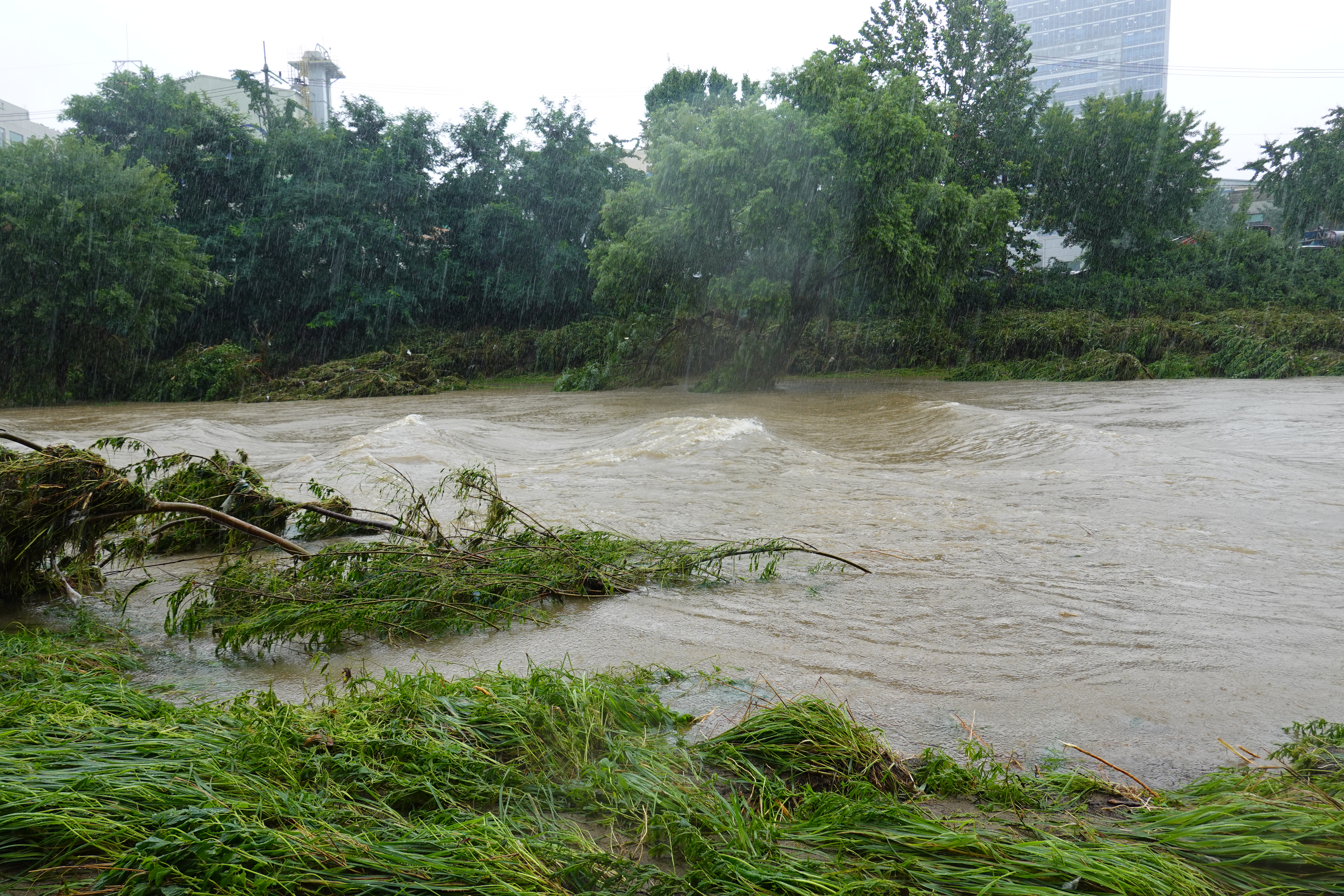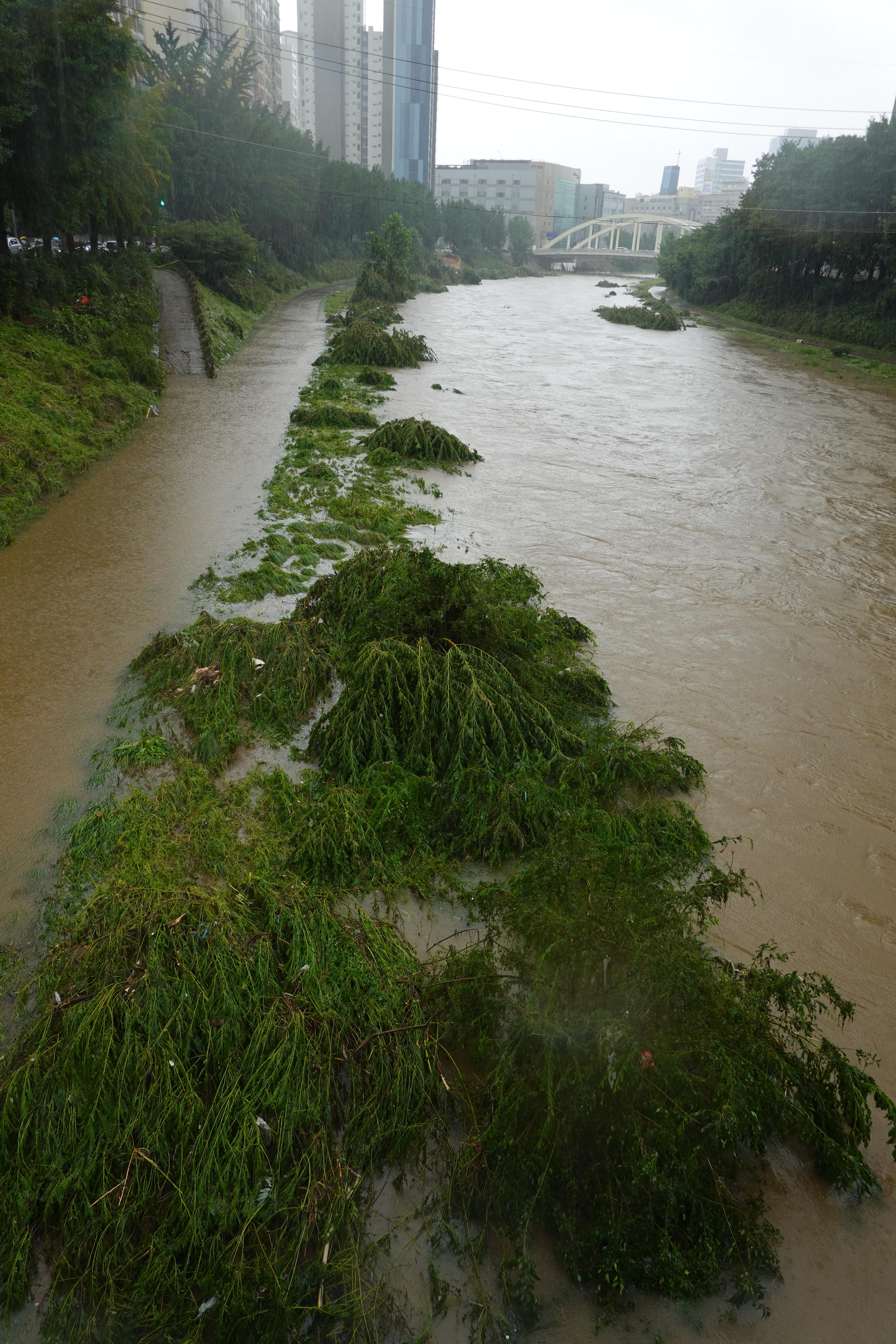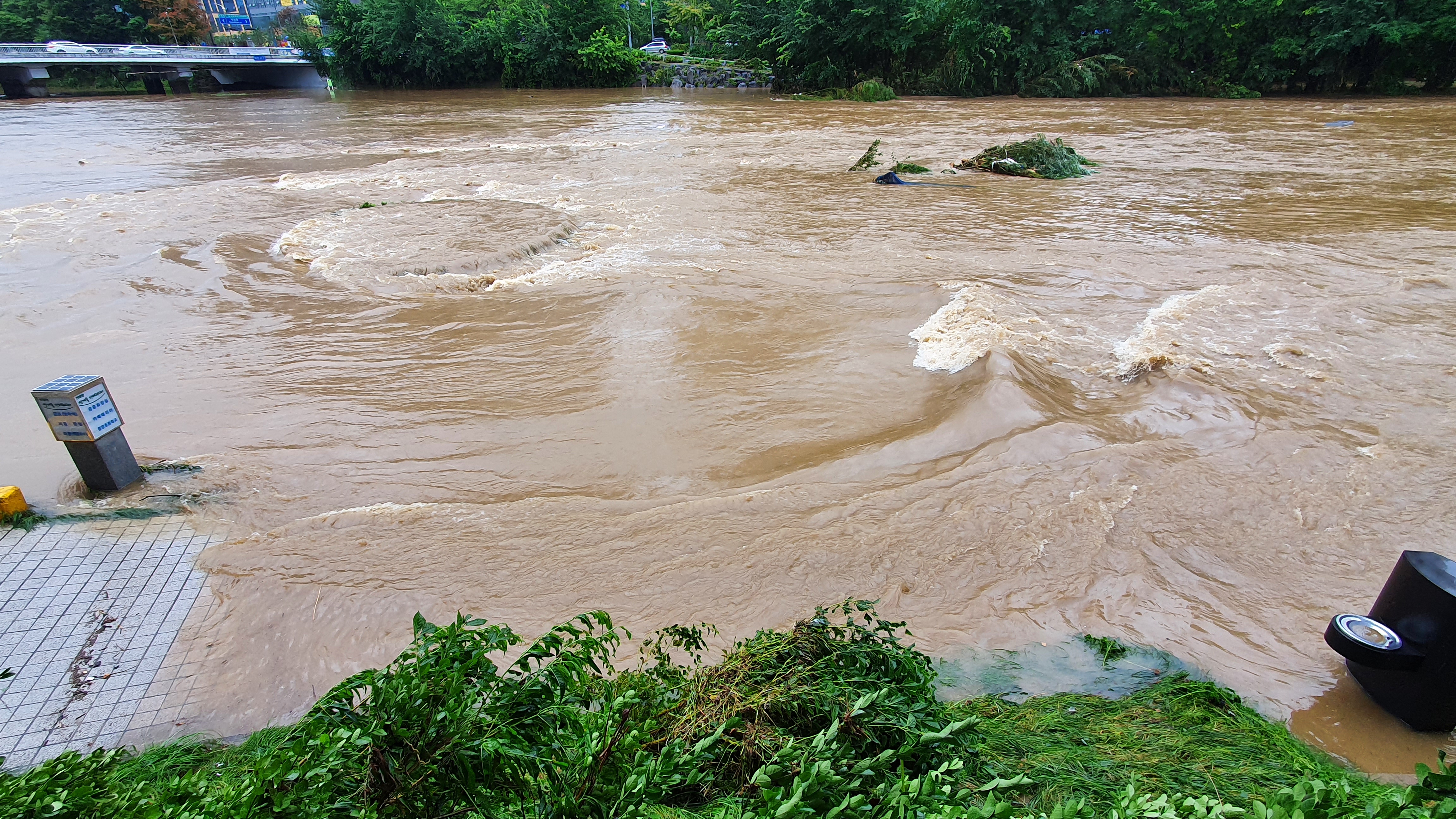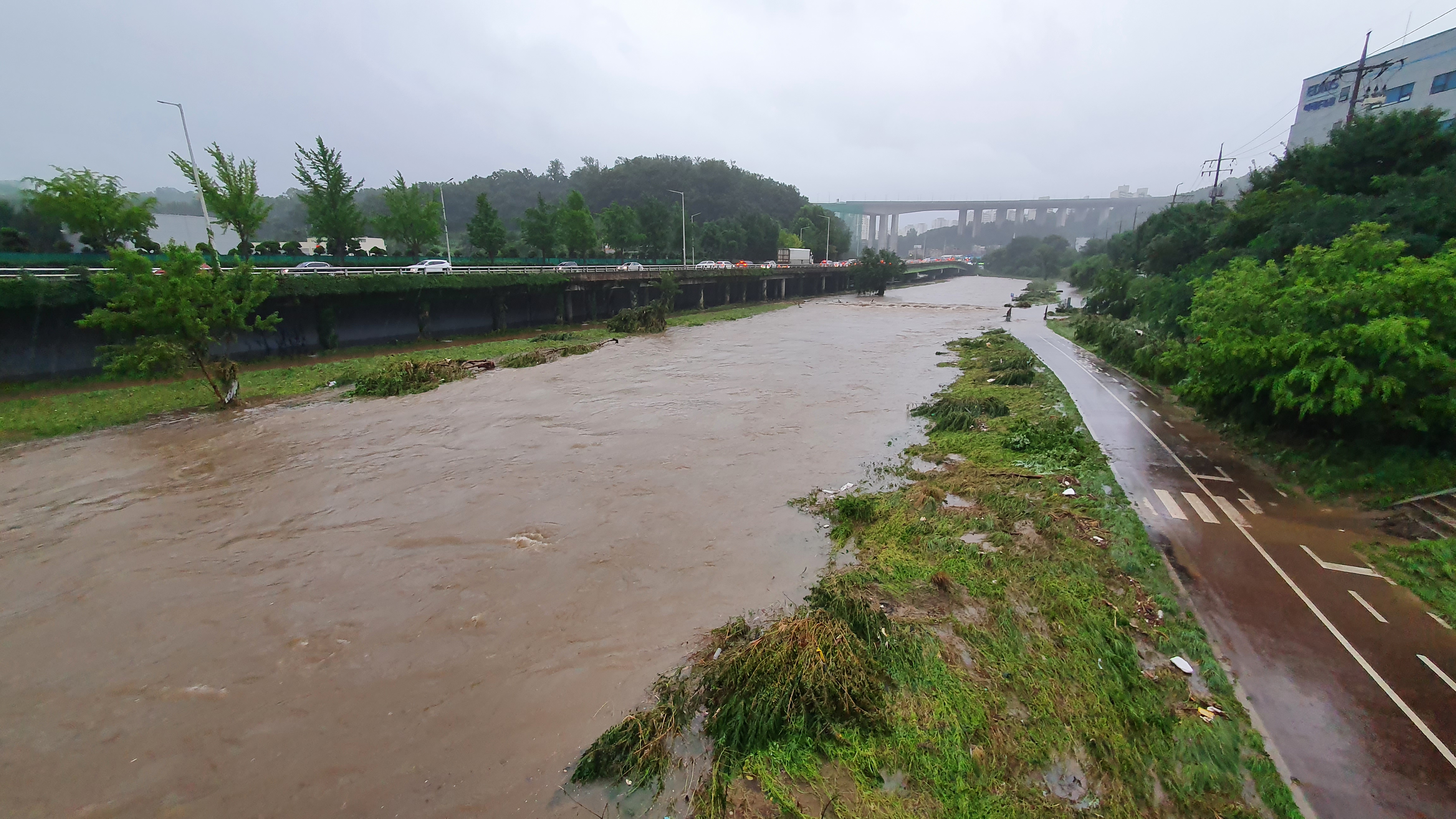 2025.07.27/ #도시기록 #안양천 #큰물/ 안영천에 큰물 지나가던날의 모습. 쌍개울~명학대교 구간에서 똑딱이가 보다.
