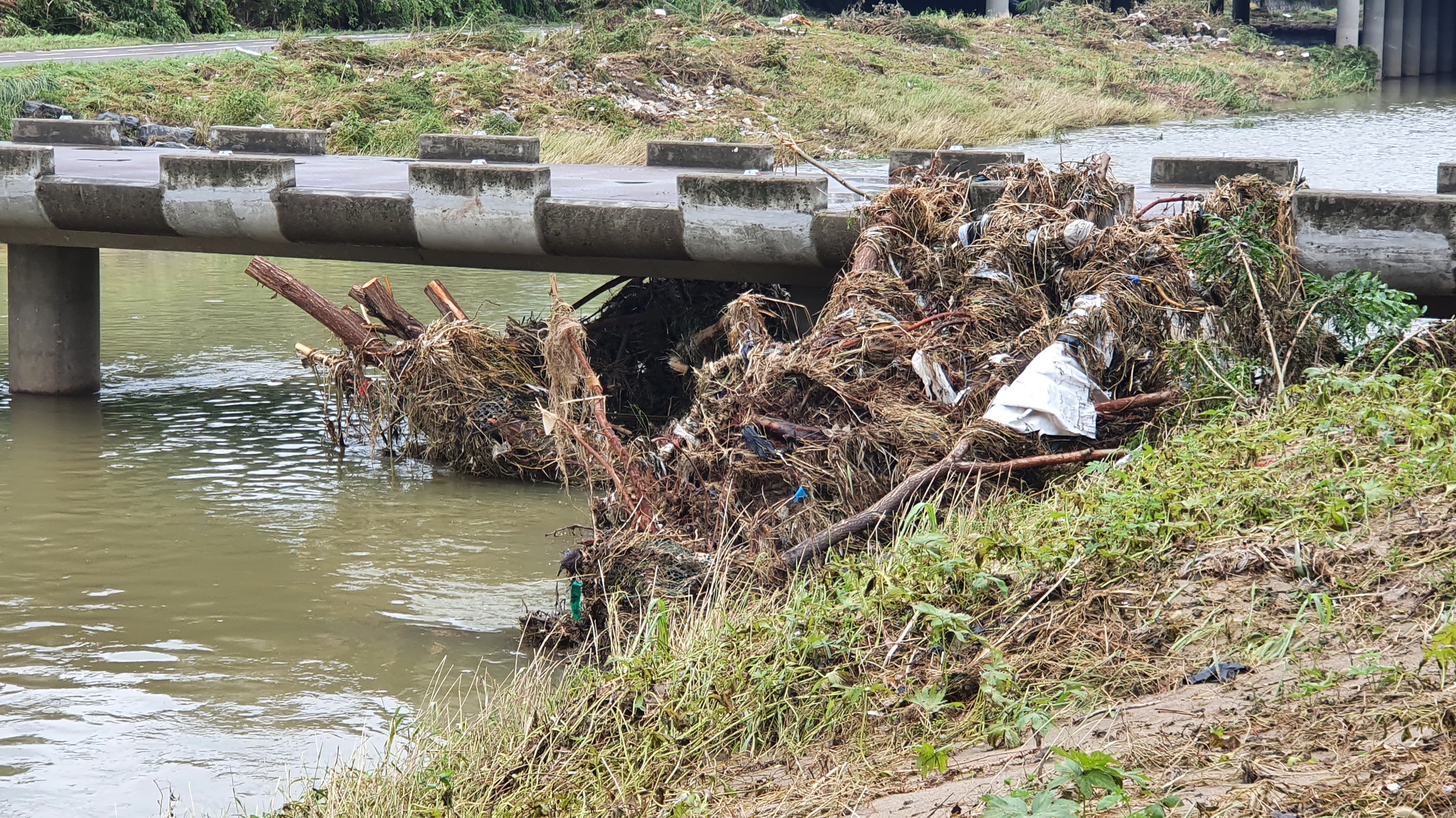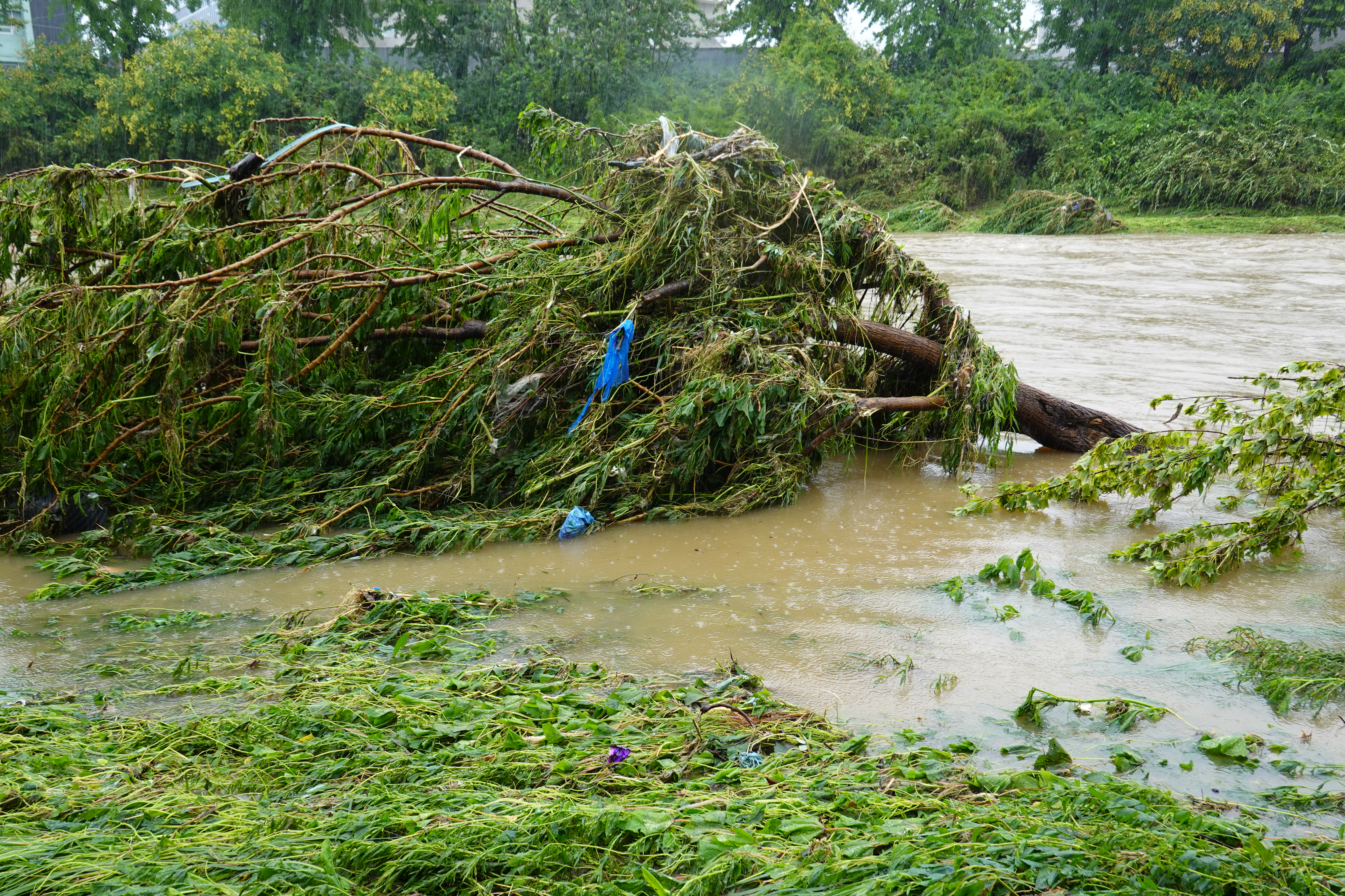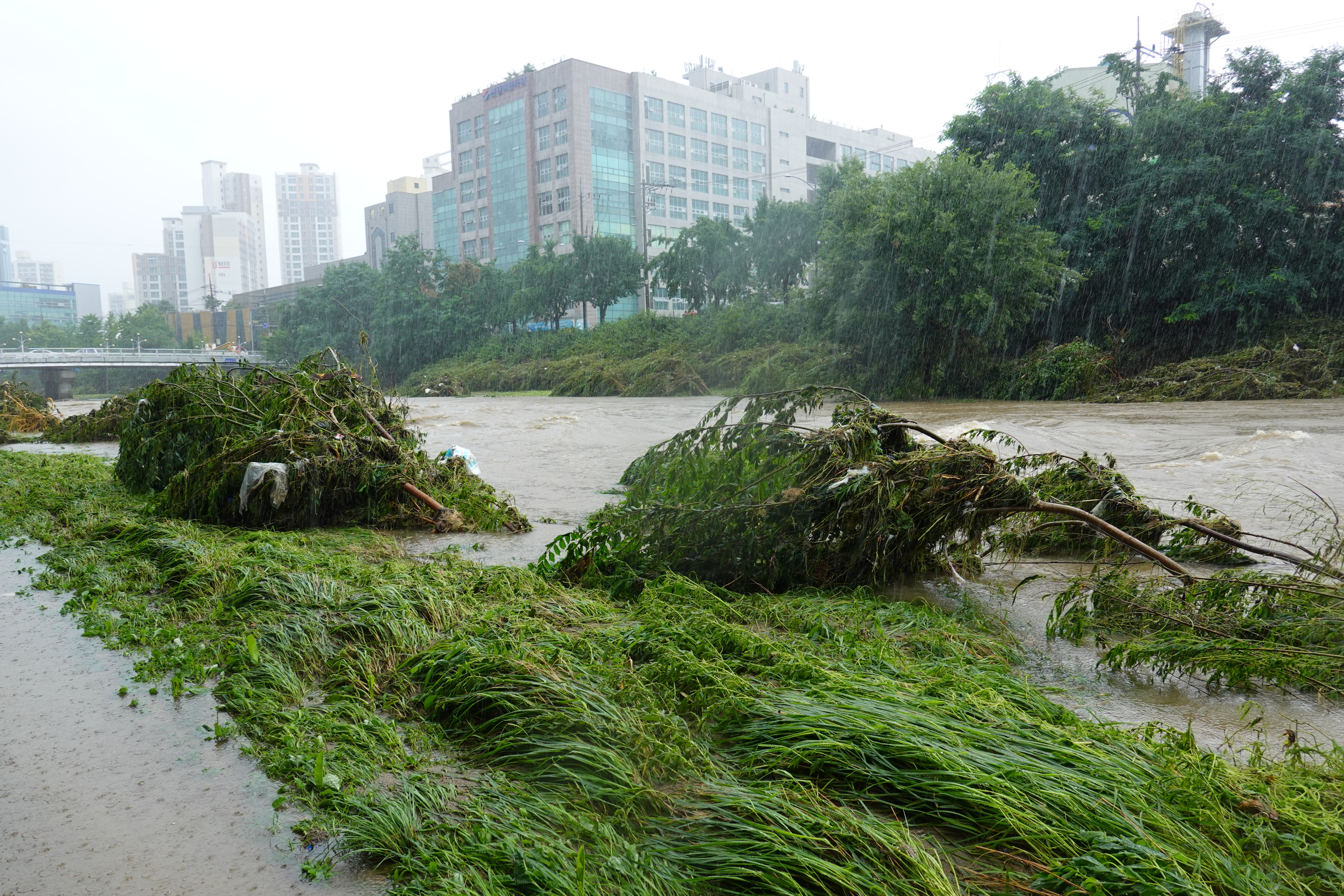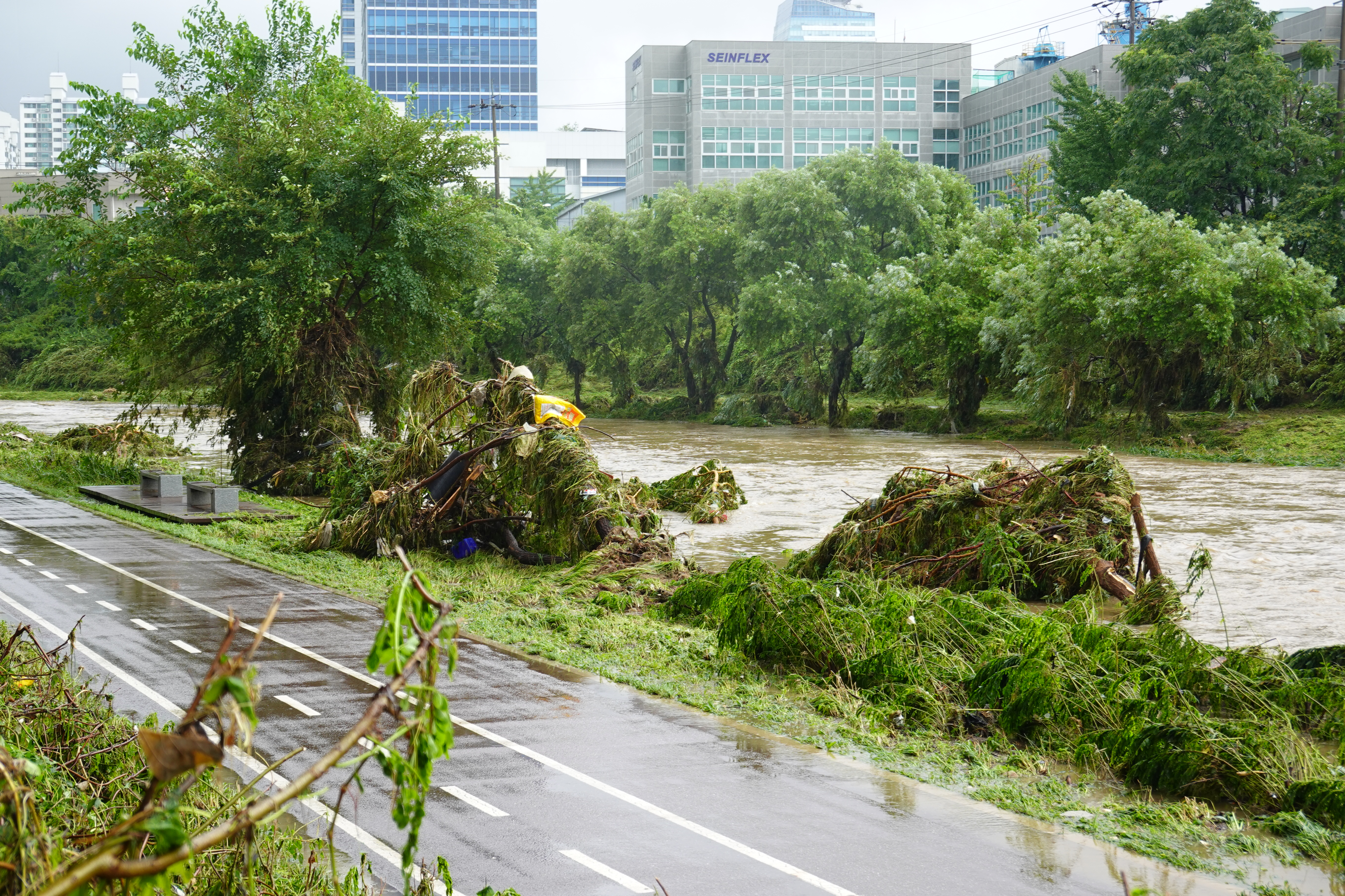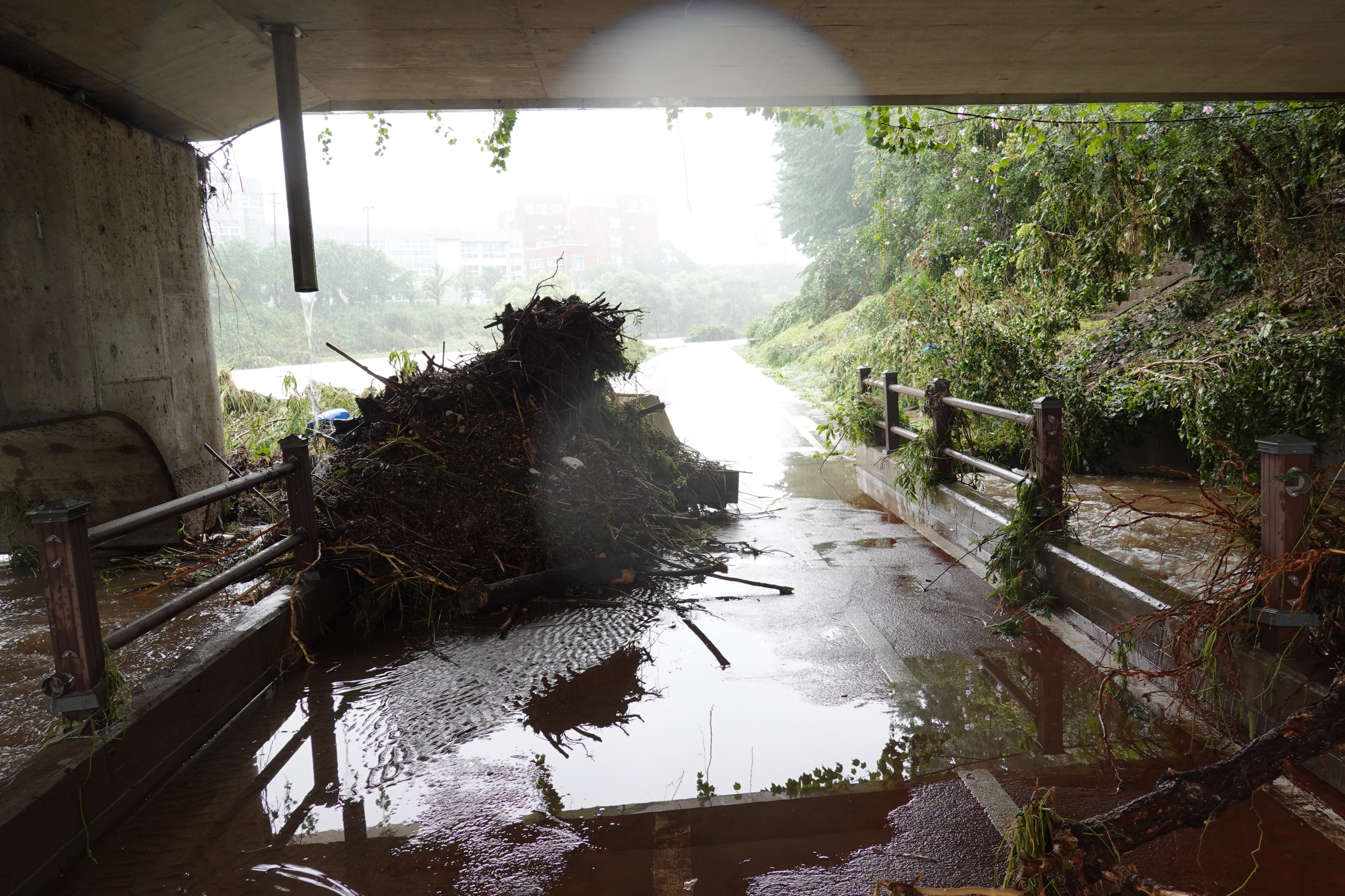 2025.07.27/ #도시기록 #안양천 #큰물/ 안영천에 큰물 지나가던날의 모습. 쌍개울~명학대교 구간에서 똑딱이가 보다.