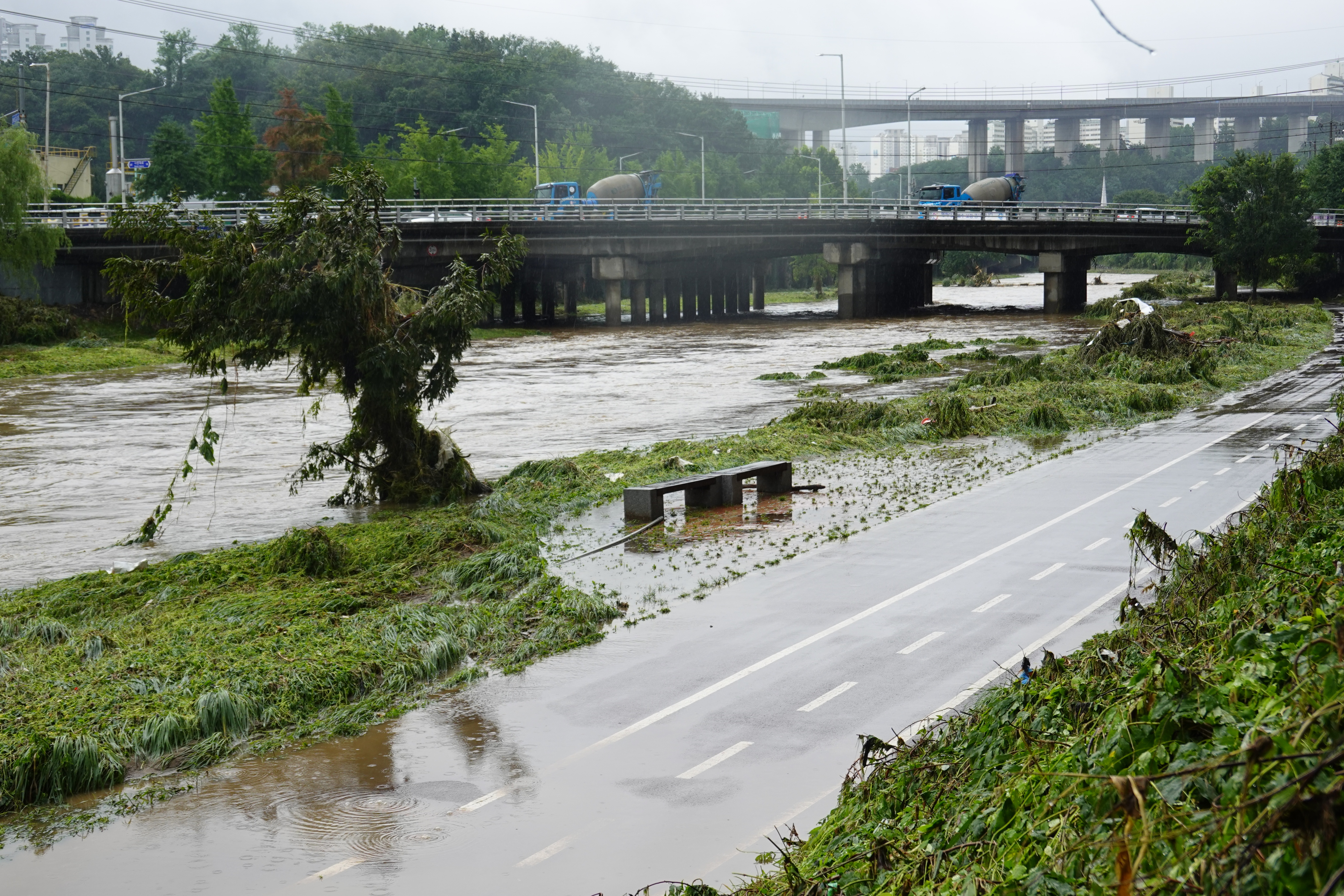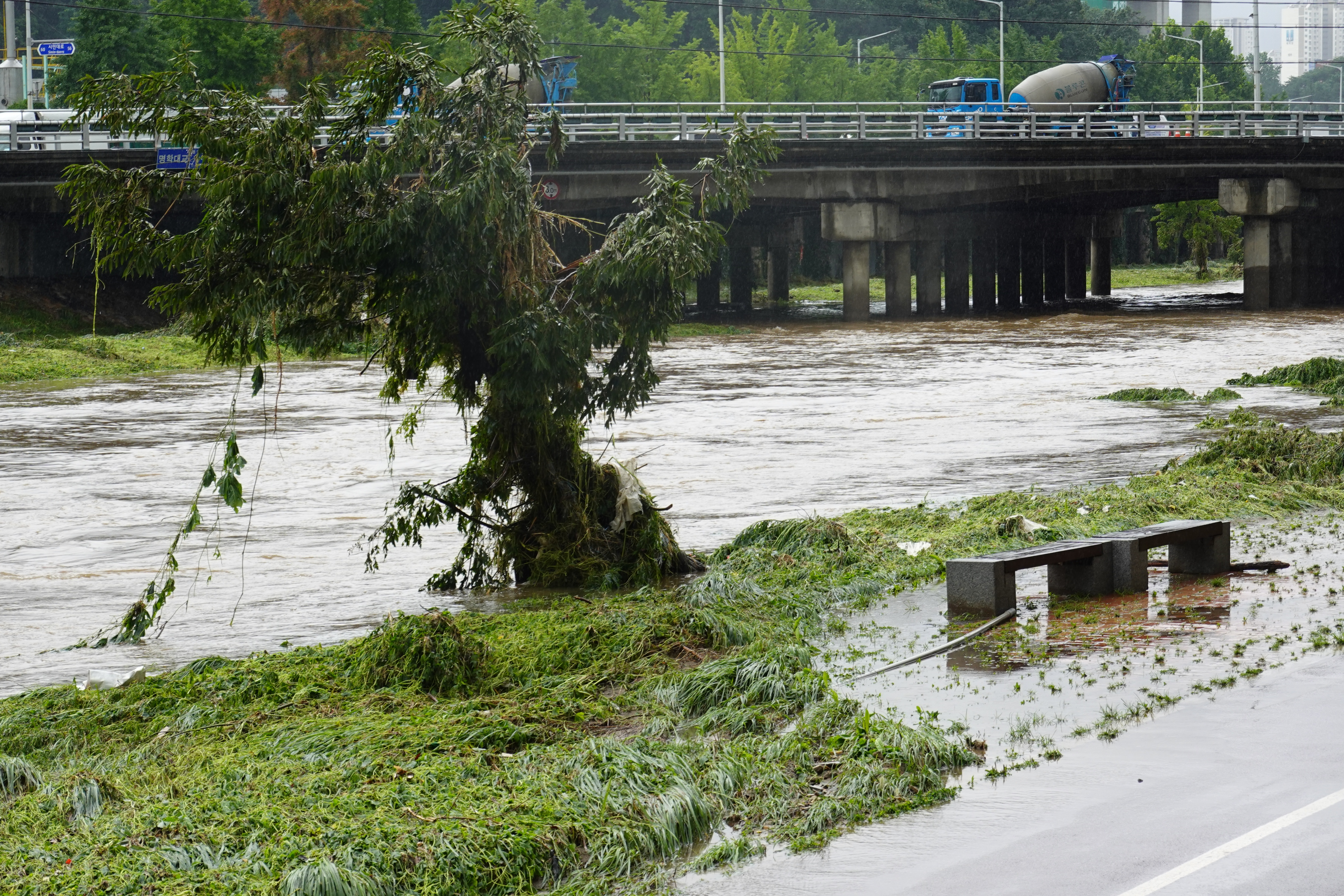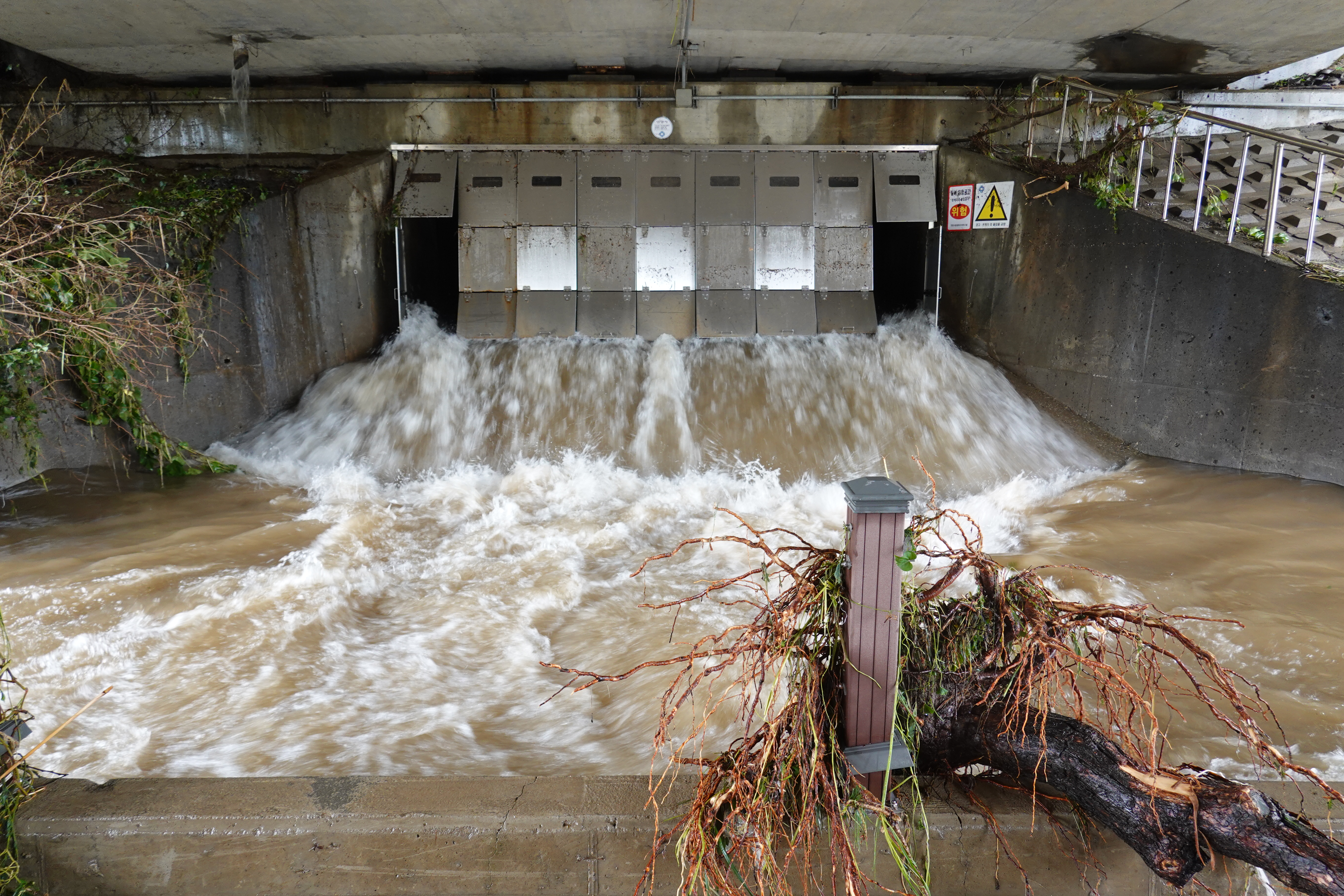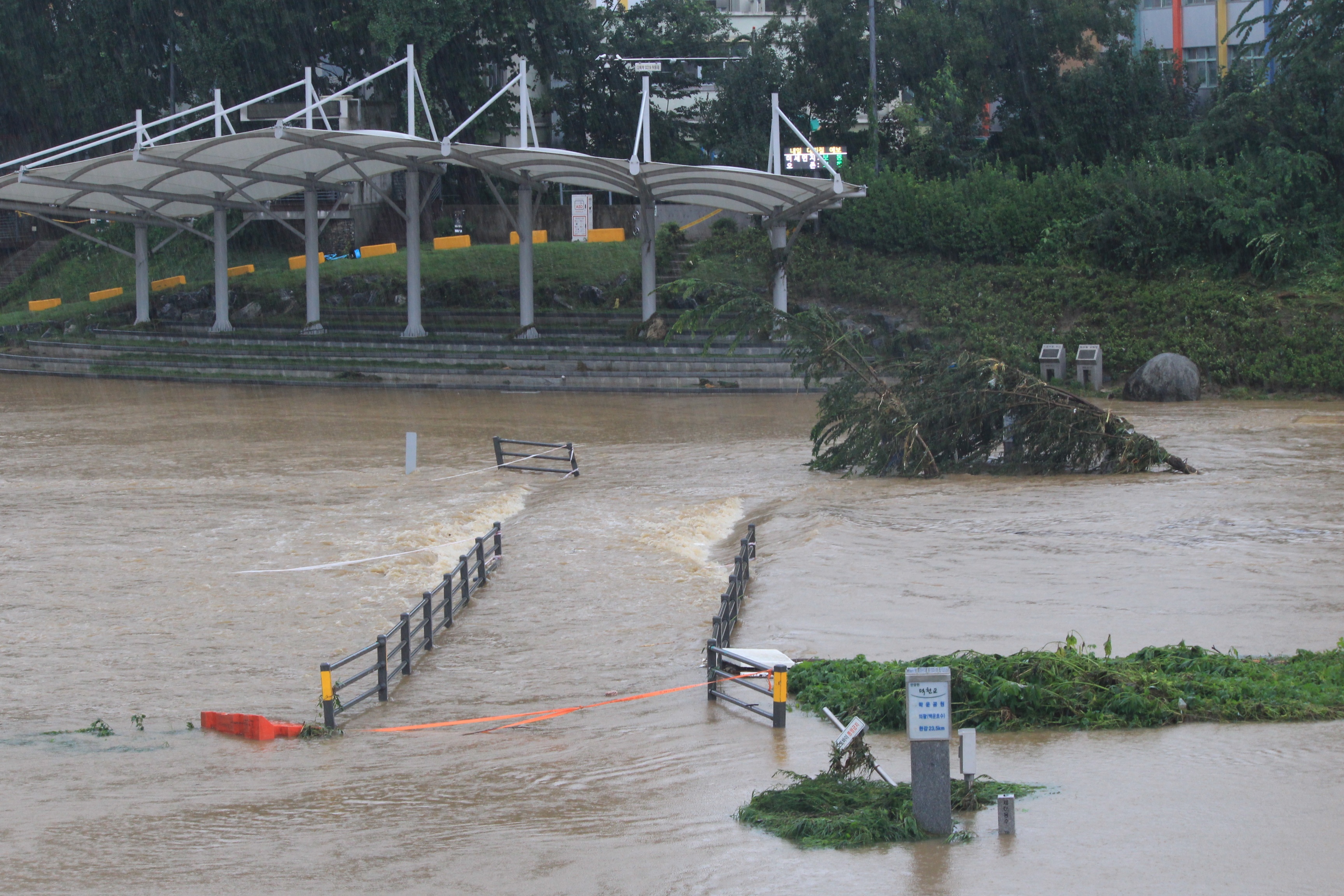 2025.07.27/ #도시기록 #안양천 #큰물/ 안영천에 큰물 지나가던날의 모습. 쌍개울~명학대교 구간에서 똑딱이가 보다.