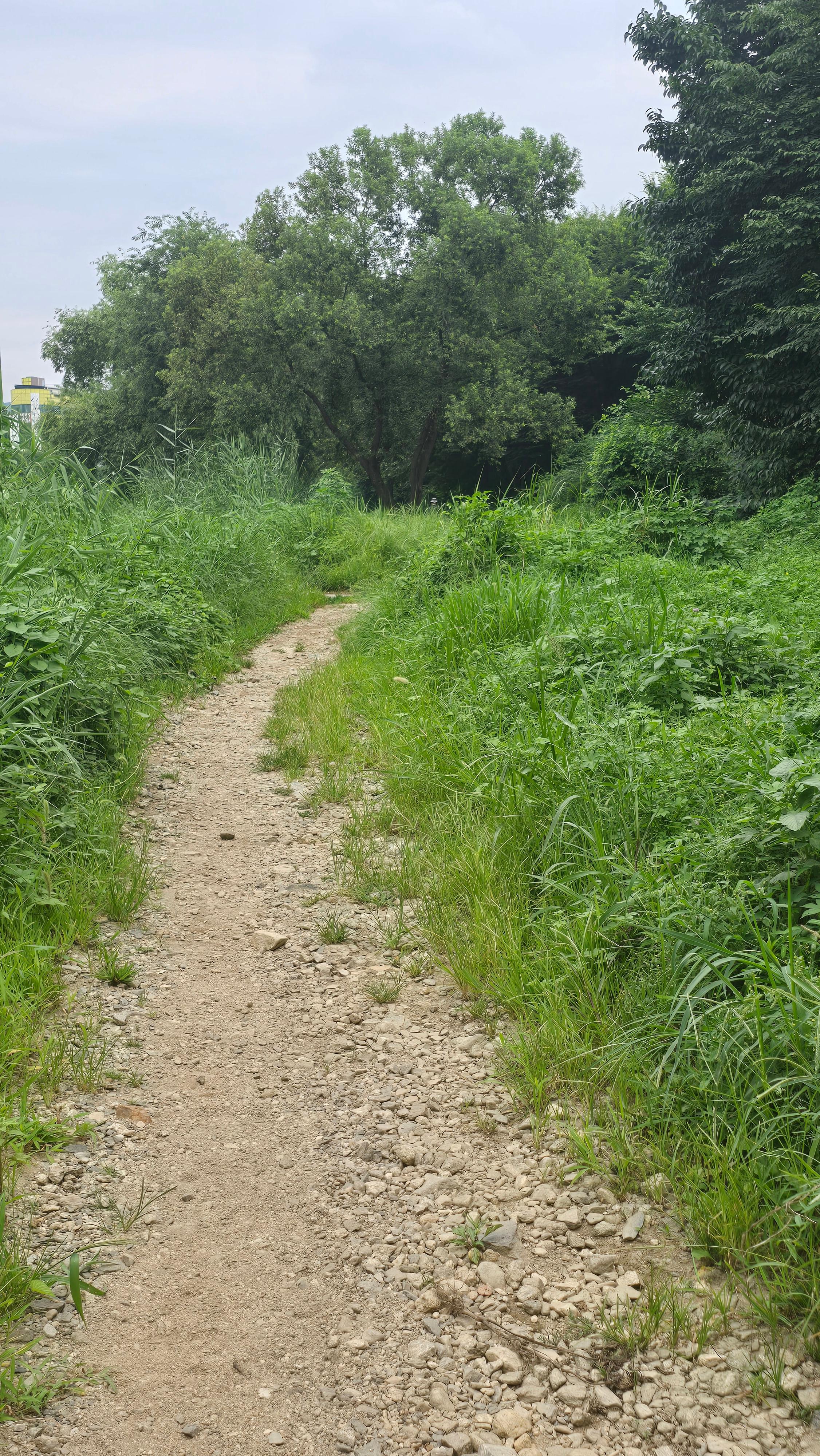 2025.08.03/ #도시기록 #안양 #학의천 #흙길/ 1999년 안양천살리기 사업을 통해 생태하천으로 조성하면서 흙길을 그대로 둔 학의천 남쪽 둔치 산책로. 사람과 자연(동식물)이 공존하는 구역이다.