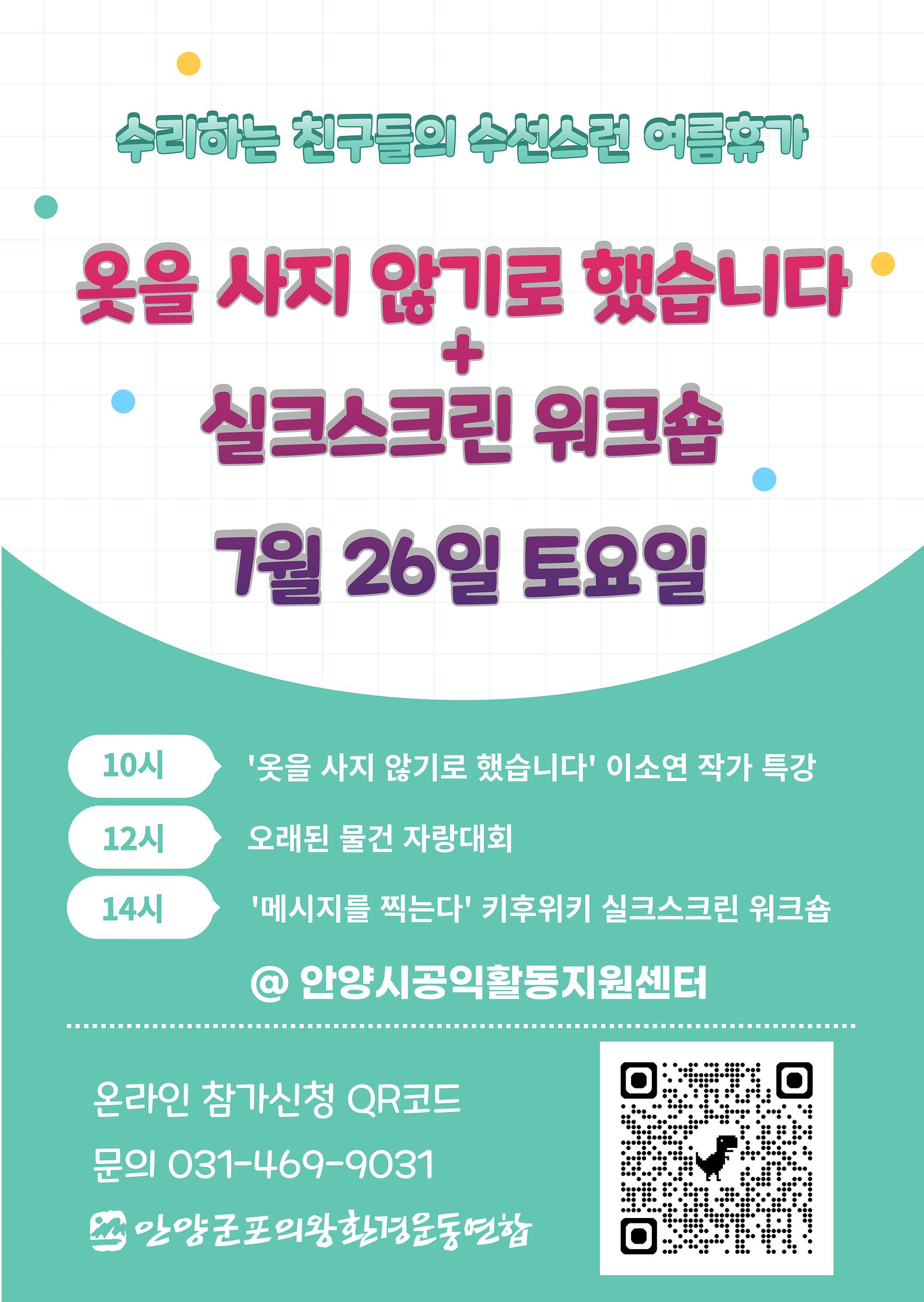 안양군포의왕 환경운동연합이 지난 6월과 7월을 통해 자원순환과 지속가능한 소비를 실천하는 프로그램, 수리하는 친구들의 수선스런 여름휴가(수수휴가)를 진행했다. 7월 26일에 열린 행사에는 다양한 시민들이 함께해 의미있는 시간을 가졌다.