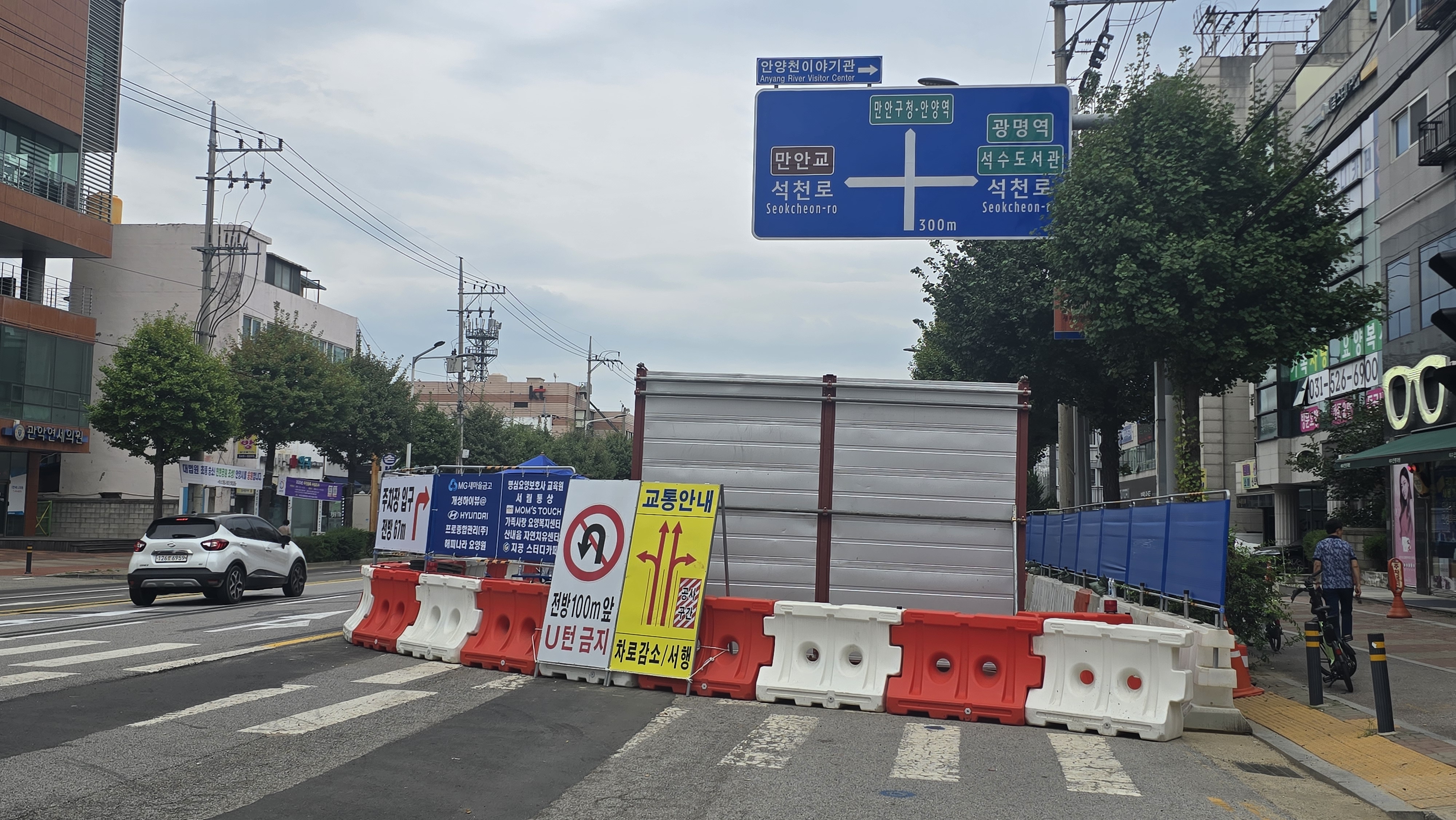 2025.08.10/ #도시기록 #안양 #지하철/ 2029년 12월 개통 정인 월곶-판교 복선 전철 6공구 공사 구간인 안양 만안정거장(석수전화국사거리) 츨입구 예정지 주변풍경.