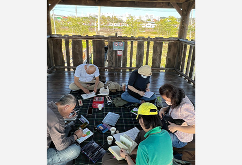 “이사를 왔는데 뭐 이렇게 부조화한 동네가 있나 했어요. 한쪽으로는 화물 컨테이너, 창고들이 즐비하고 화물차들이 수시로 지나다니는데, 반대편으로는 자연이에요. 왕송못이 있고 철새가 날고요. 아홉 개의 연못이 자연 순환을 해요. 지금 가마우지들이 날고 있는데, 벌써 돌아갔어야 할 철새가 여기 정착을 해버렸어요. 저도 정년퇴직을 하면서 이제 뿌리를 내리겠다고 여기로 이사를 온 거죠.”