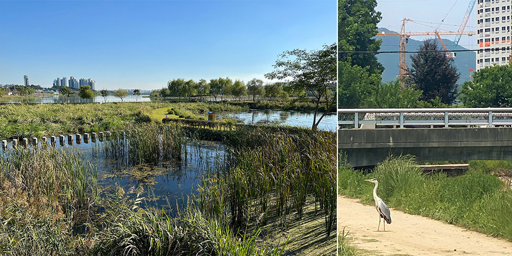 더위가 막 시작된 5월 중순, 경기도 의왕시 왕송못(왕송호수) 주변은 새들의 천국이었다. 온갖 새소리가 매우 크고 방해 없이 들렸고, 형태와 색의 세부를 알 수 있을 만큼 가까운 눈높이에서, 꽤 오래 하나의 개체들과 만날 수 있었다. 이를테면 가마우지는 생각보다 더 까맣고 윤이 나는 도톰한 깃털을 과시하며 밭은 하늘에서 우리 주변을 우아하게 맴돌다, 어느새 물속으로 쏜살같이 꽂히더니 수면 위로 나와 물을 털어내는 한바탕의 쇼를 보여줬다. 돌고래쇼를 하는 철새라니! 그런가 하면 인근 농로를 막고 갑자기 나타난 왜가리(로 보이는) 녀석은 우리 일행을 아래위로 훑어보며 객들을 이곳으로 들일지 말지 품평을 하는 모양새를 취했다. 그 역시 스쳐 지나가지 않고 눈앞에 꽤 오래 머물렀다. 비인간 생명체들이 배경으로서가 아닌, 지역사회를 사는 하나의 존재로 성큼 다가오는 순간이었다. 그것은 아름다운 자연경관에 보내는 감탄사와는 또 다른 어떤 감흥과 정서를 불러일으켰다.