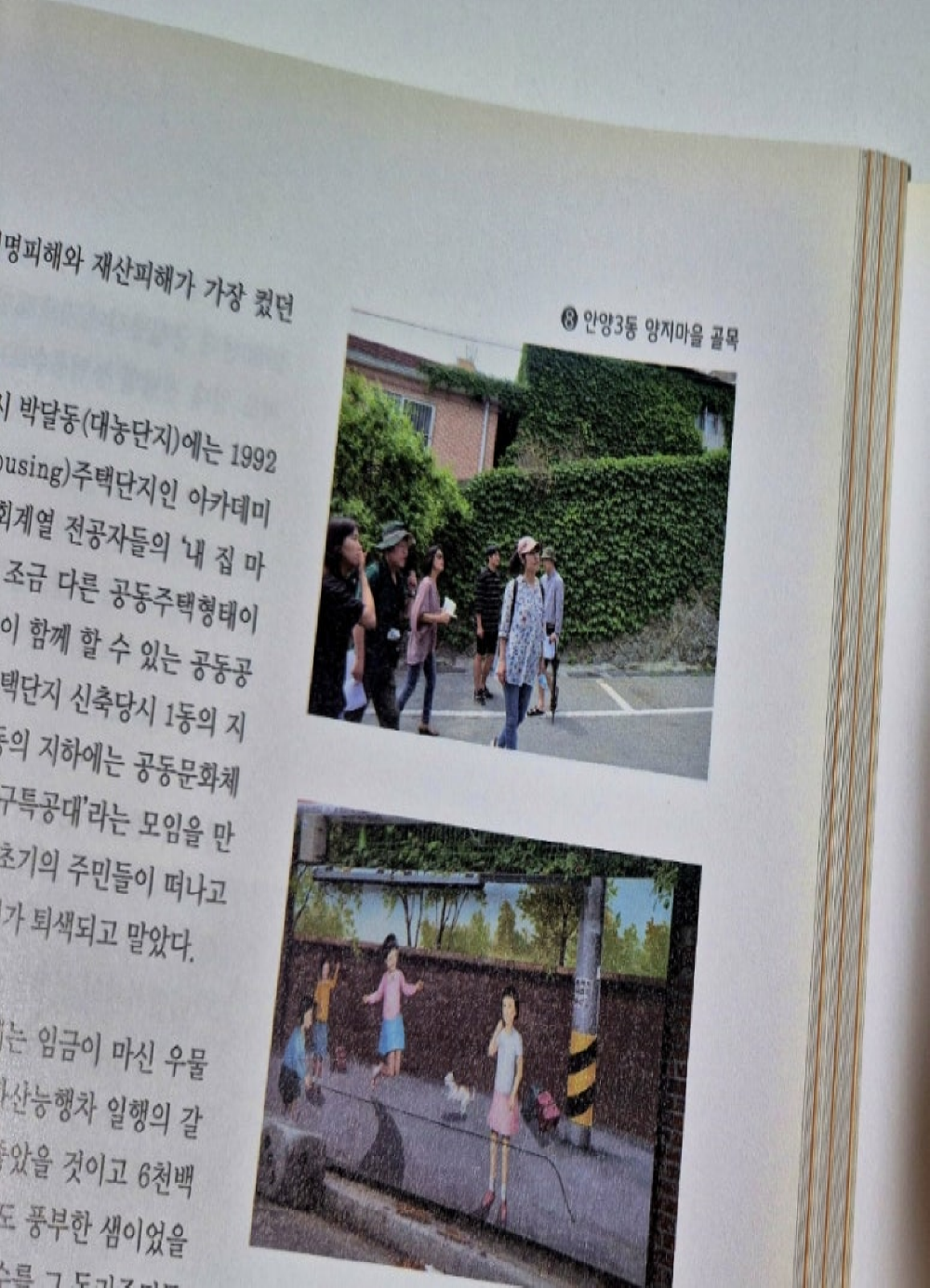 생각난 김에 오랫동안 서가에서 먼지를 뒤집어 쓰고 있는 <우리안양한바퀴>를 집어내 펼쳐보았다. 최병렬 선생님, 권영세 작가, 강보람 팀장,... 안양 골목을 함께 누볐던 얼굴들이 갈피마다 숨어 있다가 책장을 넘기면 일렁일렁 나타나니 반갑기 그지없다. 요즘 같은 극한 폭염에선 엄두도 못 낼 일을 다들 그 폭서의 땡볕에 무슨 열정으로 해낸 건지...