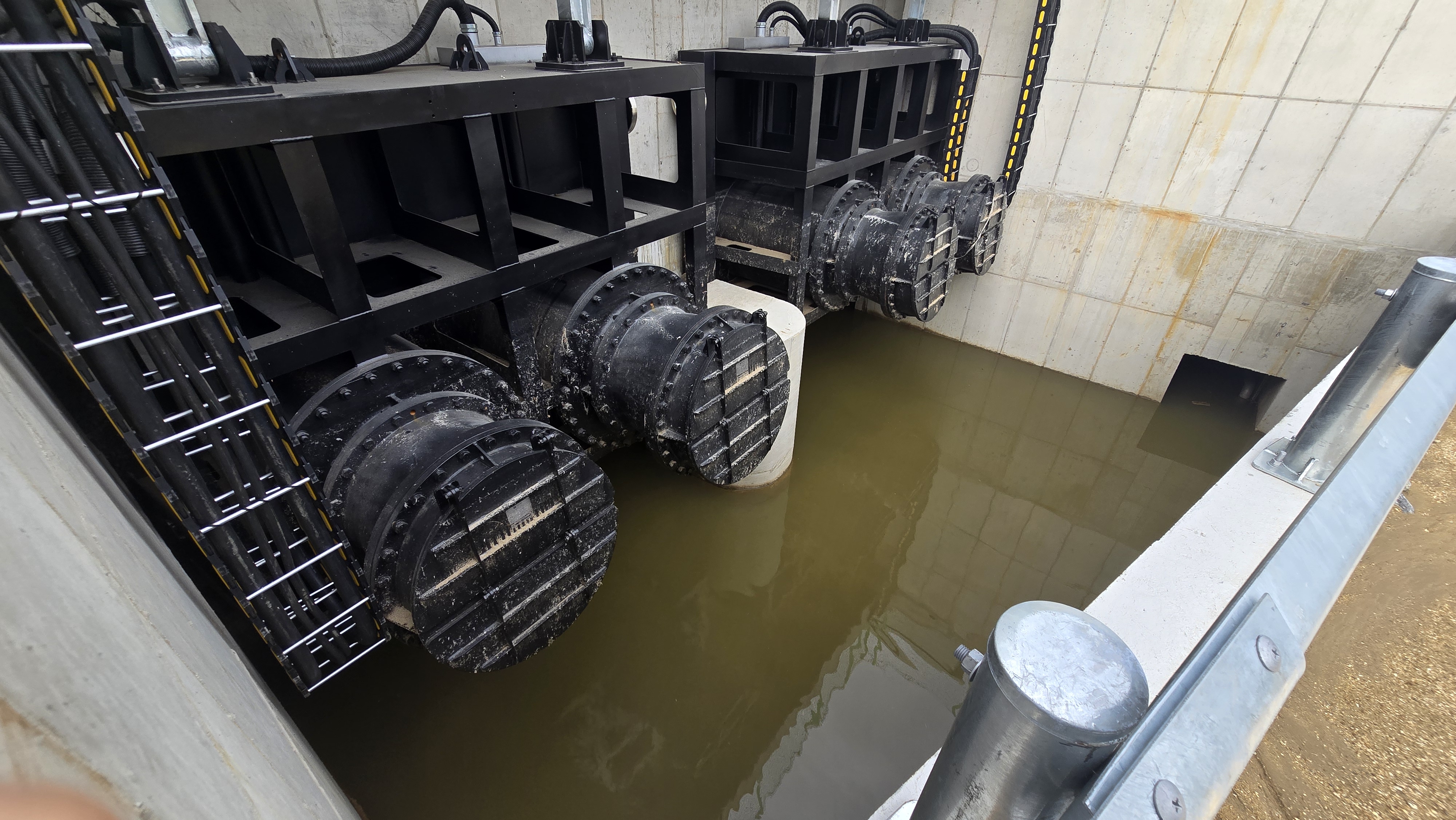 2025.08.24/ #도시기록 #안양#내비산교 #빗물펌푸/ 안양 학의천 지천인 내비산교 일원 수문일체형 빗물 펌푸 공사가 완공됐다.