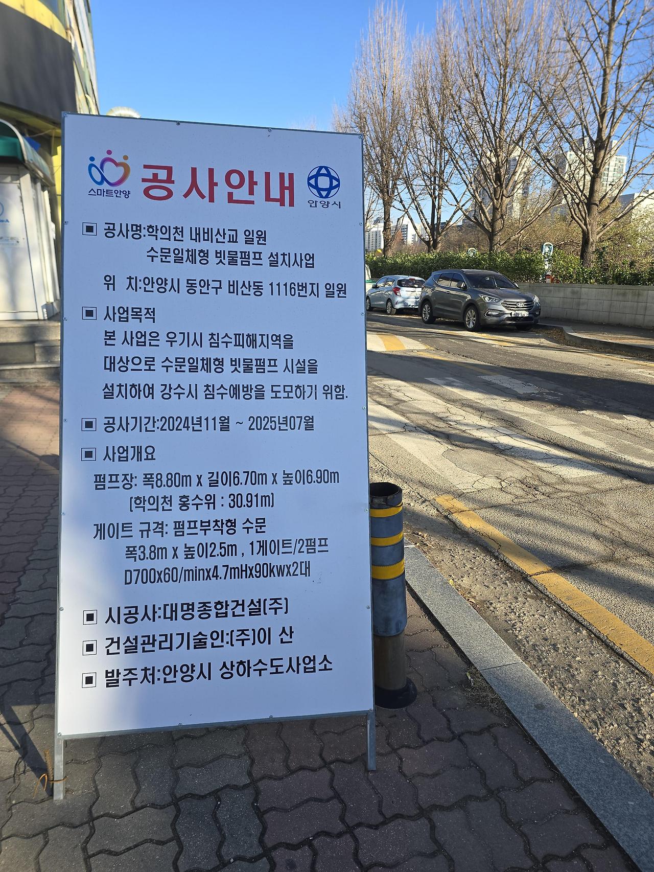 2025.08.24/ #도시기록 #안양#내비산교 #빗물펌푸/ 안양 학의천 지천인 내비산교 일원 수문일체형 빗물 펌푸 공사가 완공됐다.