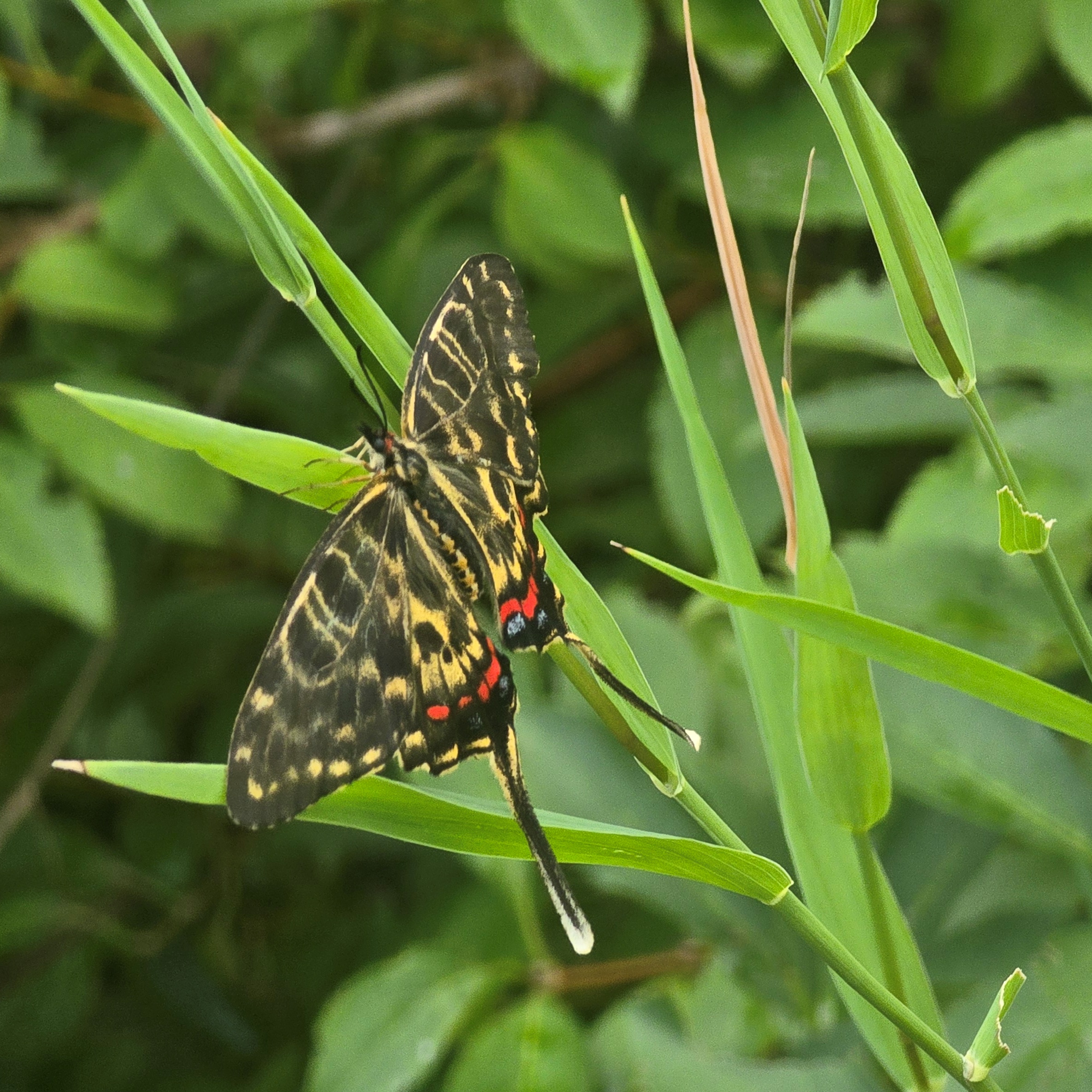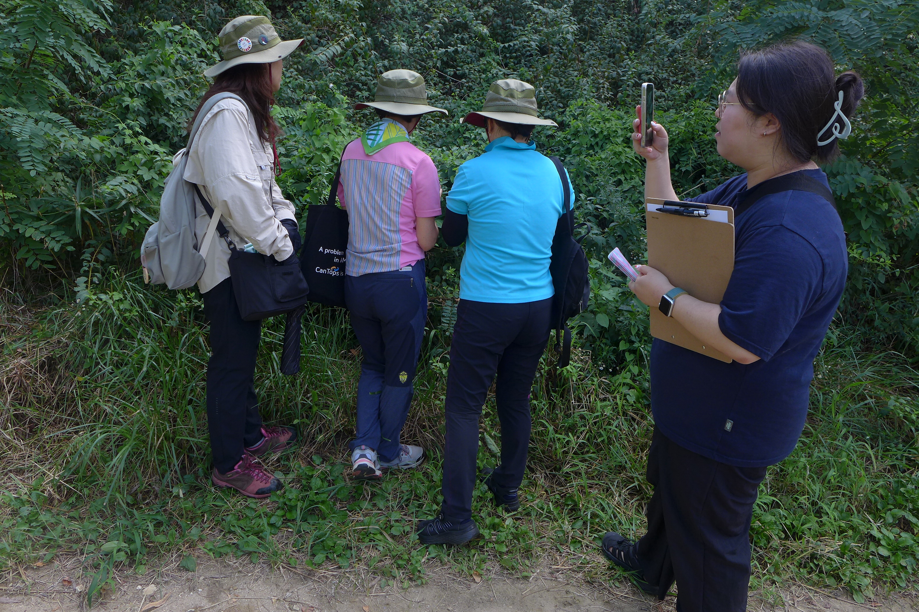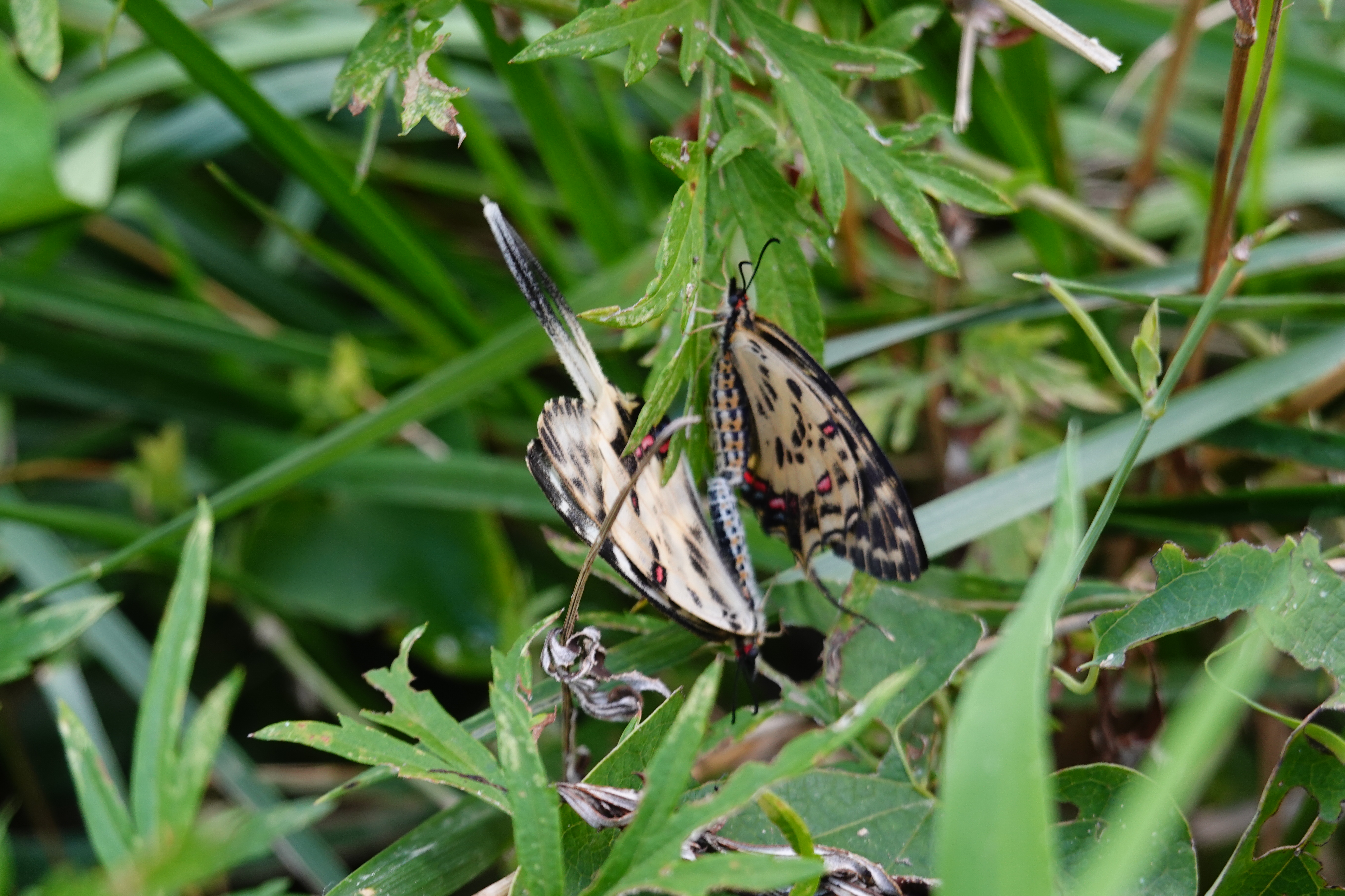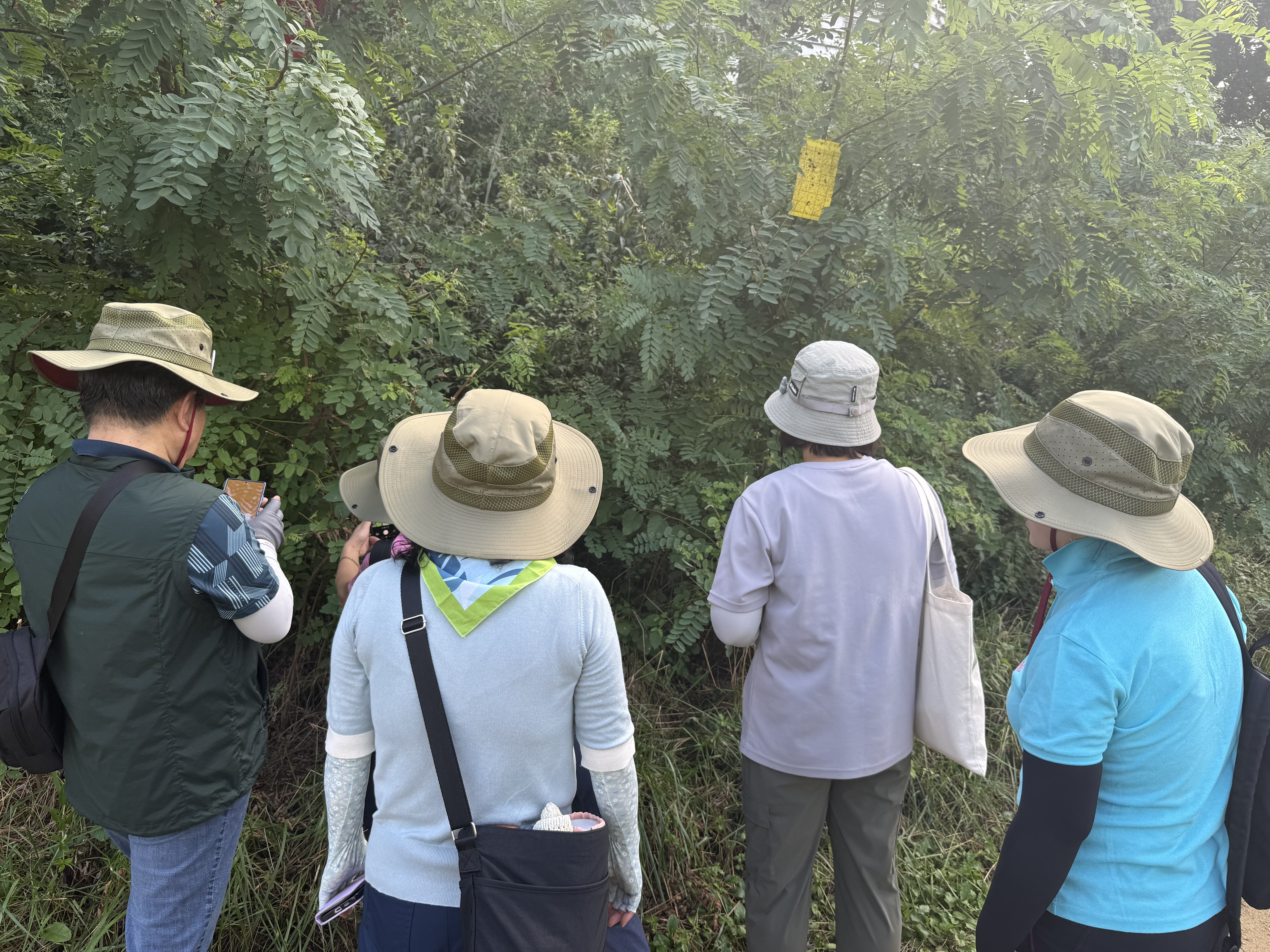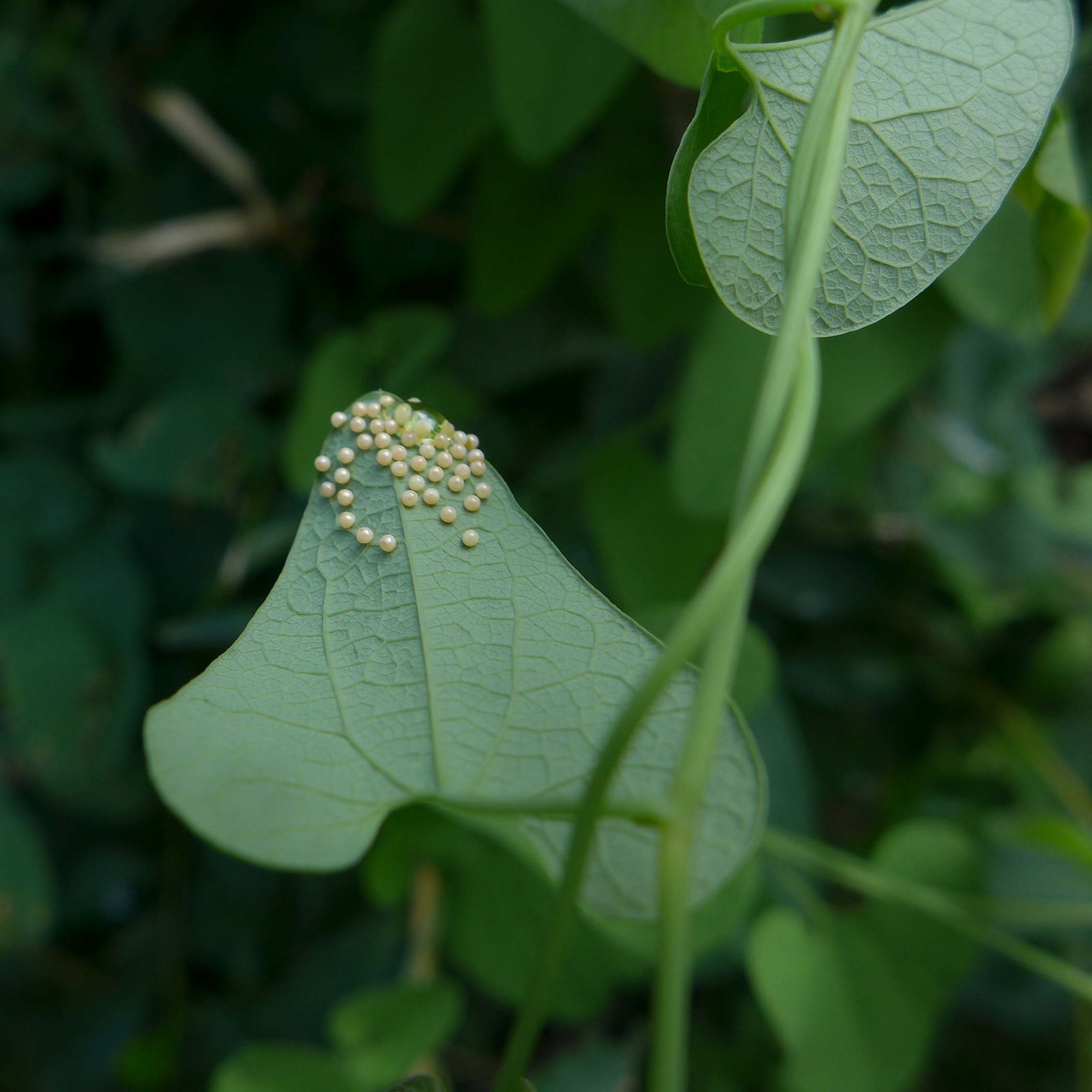 안양시지속가능발젼협의회 생태전환분과의 꼬리명주나비 자생지 모니터링. 안양 인덕원 학의천(인덕원~관양교 구간) 쥐방울덩굴 군락지에서. 여러 사람이 돋보기 같은 눈으로 탐색을 하니 역시 발견되는 것들이 많았다. 꼬리명주나비알과 번데기, 쥐방울덩굴 꽃과 열매, 꼬리명주나비 암캇과 수컷에 짝짓기까지. 애벌레만 빼고 다 보았다.