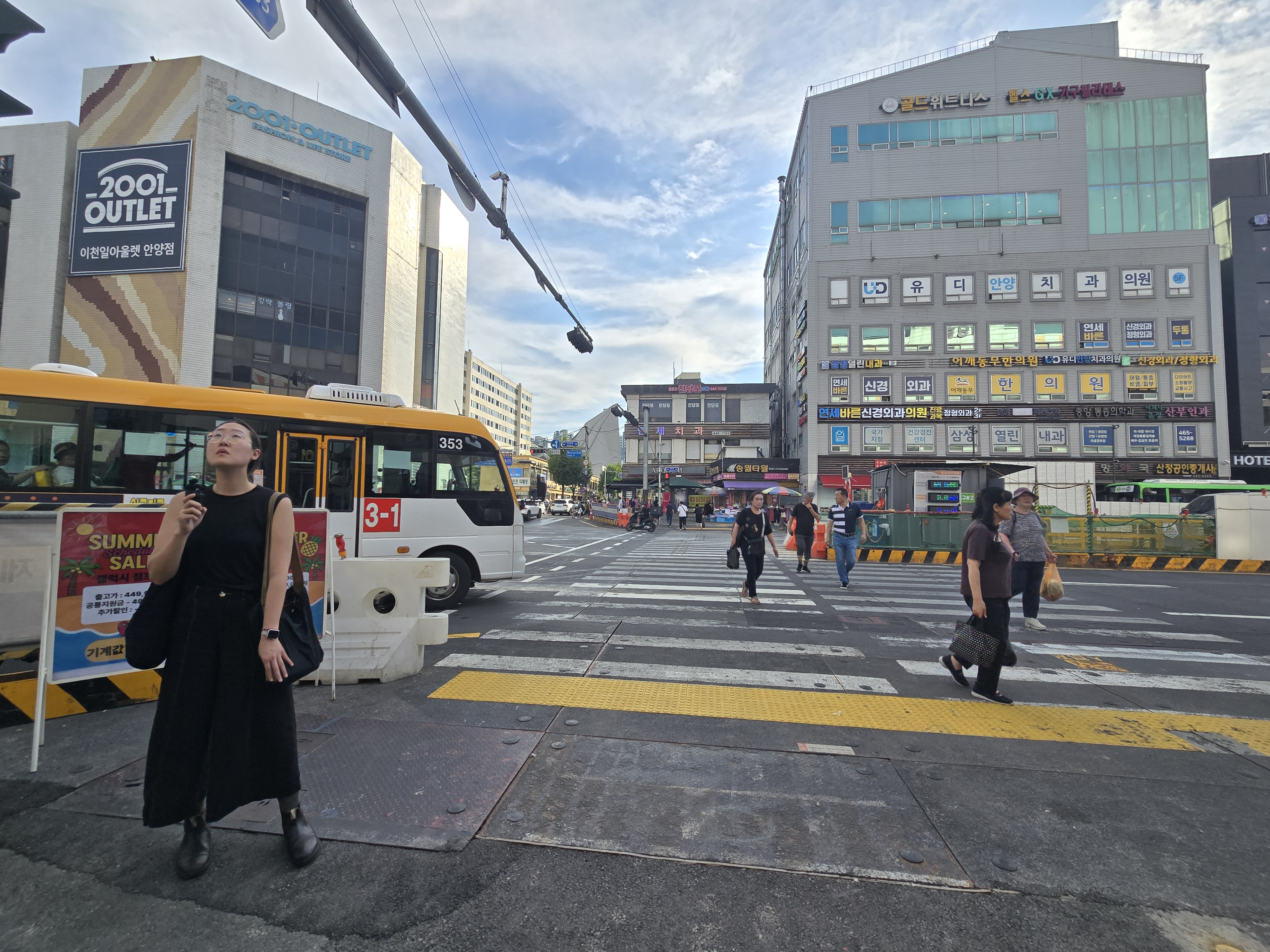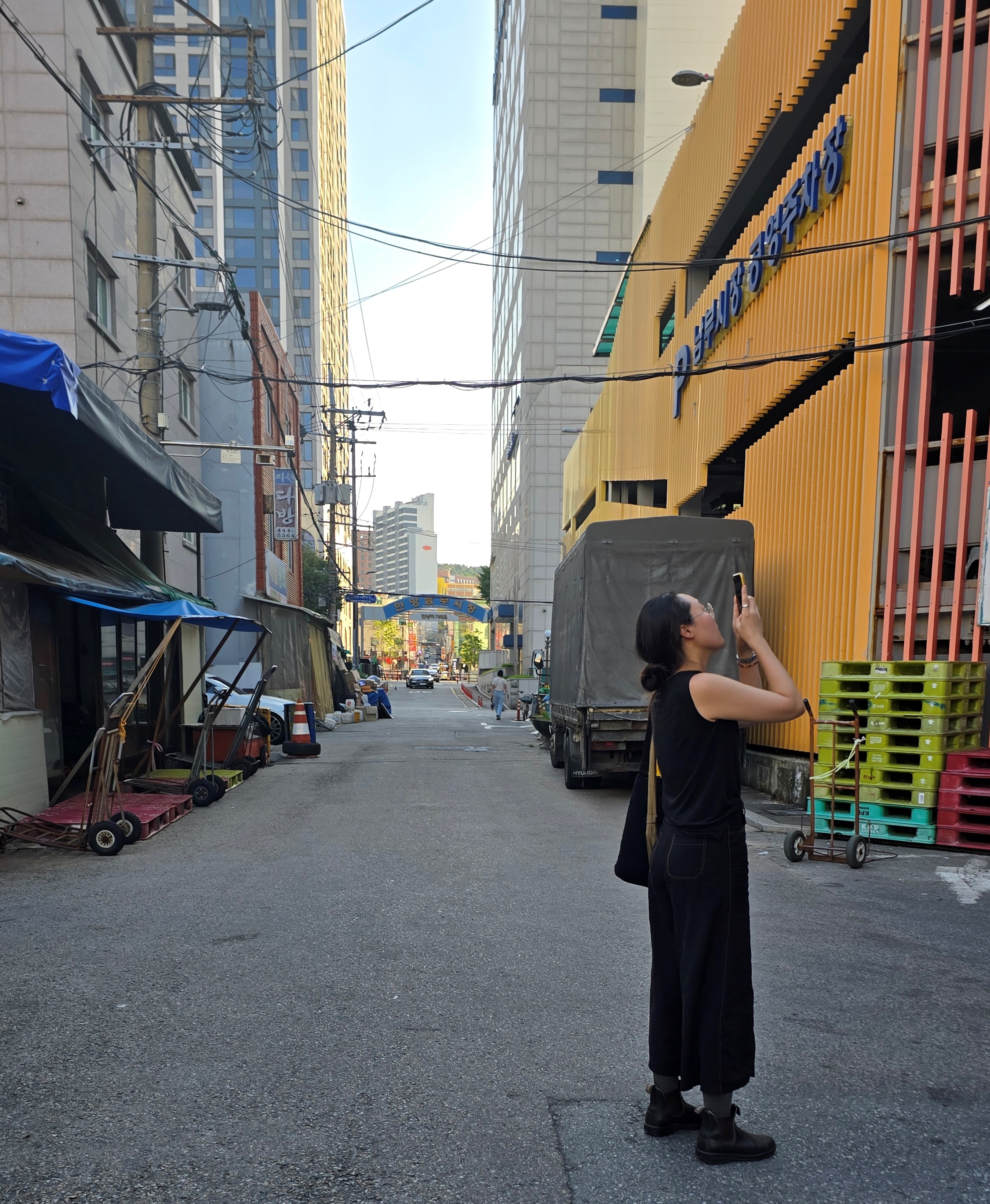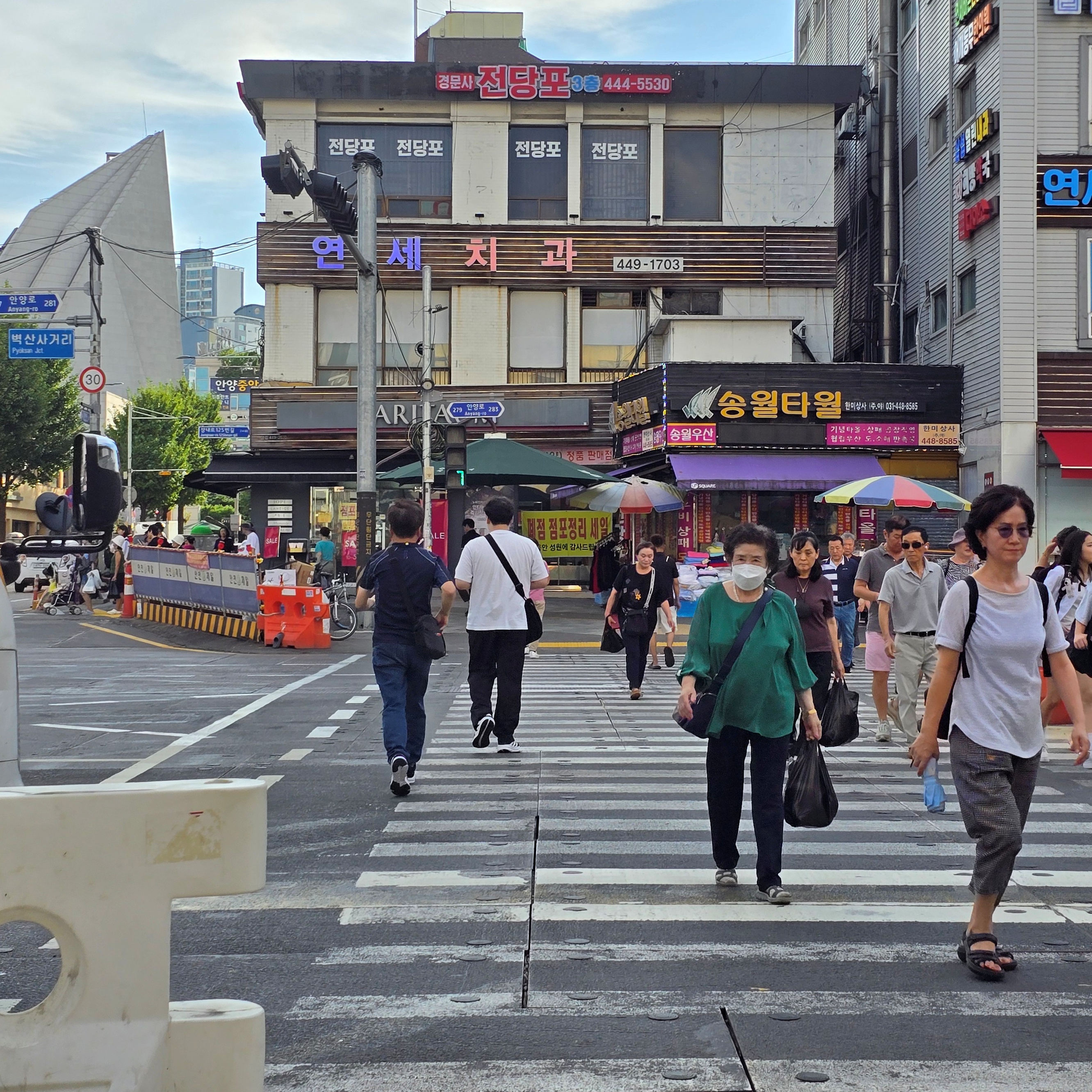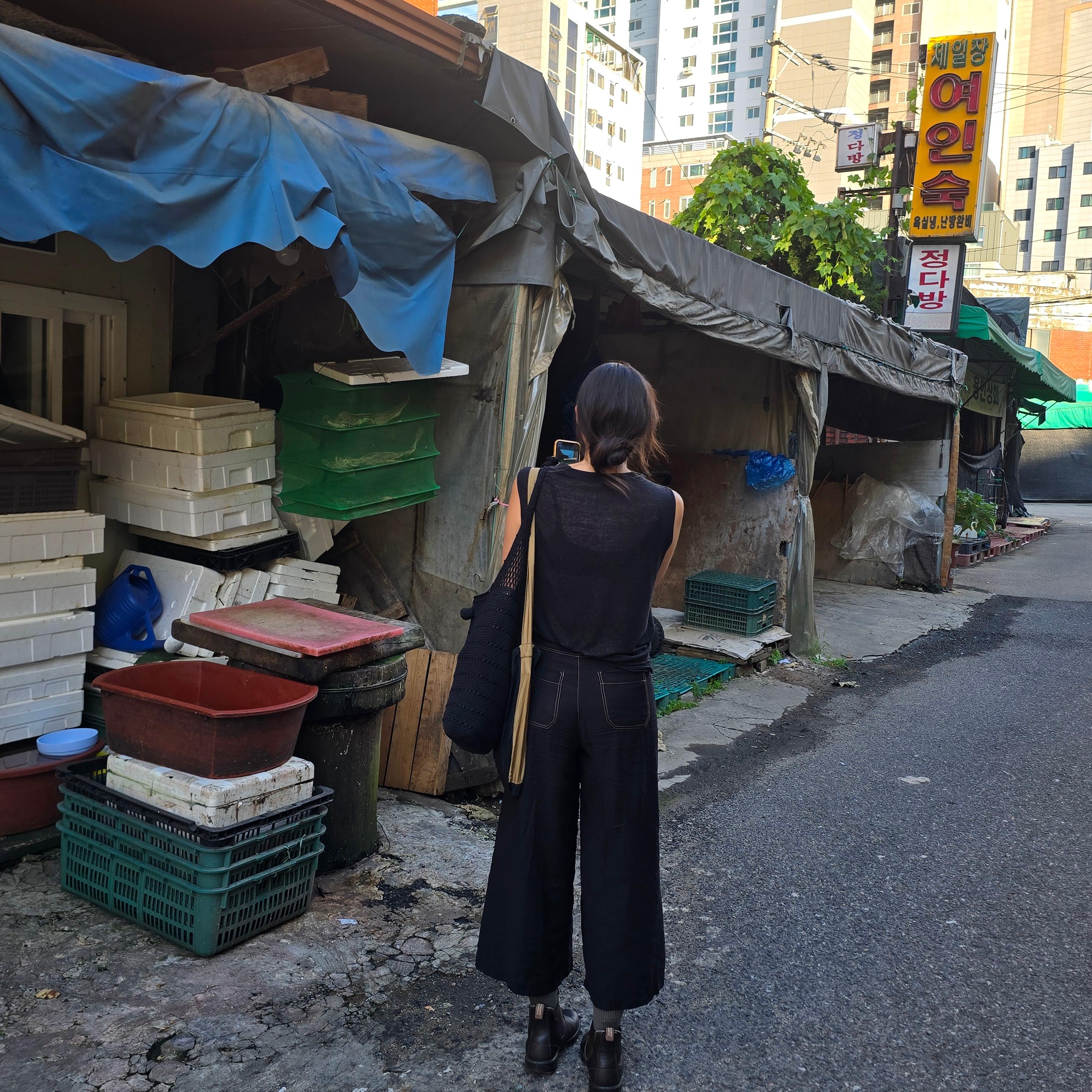 2025.08.26/ #도시기록 #탐방 #안양 #남부시장 #독일손님/ 독일에서 미술 연구 및 기획 활동을 하고 있는 작가의 안양의 옛 방직공장(금성방직, 테평방직)과 일했던 여성들에 대한 연구와 조사 및 기획전시에 도움을 주고자 공장이 있던 동네와 골목의 흔적을 찾아 안내하고 설명하다.