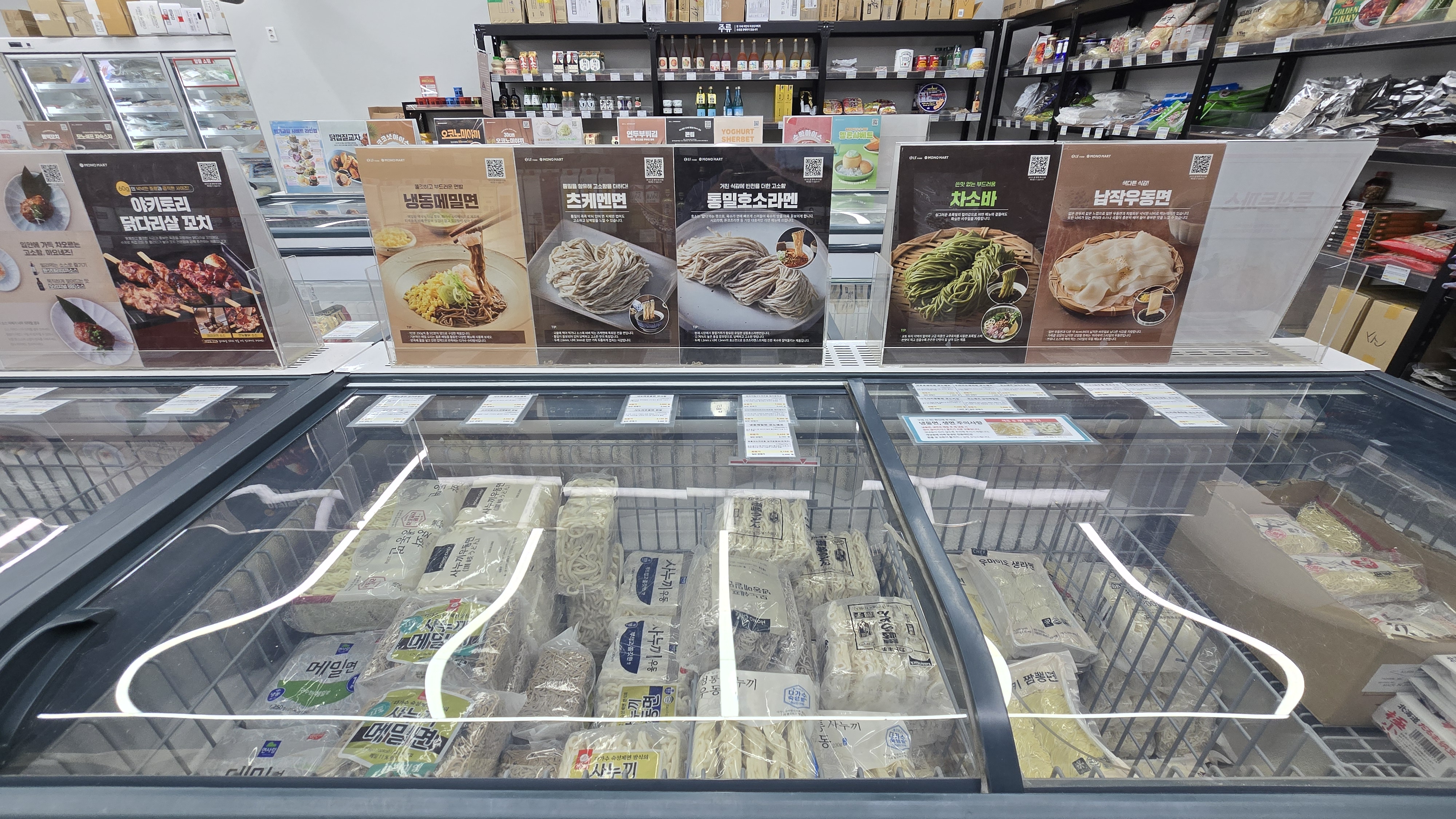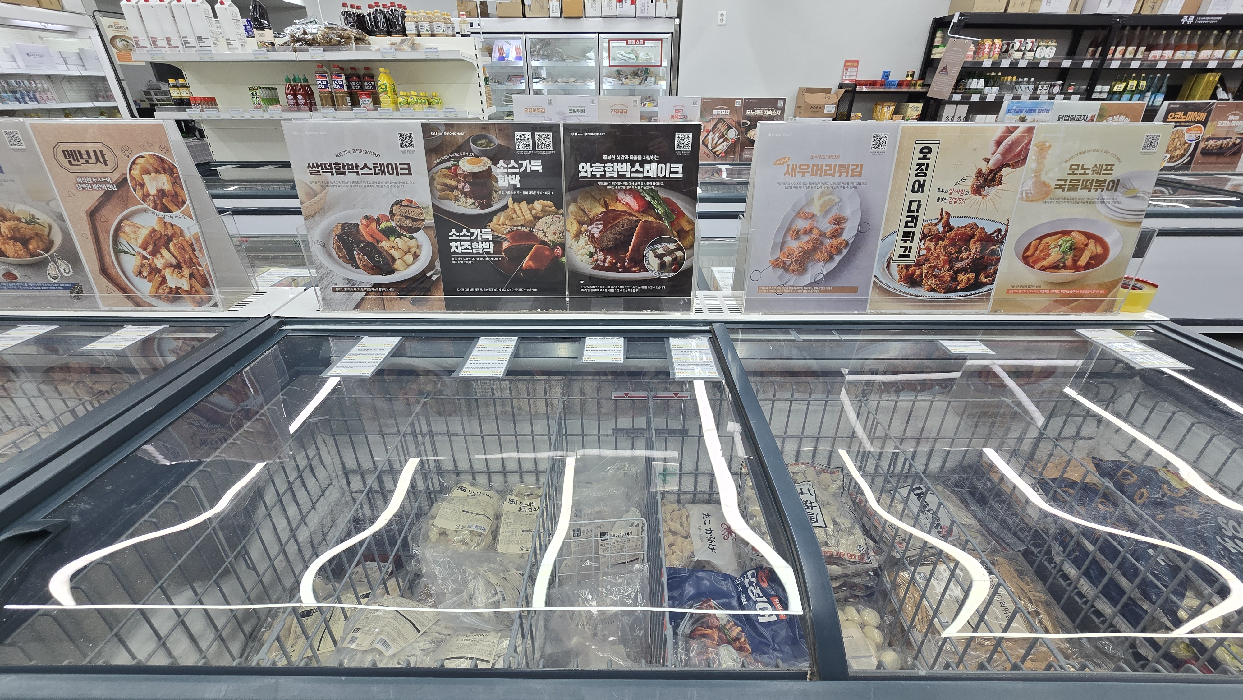 안양일번가를 돌아보다 점포(모노마트 안양점)를 발견했다. 매장 규모는 작지만 다양한 밀키트와 냉동식품들이 가득해서 보는 재미와 쇼핑하는 재미가 있다. 특히 술을 즐기는 분들에게는 술과 안주를 쇼핑하기 딱 좋다.