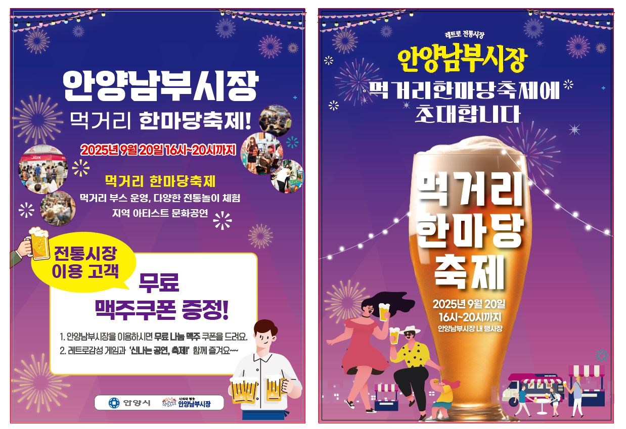 안양남부시장 야맥축제를 오는 9월20일 오후4시-8시 마련합니다. 많은 분들이 깊어가는 가을를 만끽하시면 좋겠습니다.