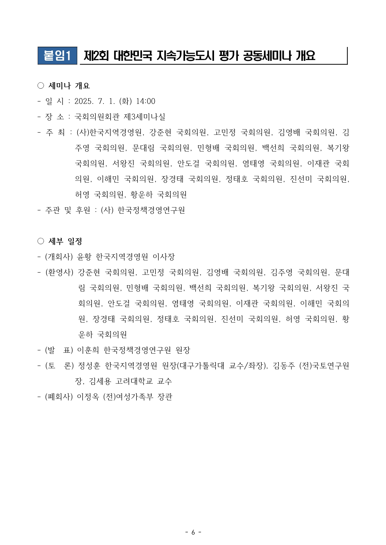 사단법인 한국지역경영원(이사장 윤황, 원장 정성훈)이 지난 7월 국회의원회관 제3세미나실에서 ‘제2회 대한민국 지속가능도시 평가 공동세미나’를 개최하고 지속가능도시 평가결과를 발표했다. 지속가능도시 평가’는 도시의 현재 역량과 미래 대응력을 종합적으로 분석하는 평가로, 2025년에는 전국 226개 기초지자체와 17개 광역지자체를 대상으로 실시됐다.