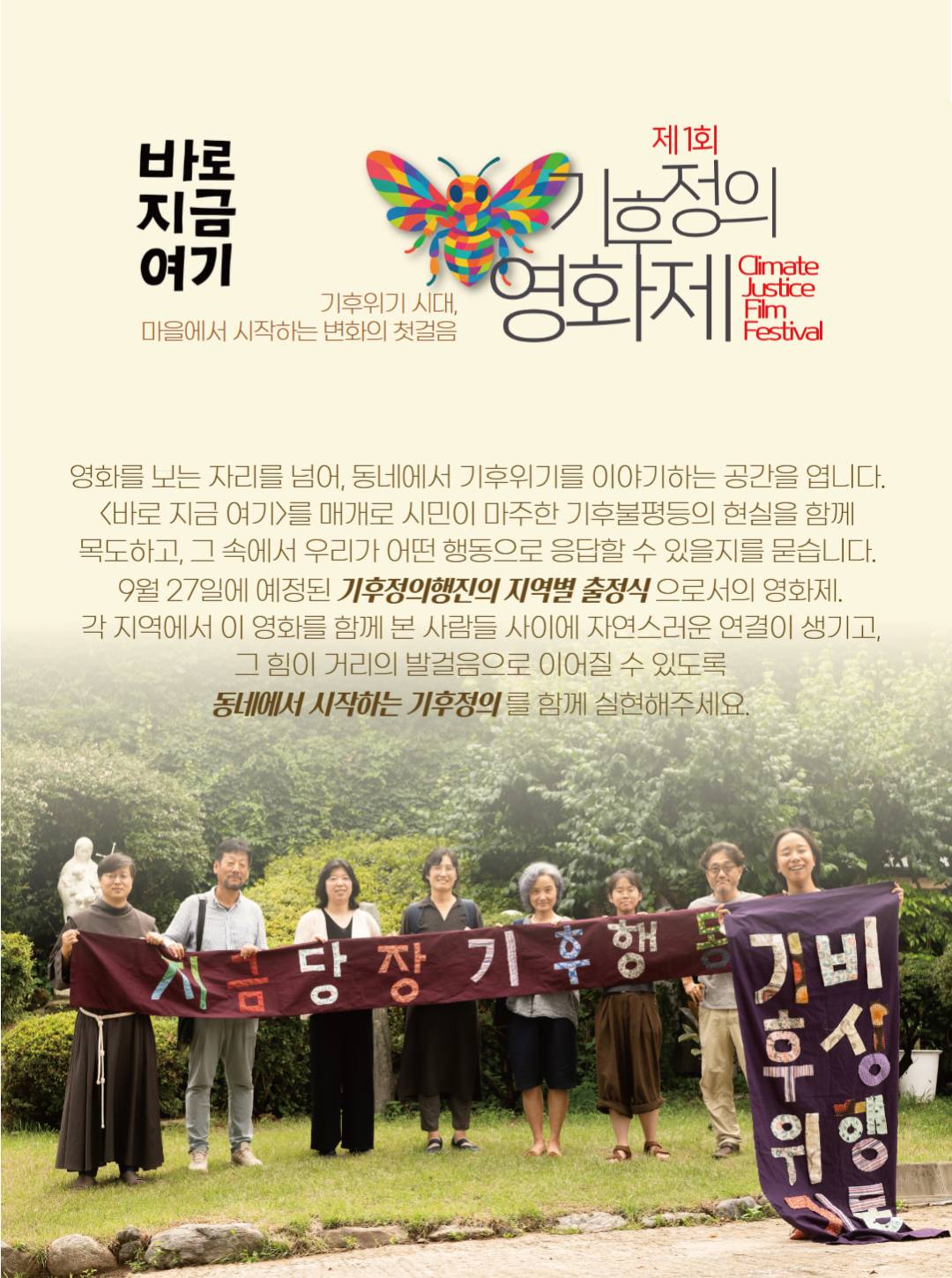 기후위기 위협에 대처하는 시민들의 삶을 다룬 다큐영화 <바로 지금 여기> 전국 공동상영회(관객이 여는 100개의 극장)가 안양 CGV평촌(15일 19:30)과 군포CGV산본(20일 14:00)에서도 마련된다.