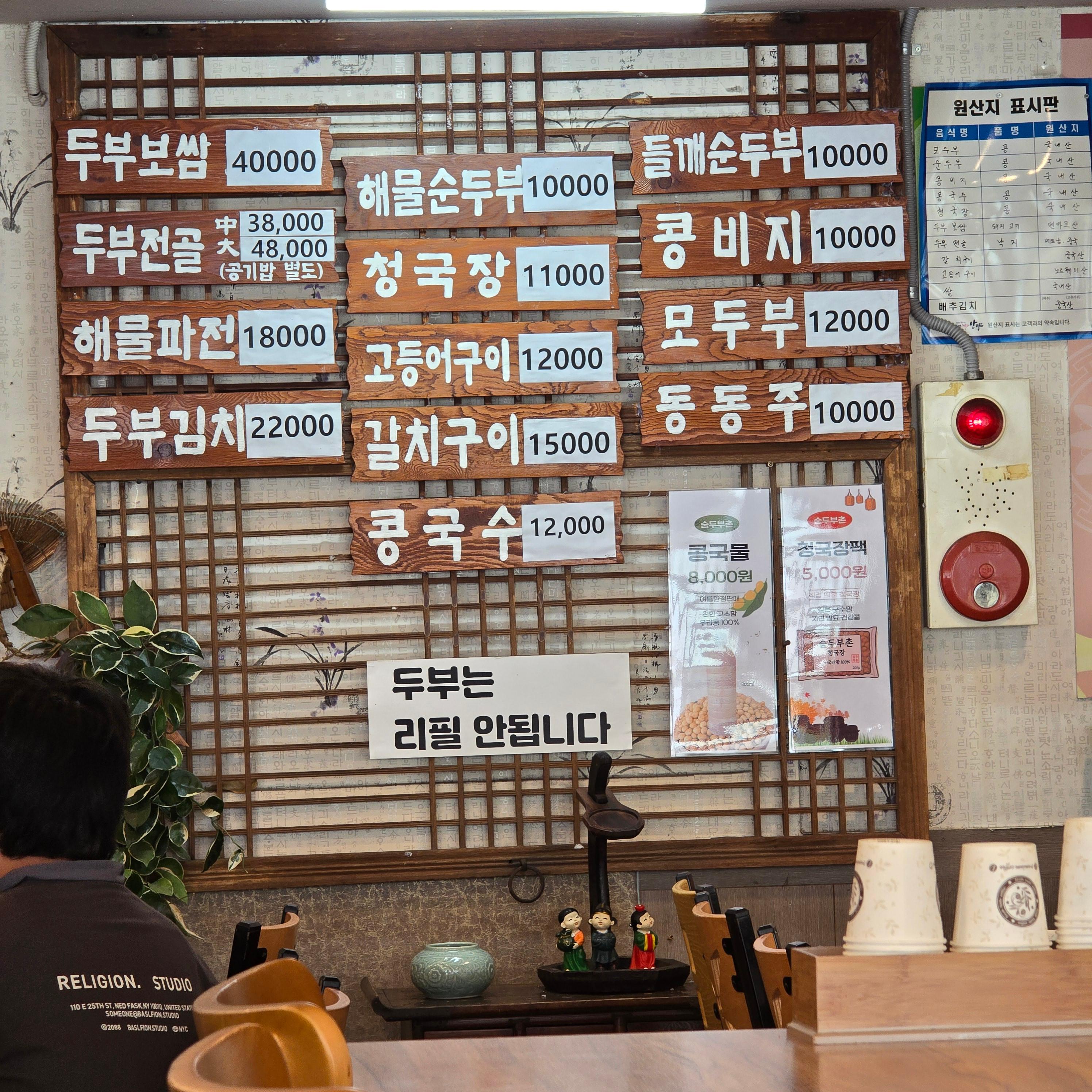 이 집 장맛이 비교적 괜찮은데 권희준씨 부인의 친정이 충북 금산으로 증조할머니에게 전수받은 강된장, 재래식 된장, 간장을 사용하고, 두부 또한 금산에서 직접 농사해 올려주는 대두를 전날 10시부터 물에 불려 다음날 아침 솥에서 끓여 만드는 100% 국산이라네요.