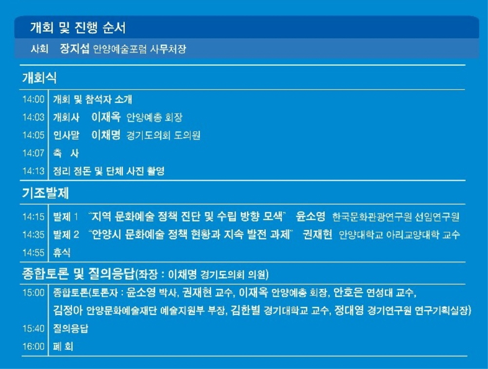 안양에술포럼과 경기도의회, 경기연구원이 지역 문화예술 정책포럼 개최한다.