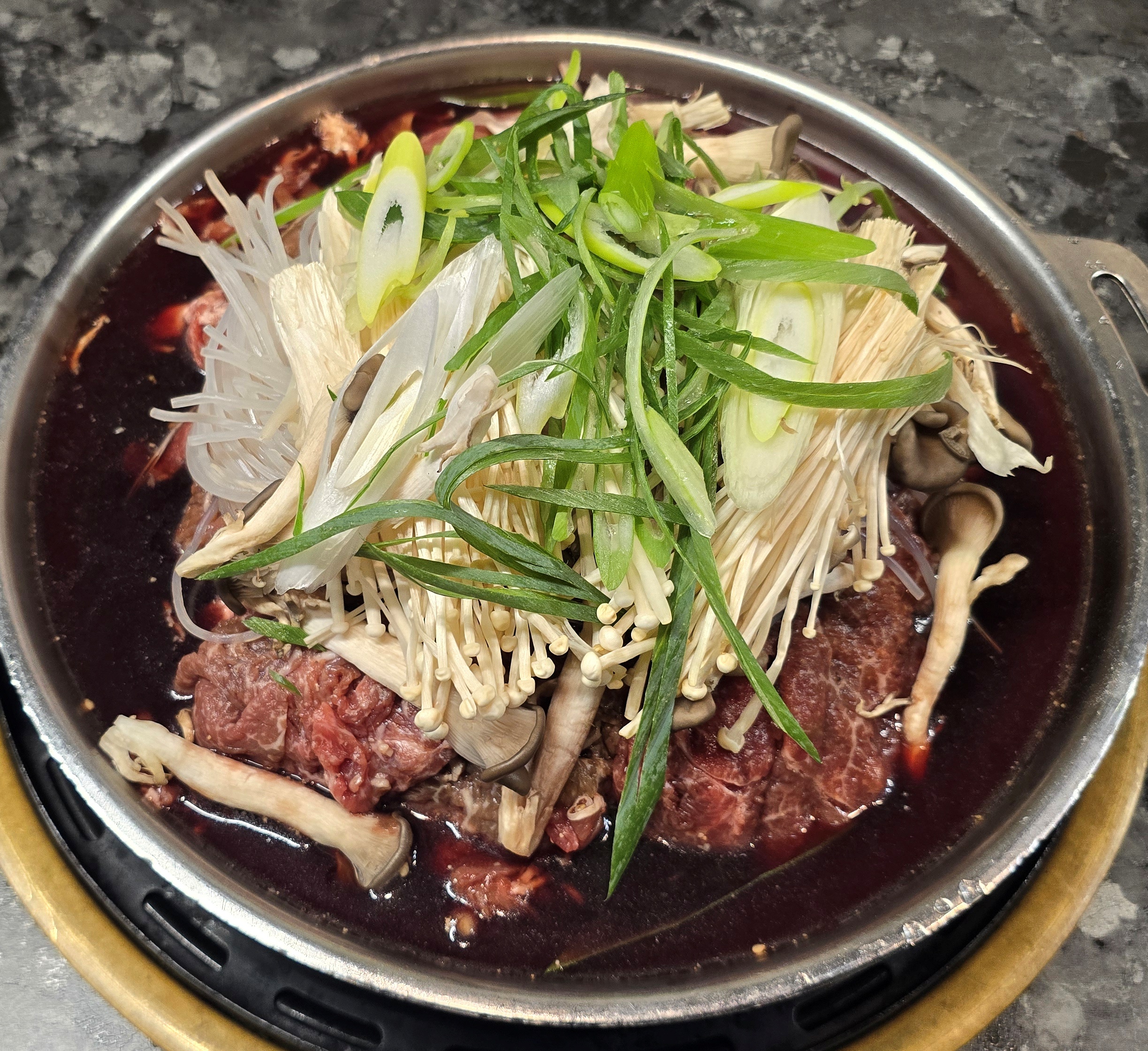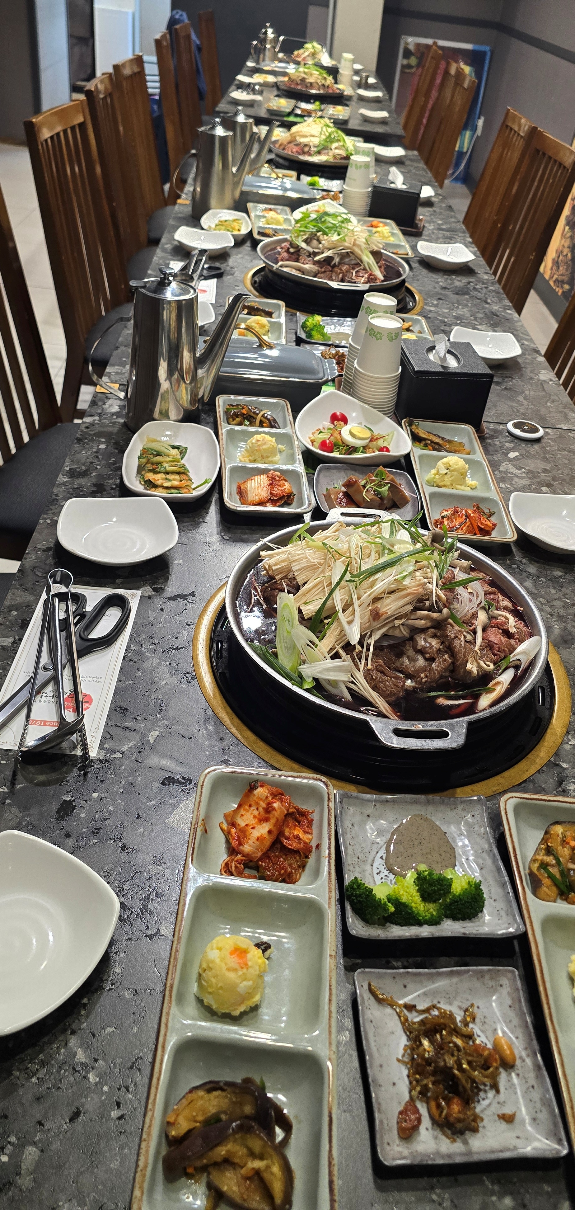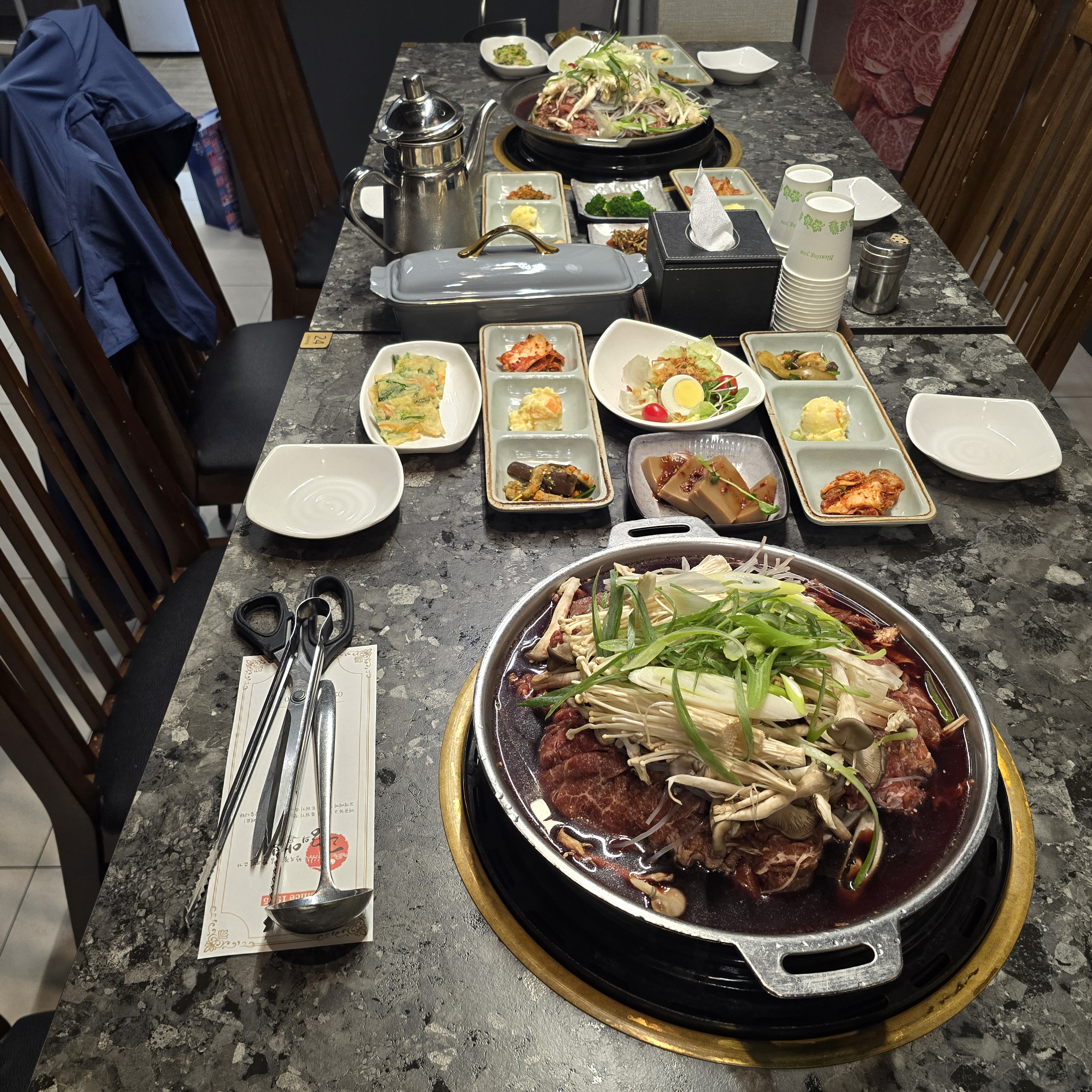점심 메뉴로 주문한 한우 불고기는 엣날 불판에서 욱수를 끓이며 굽는 서울식으로 밑반찬이 9개나 나오며 한국 전통음식을 경험할 수 있는 맛집이다
