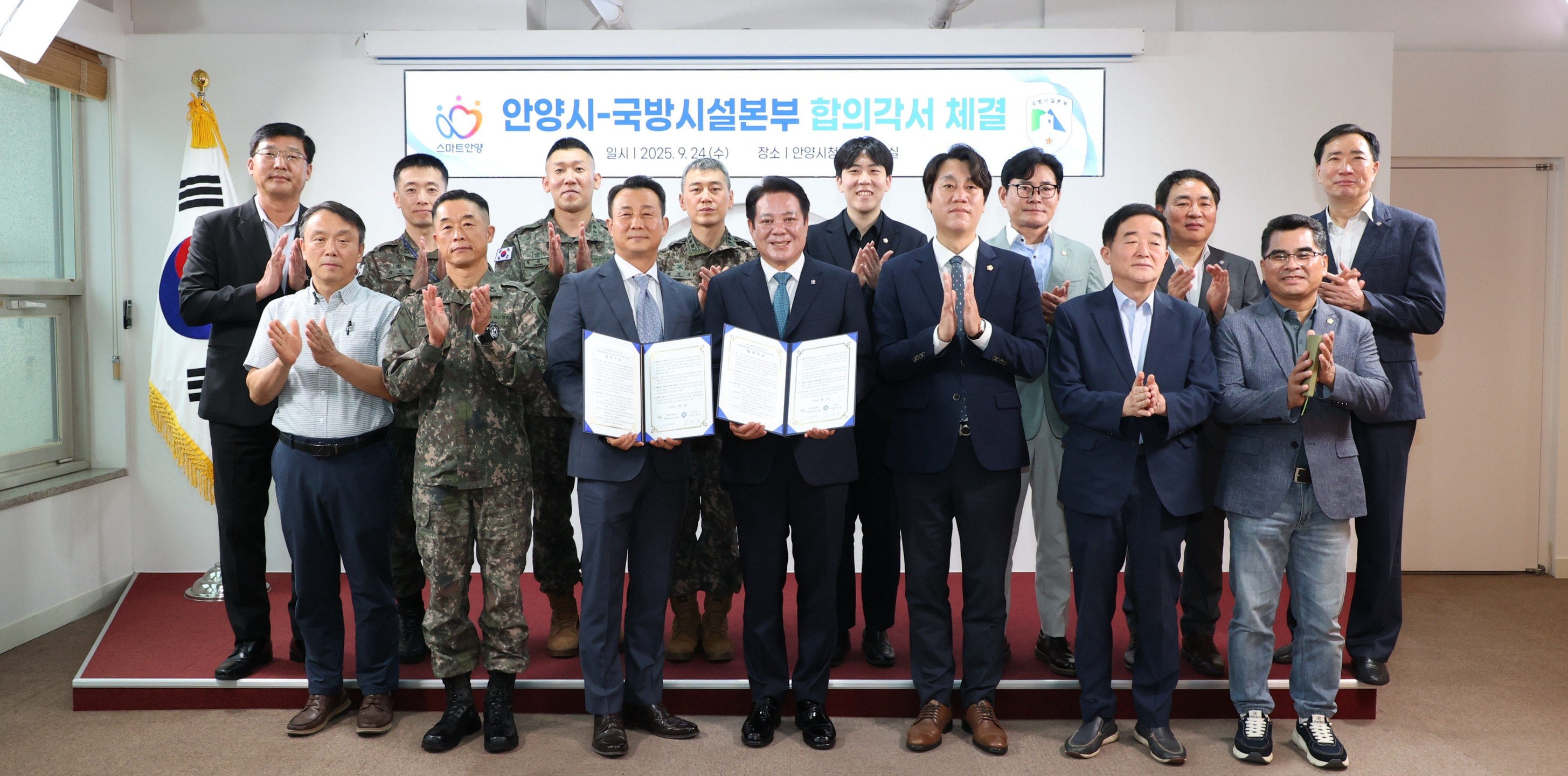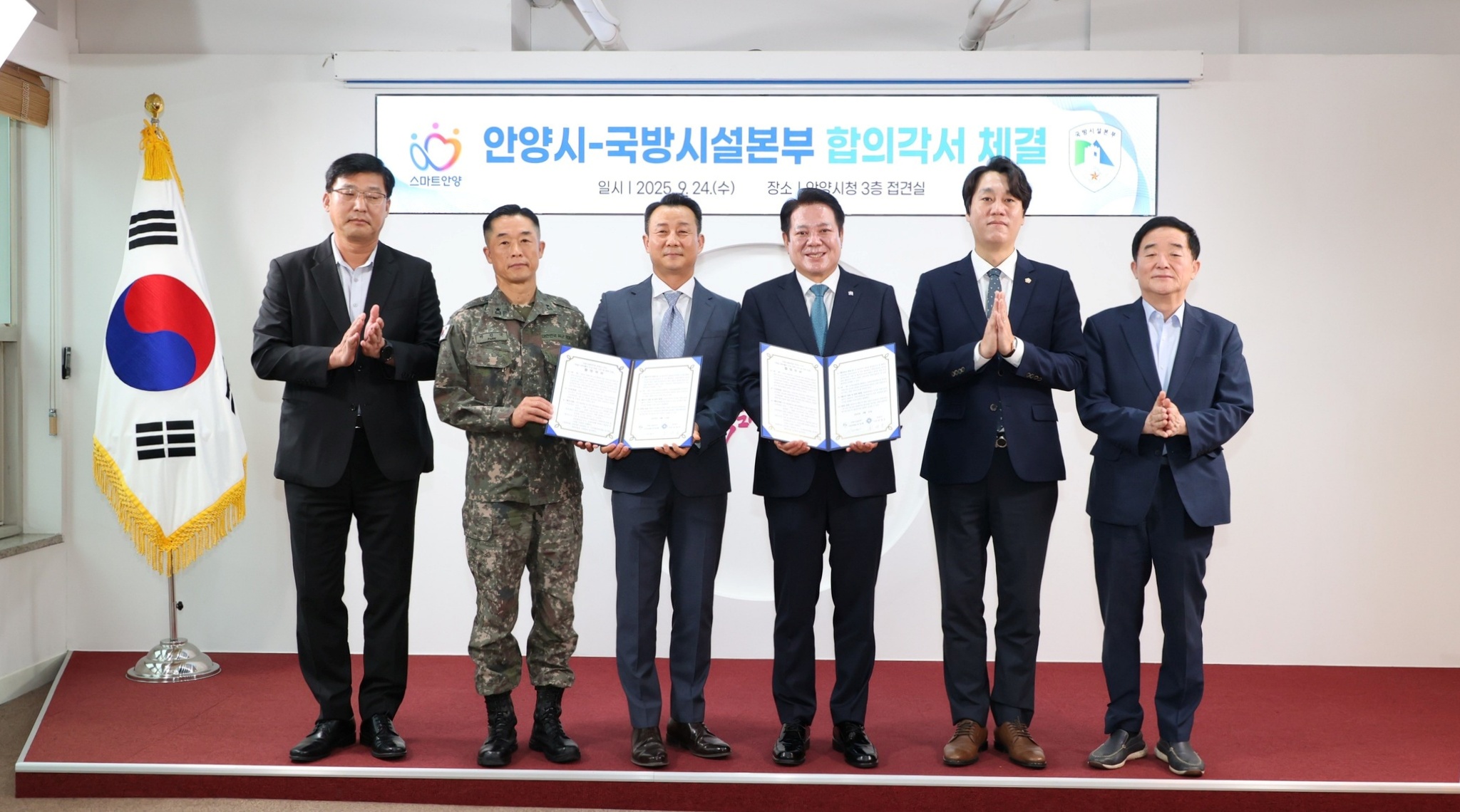 안양시와 국방부가 24일 안양시청에서 안양시 만안구 일대 군부대 탄약 시설의 지하화를 주요 내용으로 하는 '50탄약대대 이전사업 합의각서'를 체결했다.