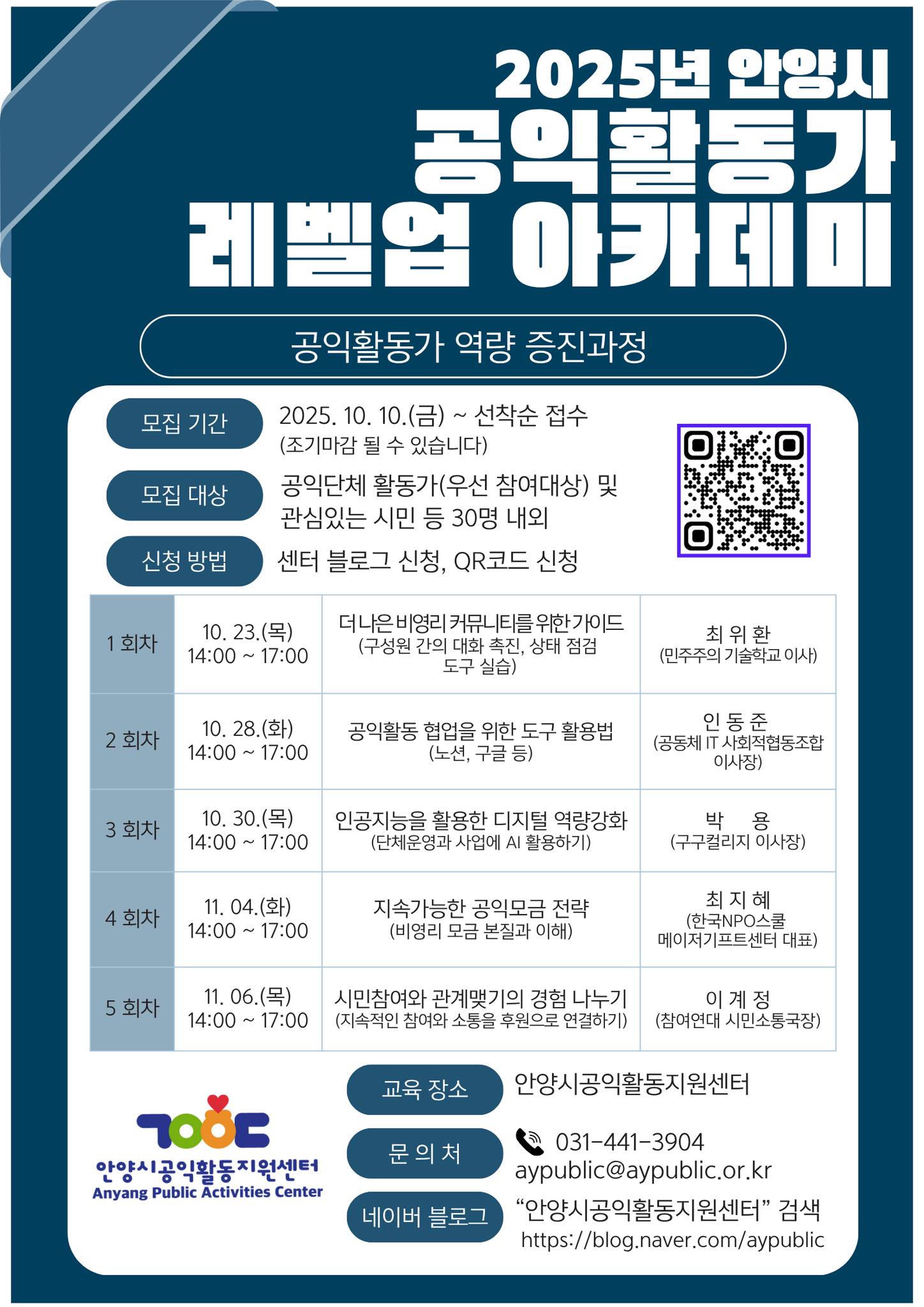 - 교육장소 : 안양시공익활동지원센터