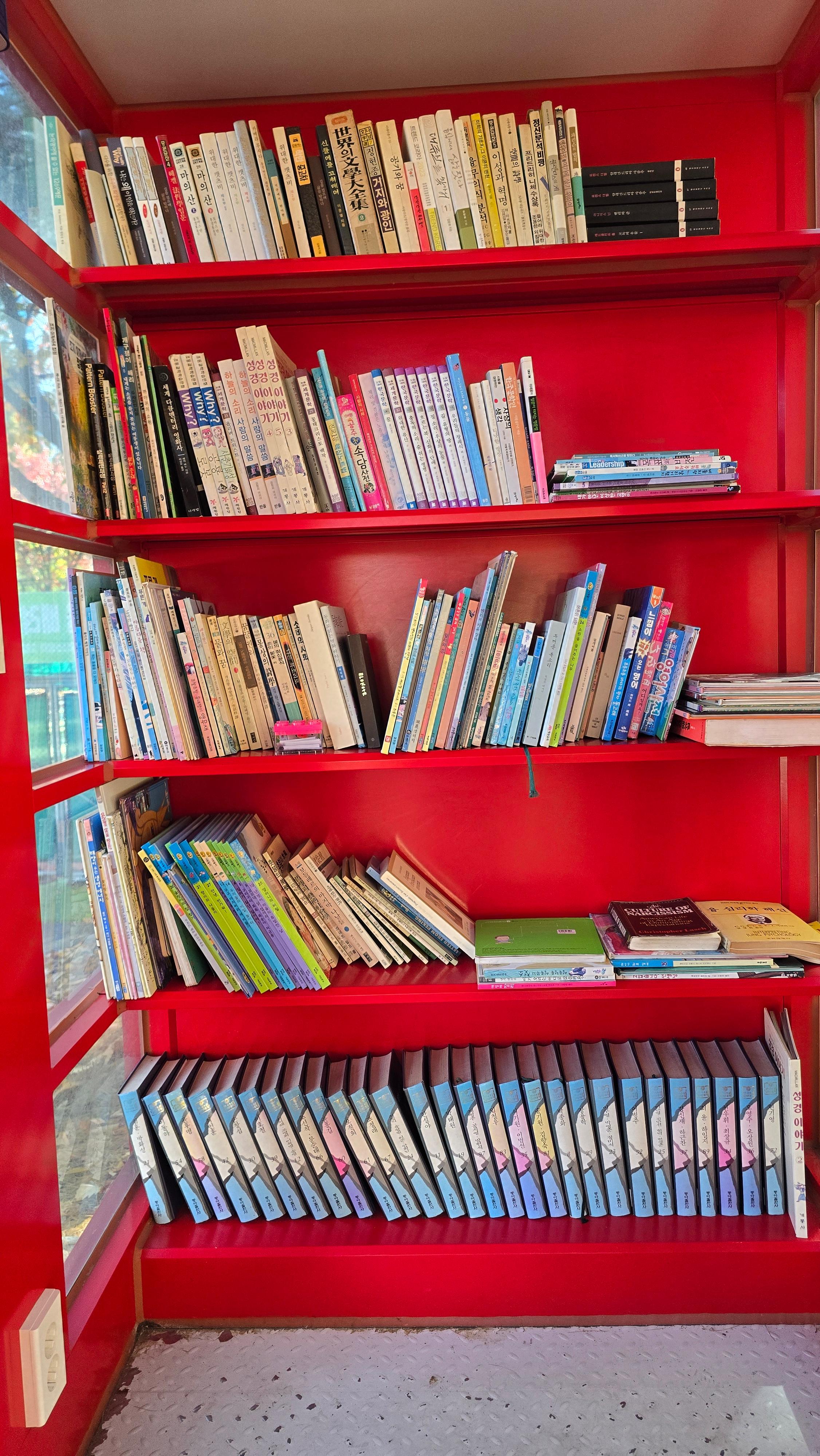 2025.11.10/ #도시기록 #안양 #숲속작은도서관 #평촌중앙공원/ 안양 평촌 중앙공원 테니스장 옆(오른쪽) 나무숲 아래에는 무인으로 운영되는 숲속작은도서관이 있다. 중앙공원에는 이와 별도로 관리사무소(공원 좌측 육교 아래)내 한쪽에 새마을 작은 도서관이 들어와 있다. 매주 일요일과 월요일을 제외하고 14시 ~ 18시까지 운영한다. 동절기에는 13시 ~ 17시까지다.