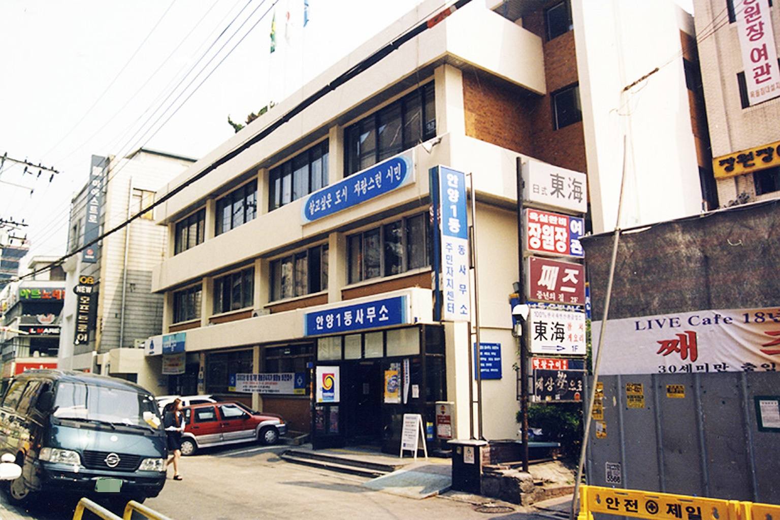 2026.11.12/ #옛사진 #기록 #아카이브 #안영1동사무소/ 1980년대 안양일번가 골목에 있던 안양1동사무소로 당시 지하1층에 지상3층 건물이었다. 1동사무소로 앞으로는 반도패션 빌딩(구 안양백화점), 뒤로는 동해횟집(1층), 째즈라이브카페(2층), 장원장장여관(3층) 건물(현존)이 있었다. 1동사무소 지하에는 70-90년대 중앙정보부(국가안전기획부) 분소가 있어 조정관이라 불리우던 안양시 파견 인력이 상주 근무하기도 햇다.