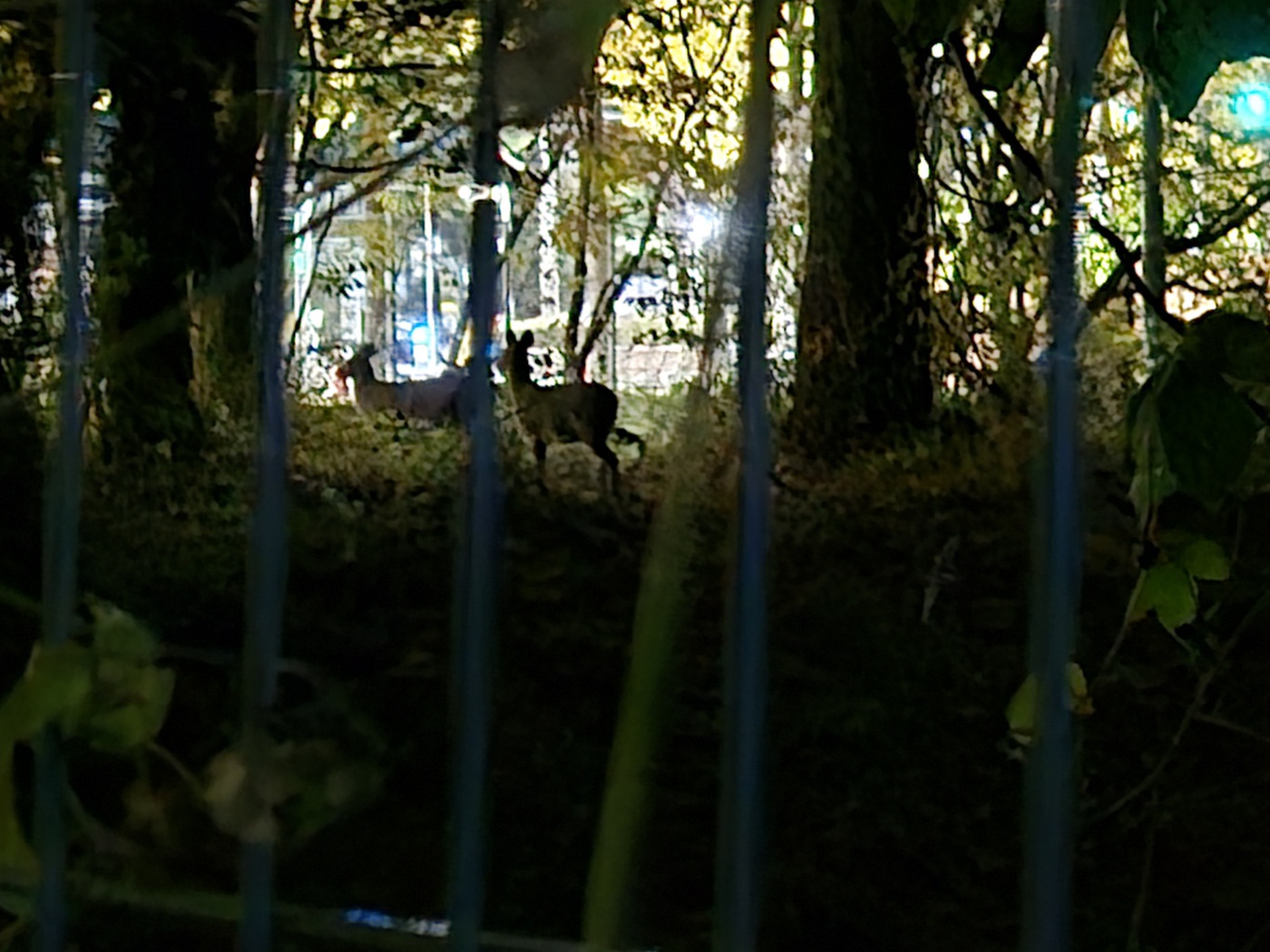2025.11.14/ #도시기록 #안양 #고라니 #옛검역원 11월 14일 제보받은 안양6동 옛검역원 뒷쪽 미개방구역의 고리니 2마리. 13일 저녁 10시 30분경 안양세무서에서 만안경찰서 방향으로 가던 안양6동 주민이 철조망 안쪽에서 움직이던 고라니를 발견해 스마트폰으로 찰영했다. 주민들이 제보한 사진과 목격담에 의하면 철조망으로 들러쌓인 미개게방구역 안에는 고라니 3마리가 몰래 살고 있다.