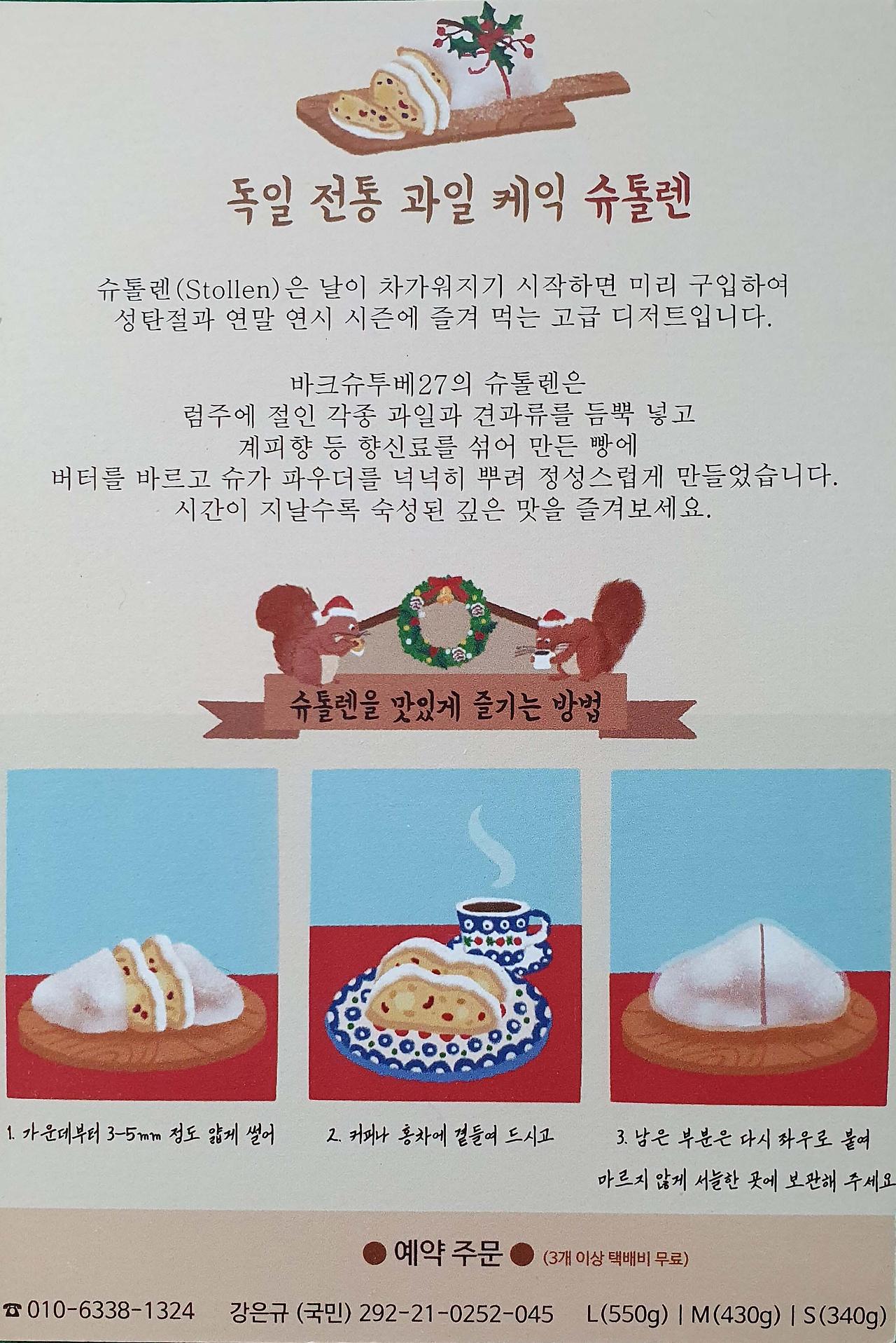 겨울이 기다려지는 맛, 크리스마스에 맛보는 슈톨렌(Stollen)을 구입하기 위해 오랫만에 안양 바크슈투베27에 다녀왔습니다.