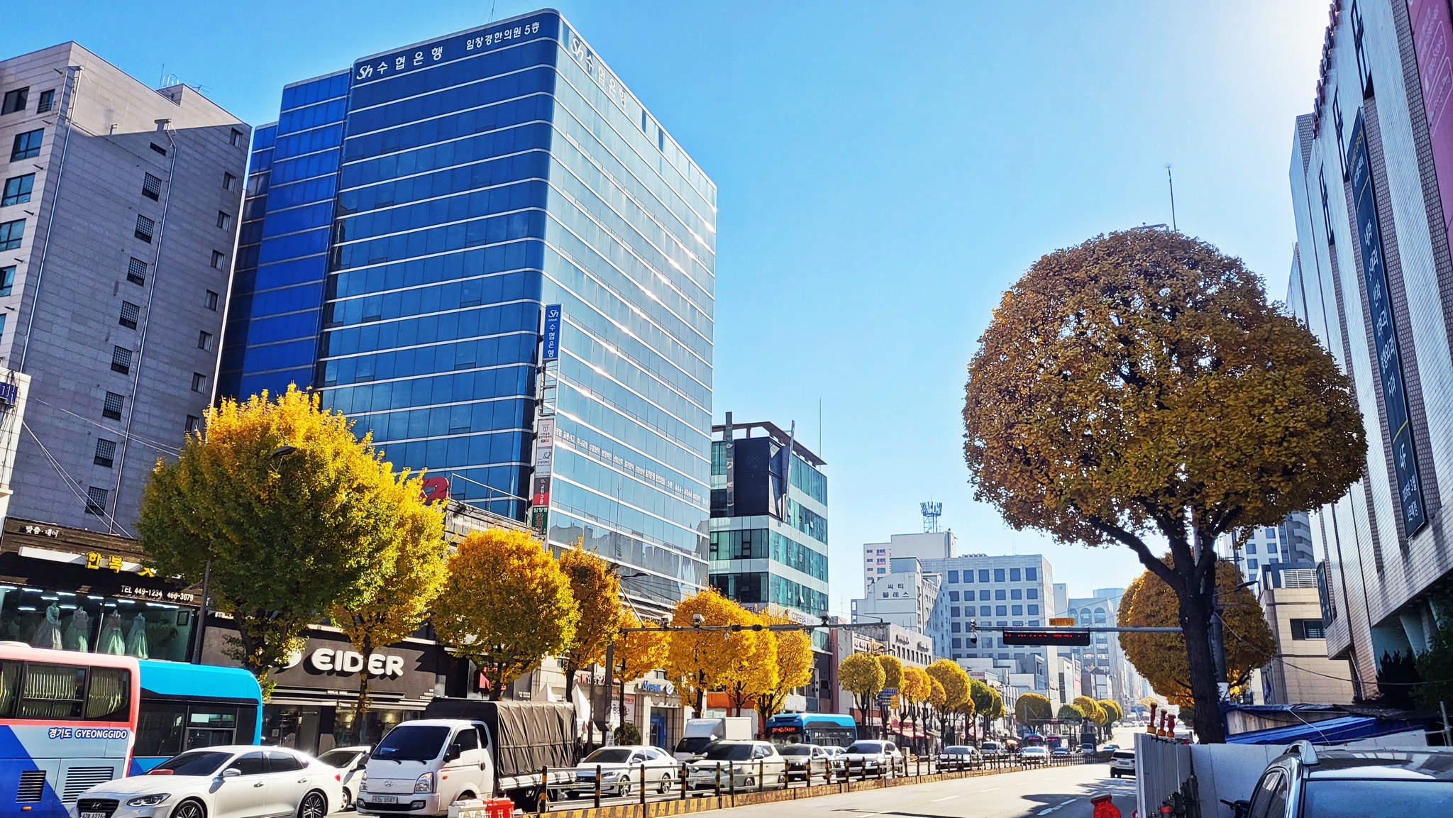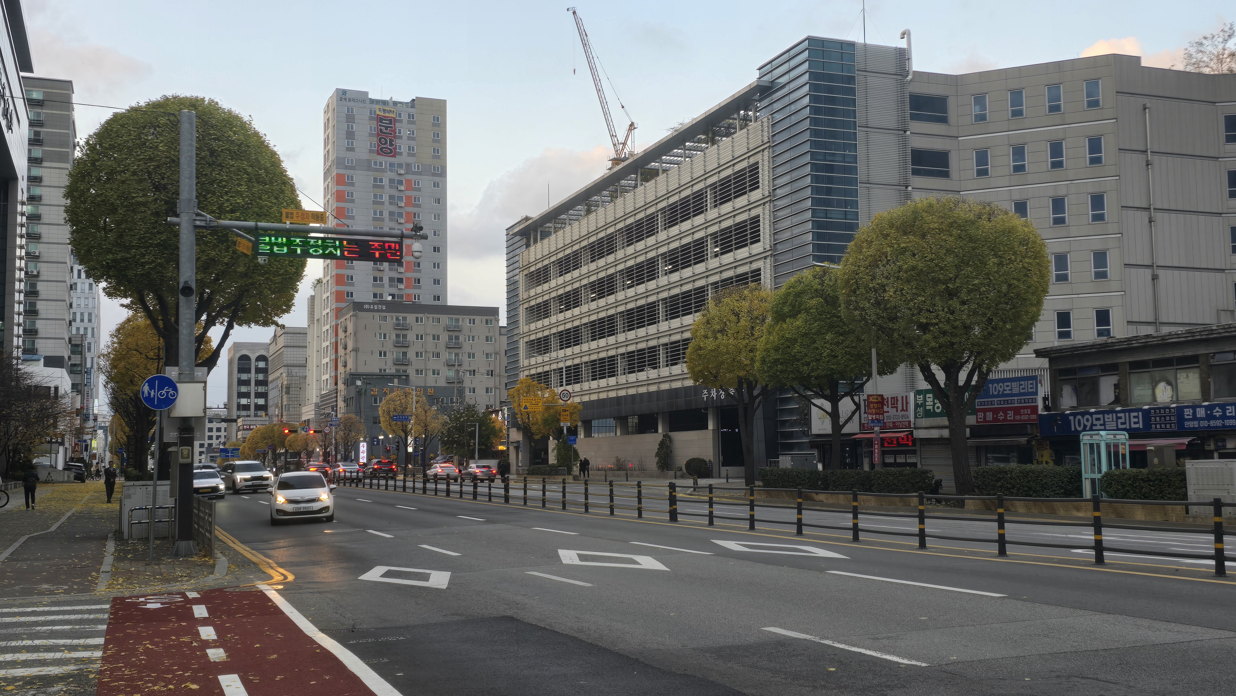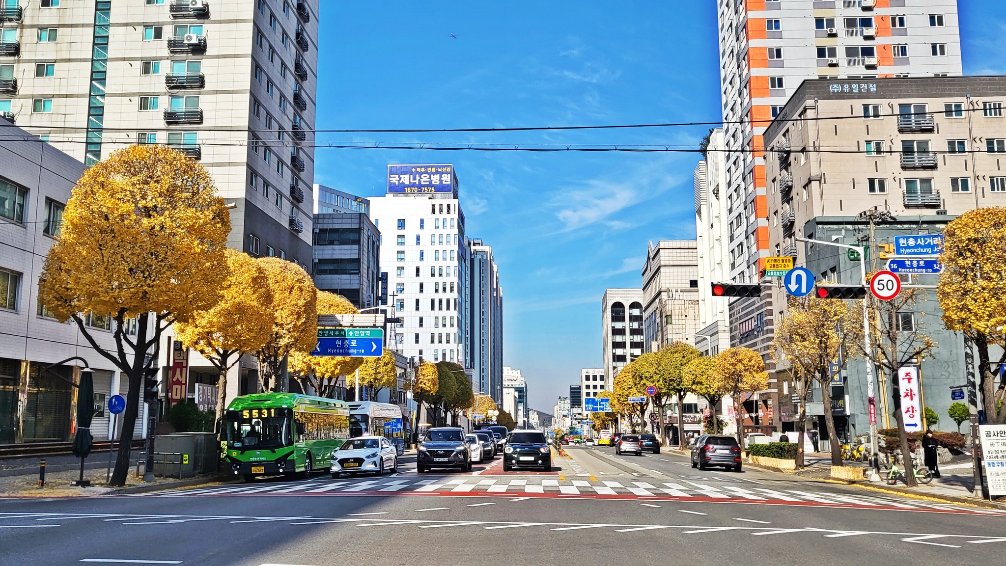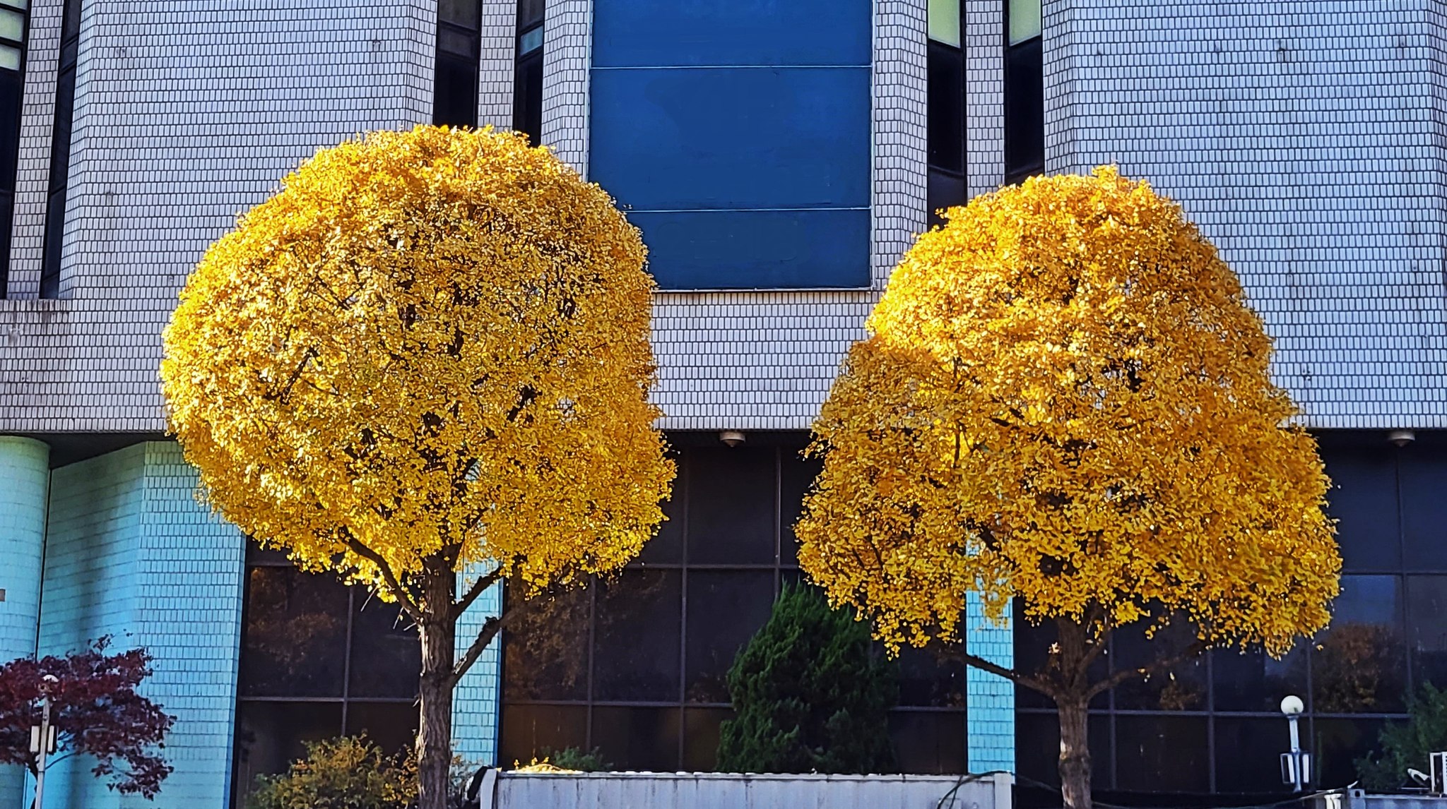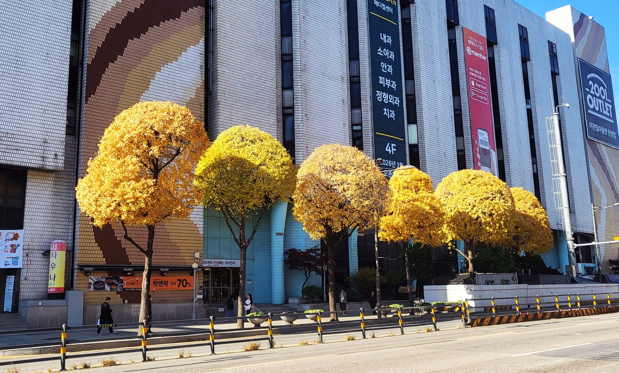 2025.11./ #도시기록 #안양 #디로수 #은행나무/ 안양 만안구 중앙로의 둥근공 모양의 은행나무 가로수들 노랗게 물들었다.
