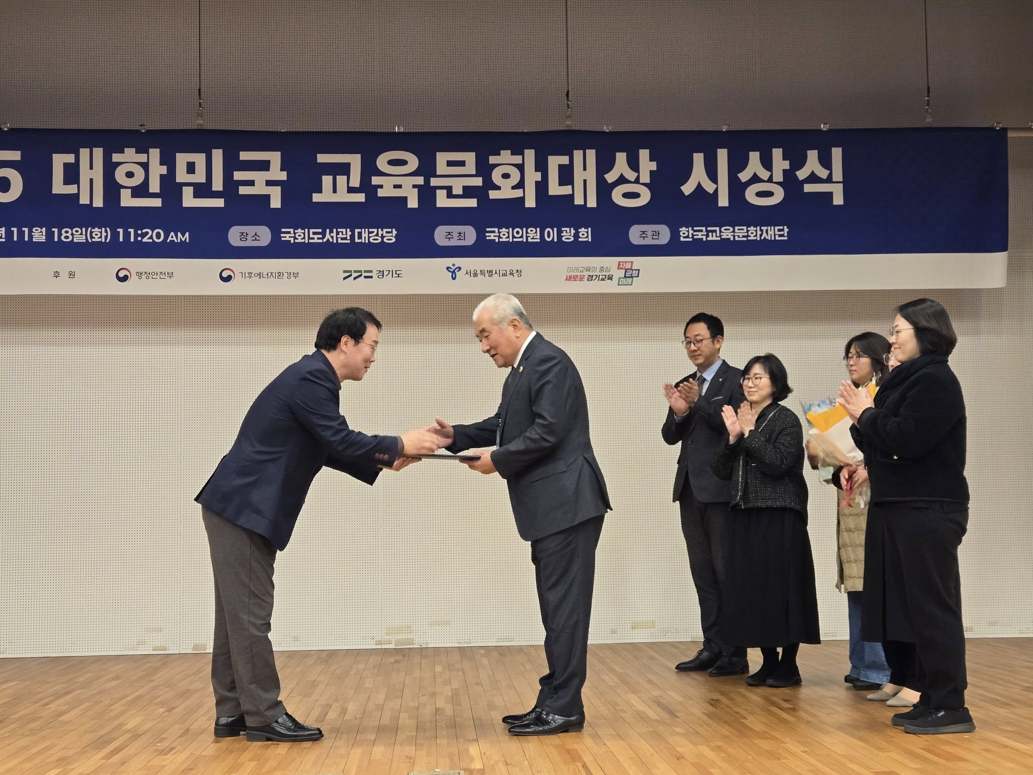 (재)한국교육문화재단이 주최하고 서울특별시, 경기도교육청, 경기도, 한국교육문화진흥협회가 후원한 '2024 대한민국 교육문화대상'이 지난 18일 국회도서관 대강당에서 열렸다.
