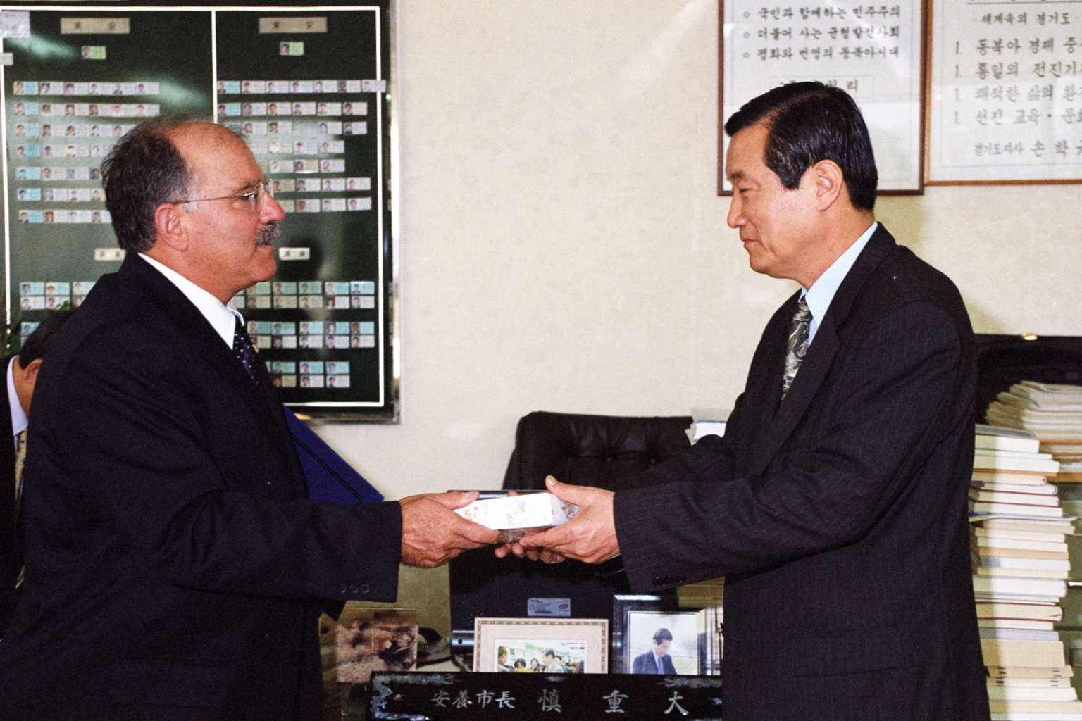 2025.11.28/ #아카이브 #옛사진 #안양 #기록소환 #since2003 #닐미샬로프 #명에시민증/ 1960년대 말 안양의 옛사진을 제공한 닐미샬로프씨를 초대한 안양시가 2003년 10월2일 제30주년 시민의 날을 맞이하여 시민축제 행사에서 닐 미샬로프 사진전을 개최하고 신중대 안양시장이 안양시청 3층 안양시장 집무실에서 명예시민증을 전달하였다. 닐 미샬로프는 안양과 서울 용산 미8군 사령부를 오가며 1960년대 후반의 주한미군과 한국의 다양한 모습을 카메라에 담았다. 당시 그가 찍은 사진은 약 1,200여점으로 2017년 대한민국 국가기록원에 기증하였다.