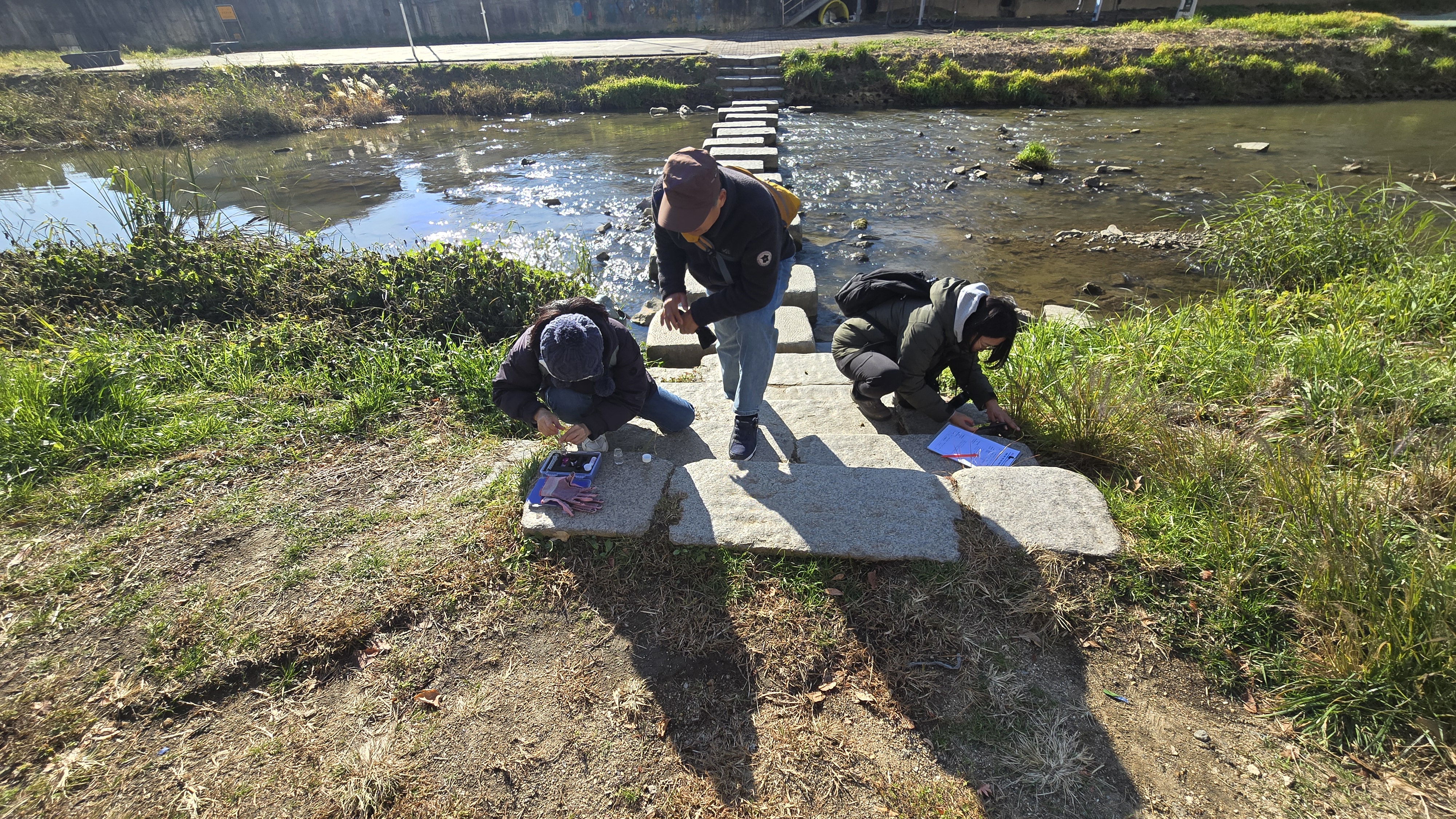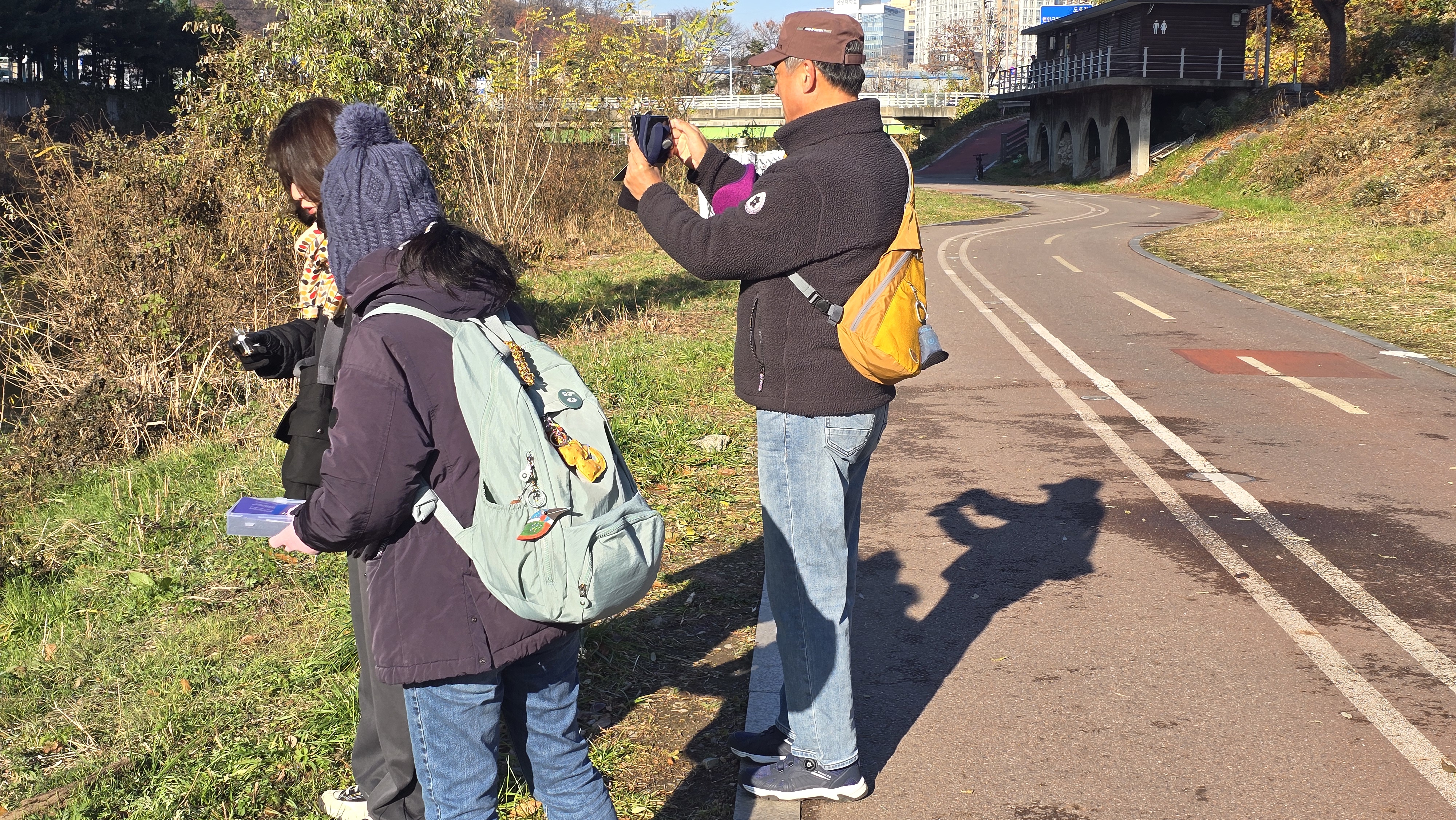 2025.11.28/ #생태모니터링 #안양 #안양천/ 명학대교~구군포교 구간에 대한 모니터링. 해당구간 3개 지점에서 수질검사 및 생태조사. 백할미새, 노란할미새, 붉은머리오목눈이 등 발견. 보령교~금호교 구간에 군포시에 최근 설치한 돌다리의 디딤돌 간격이 좁아 나뭇가지가 걸리고 낙엽 등 부유물이 쌓여 물 흐름에 지장을 주고 있어 개선이 시급함.