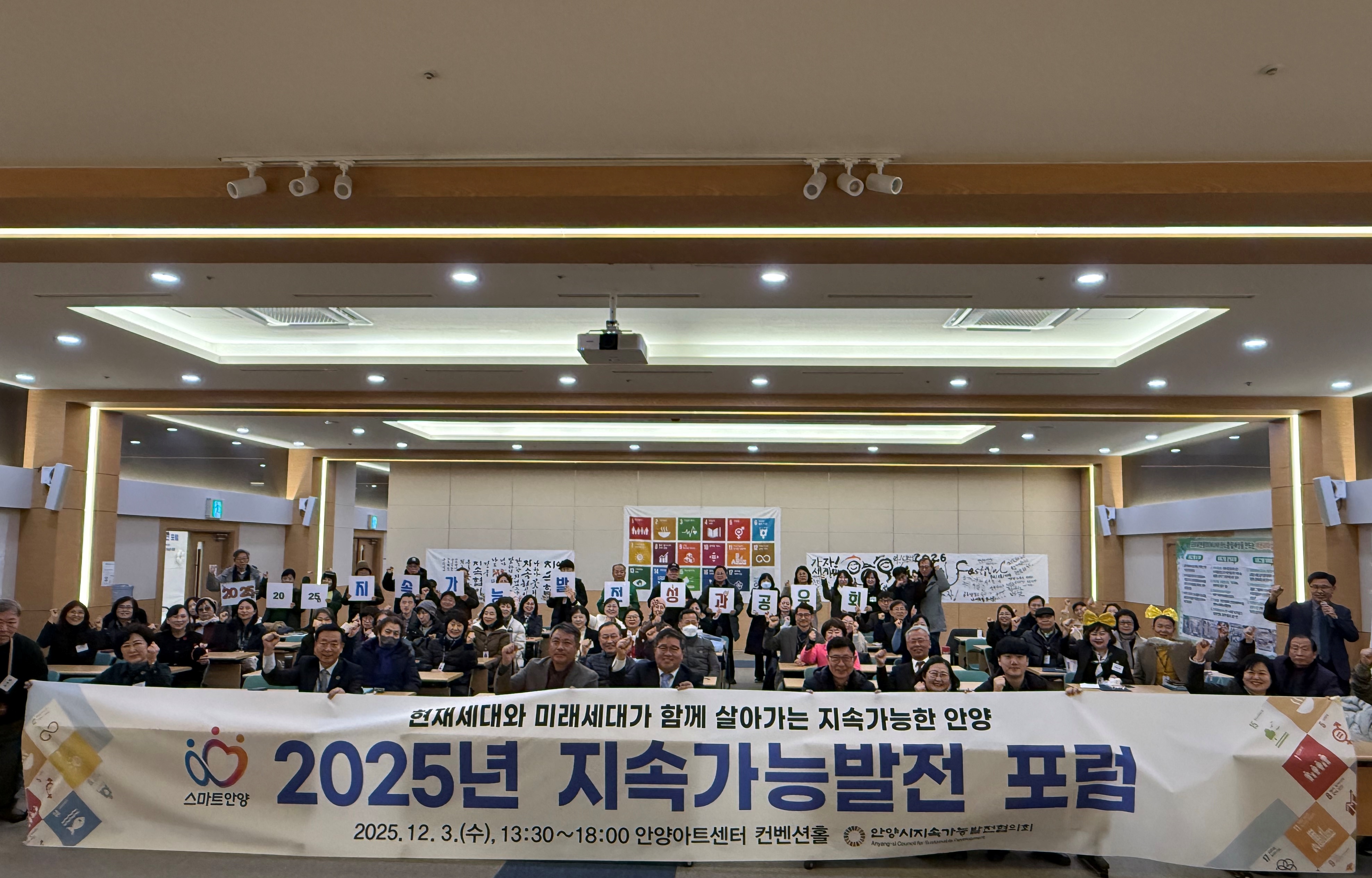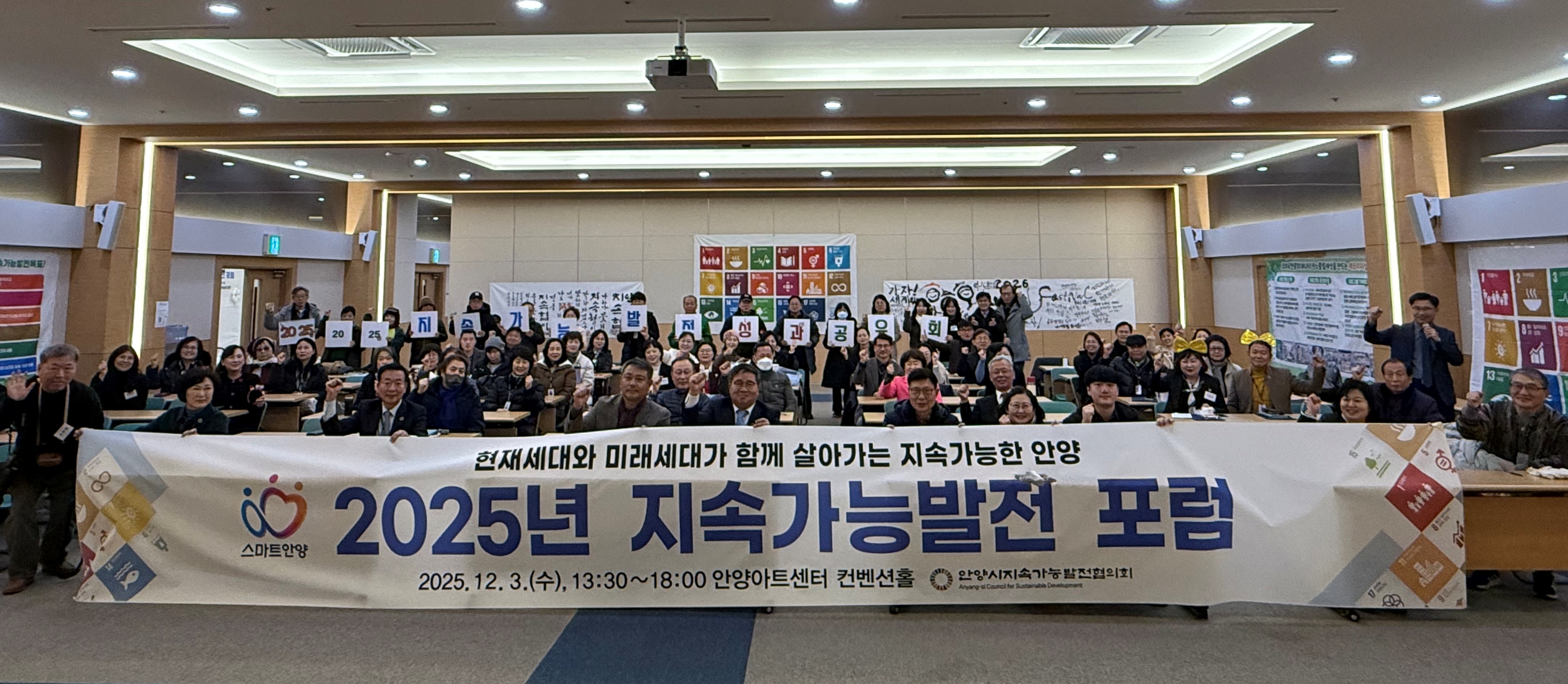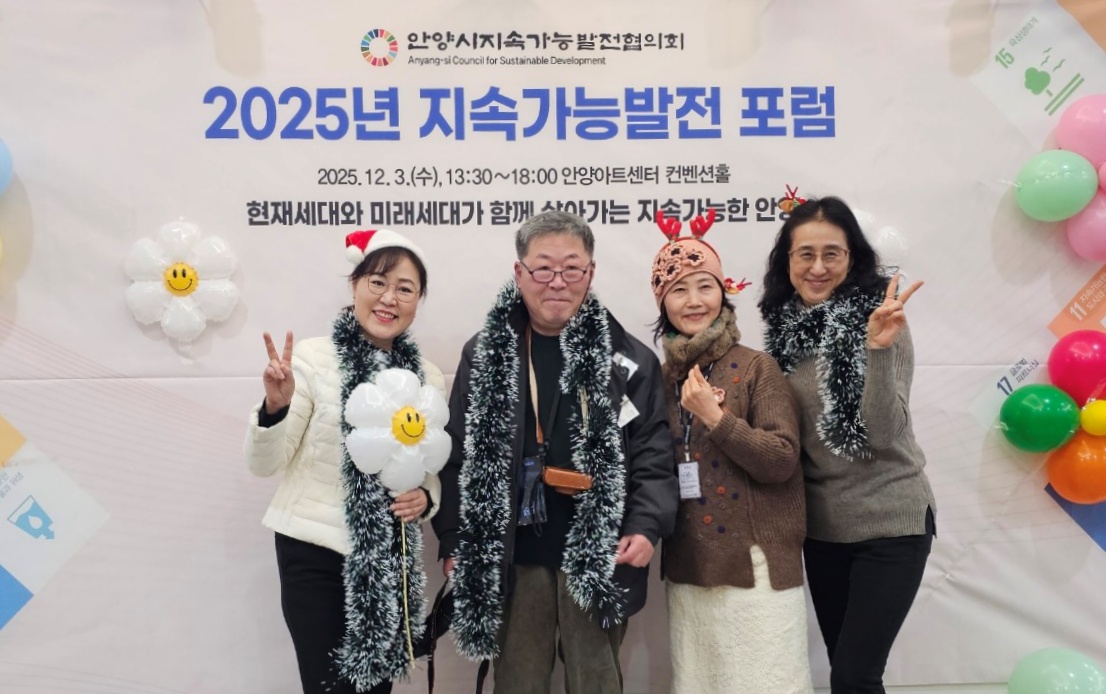 12월 3일 오후, 안양아트센터 컨벤션홀에는 겨울볕처럼 따뜻한 사람들이 모였다. "현재세대와 미래 세대가 함게 살아가는 지속가능한 안양"을 모토로 올 한해동안 열심히 퐐동해 온 안양시지속가능발전협의회 사업을 소개하고, 나누고, 평가하는 자리인 ‘2025 지속가능발전포럼’이 열리는 날이다.