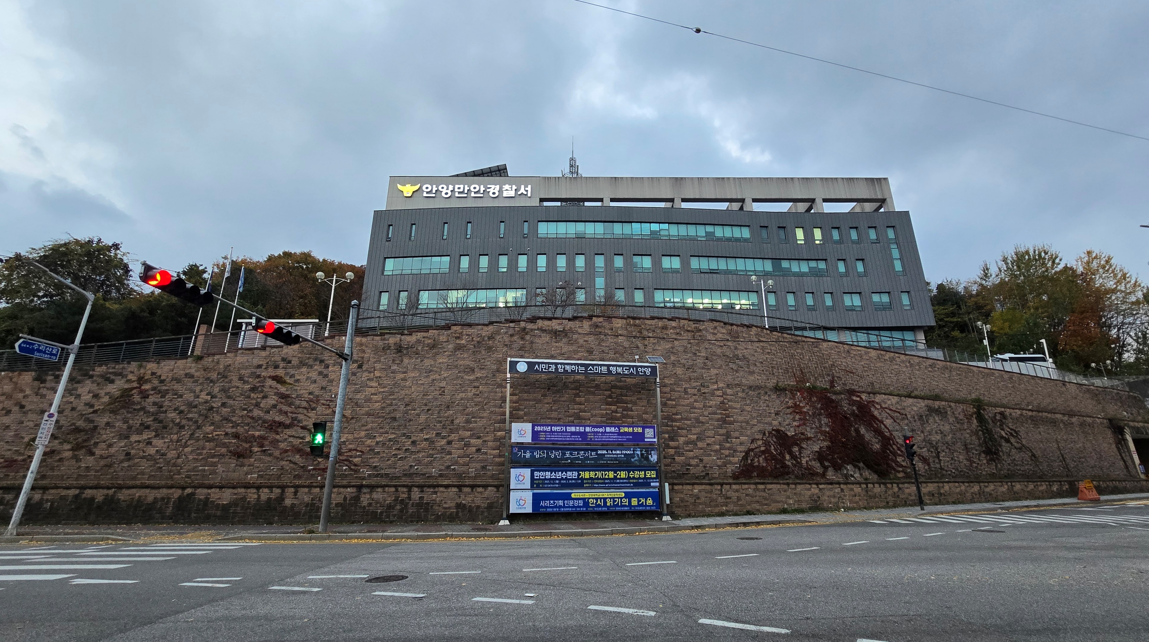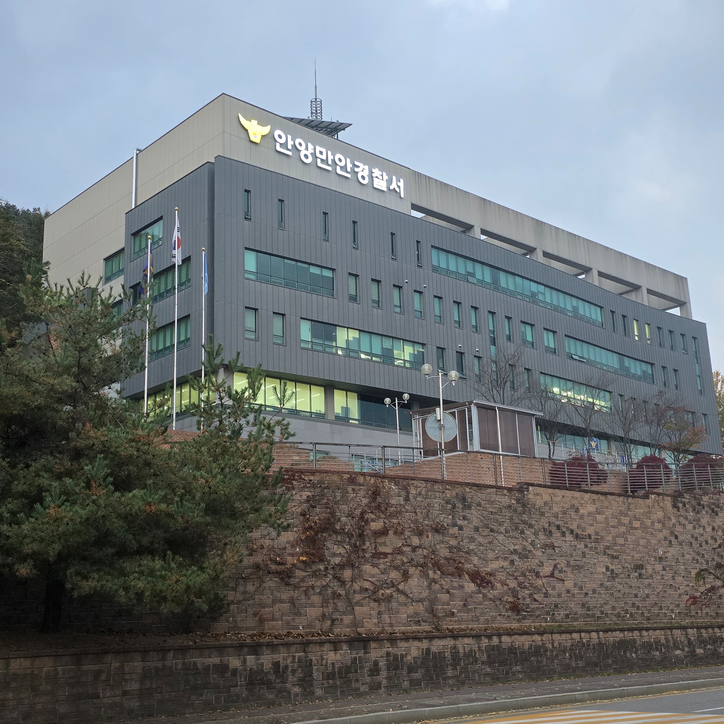2025.12.02/ #도시기록 #안양 #공간 #만안경찰서/ 수리산 끝자락 언덕위에 마치 성 같은 형태로 우쭉 자리하고 있는 만안경찰서.