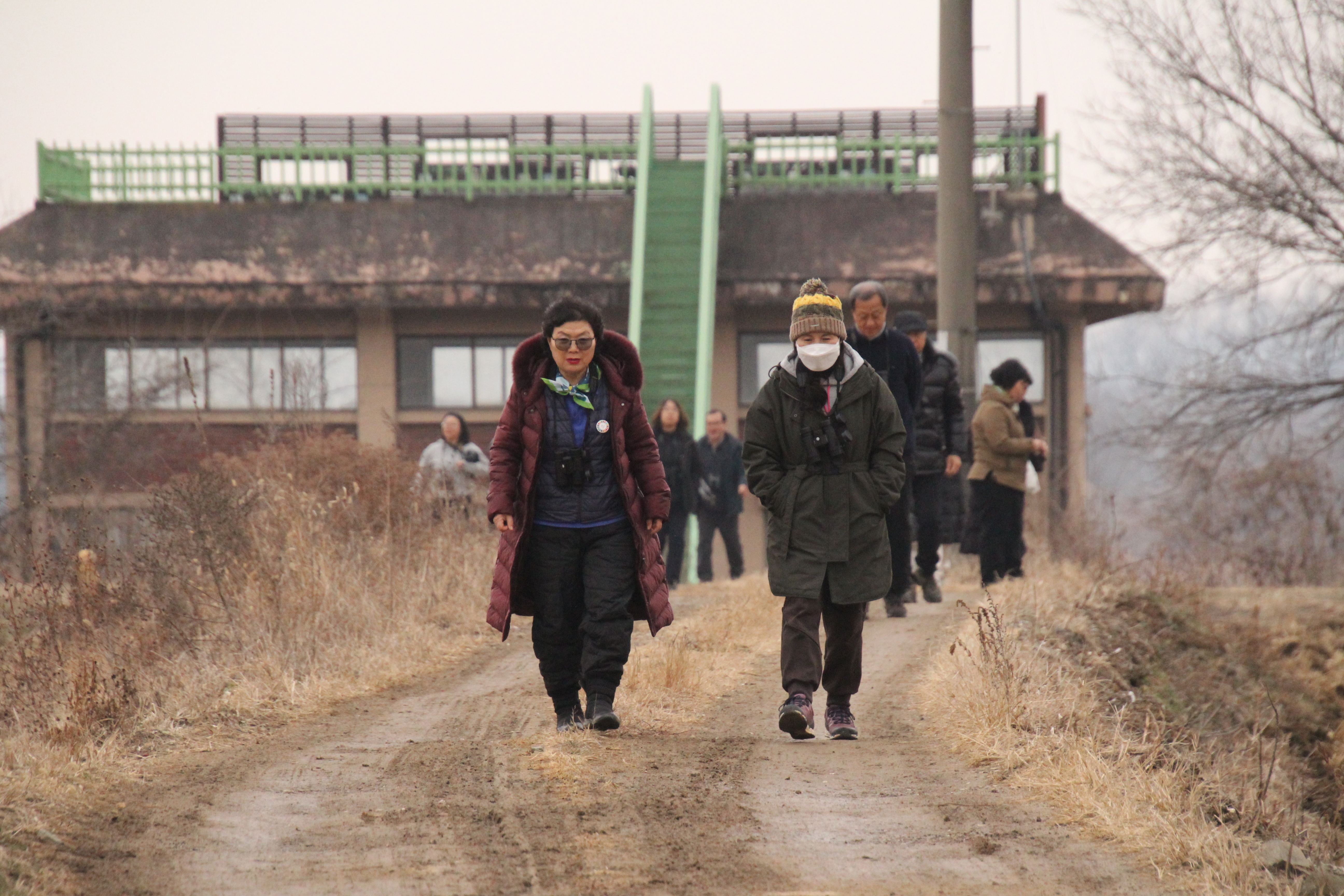 독수리식당 방문후에는 파주 통일촌 마을의 협조와 민통선 출입 절차를 밟은후 통일대교를 건너 민통선 안으로 들어갔다. 장단면 통일촌 마을로 이동해 청국장과 제육볶음으로 맛난 점심식사를 한후 조류탐사 전문가의 안내로 양수장 조류관찰대를 비롯 민통선안 비포장도를 따라 이동하면서 철새들을 관찰하면서 이날 탐조에서 가고자했던 초평도앞 동파양수장 옥상위 조류전망대를 찾았다.