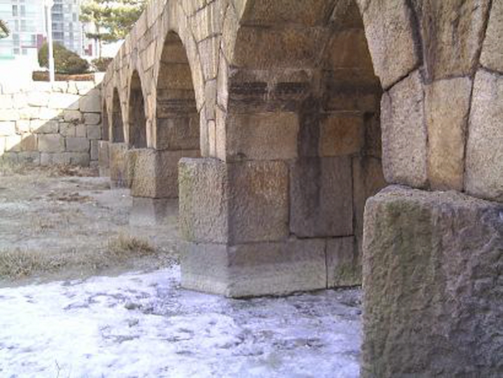수문사이에는 장방석(장방석)을 배열했고 다리위에도 긴돌을 깔아 평면을 이루도록하여 전체적으로 우아함을 간직한것은 물론 교랑의 공법 또한 학술적으로 높이 평가되고 있다.