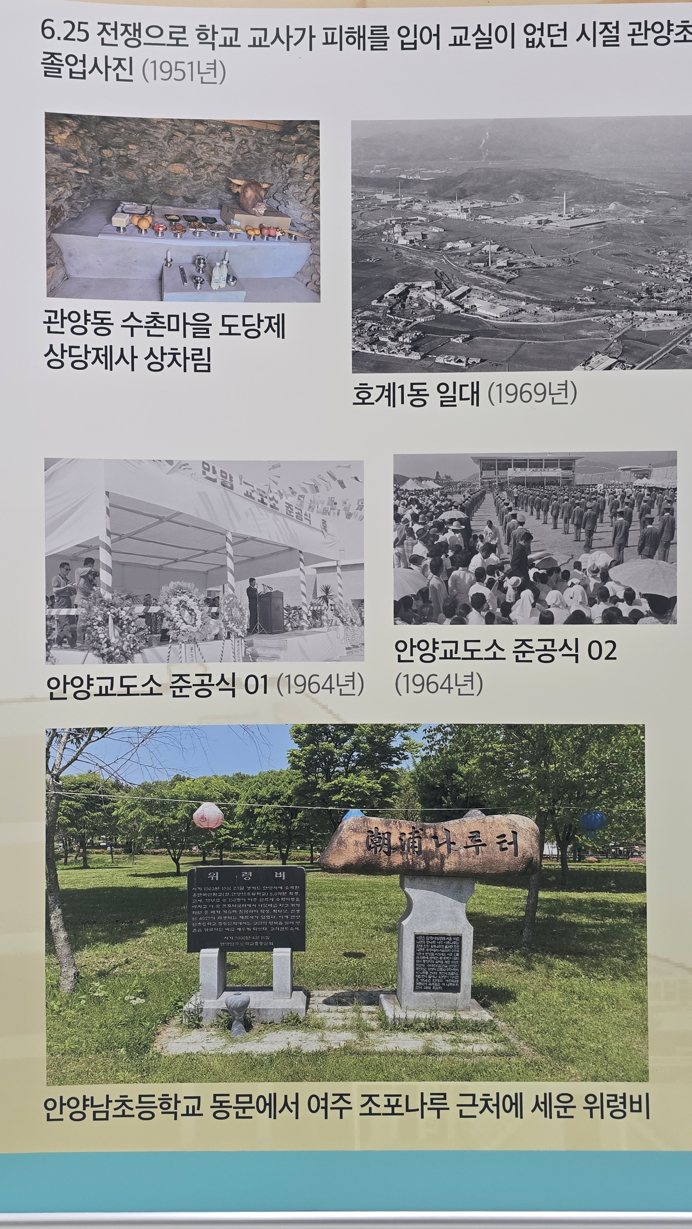 기념식과 함께 개막한 사진·영상전 '안양을 기억하다'에는 안양시사에 수록된 옛 항공사진과 도시계획도, 동네 전경, 공장과 시장, 학교와 유원지 등 시민의 일상을 담은 자료를 주제·지역별로 재구성해 선보였다. 전시는 12월 29일까지 안양문화원 1층 전시실에서 이어지며, 시민 누구나 무료로 관람할 수 있다.