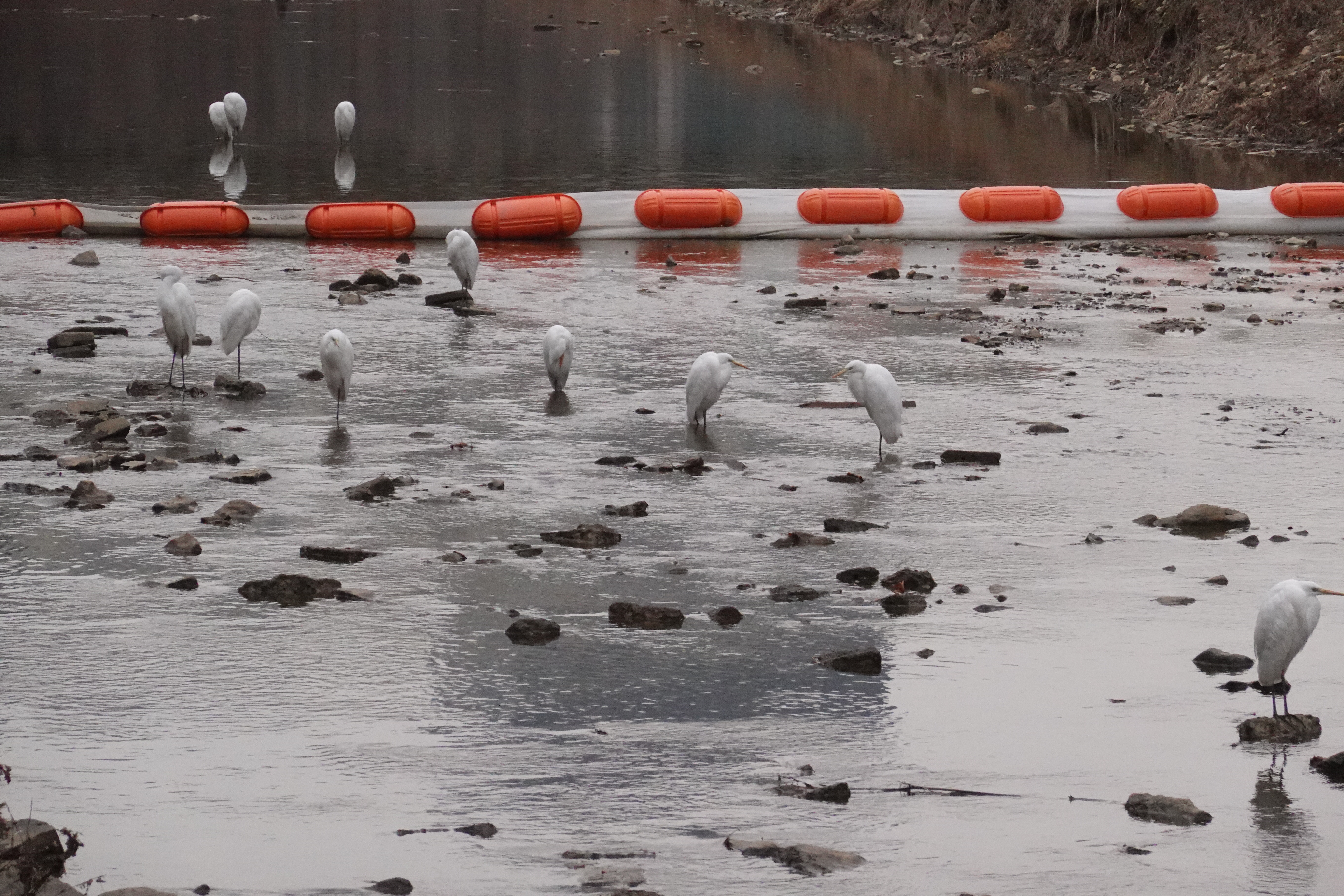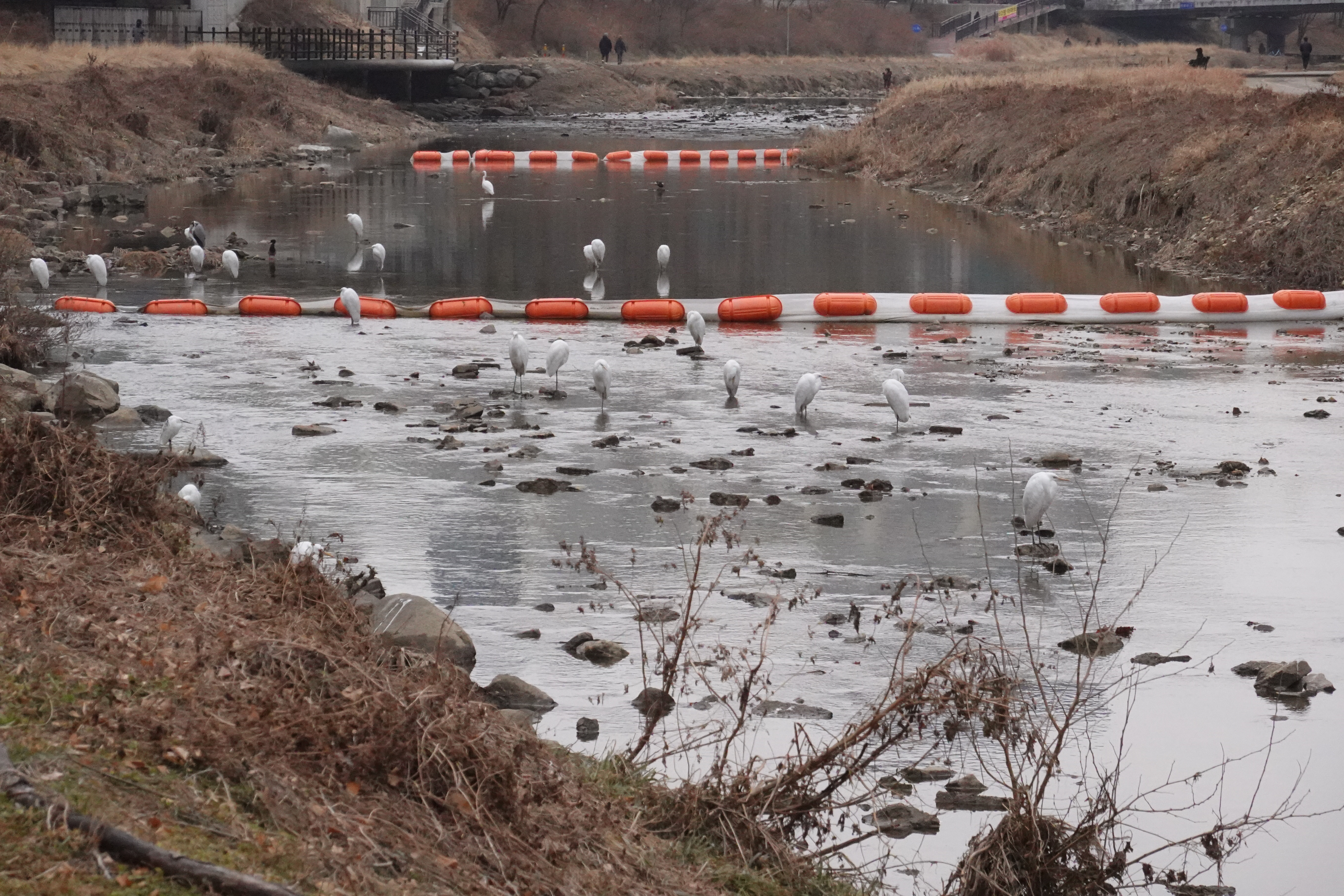 2026.01.18/ #도시기록 #백로떼 #안양/ 매년 겨울이 되면 쇠백로와 중대백로들이 떼로 모여 마치 반상회를 열기라도 한듯 옹기종기 모여서는 하루를 지낸다. 고정된 장소가 아니지만 안양천과 학의천 어느 한곳에 모이는데 오늘은 안양천 덕천교와 서로교 중간 지점에 모여 있다.