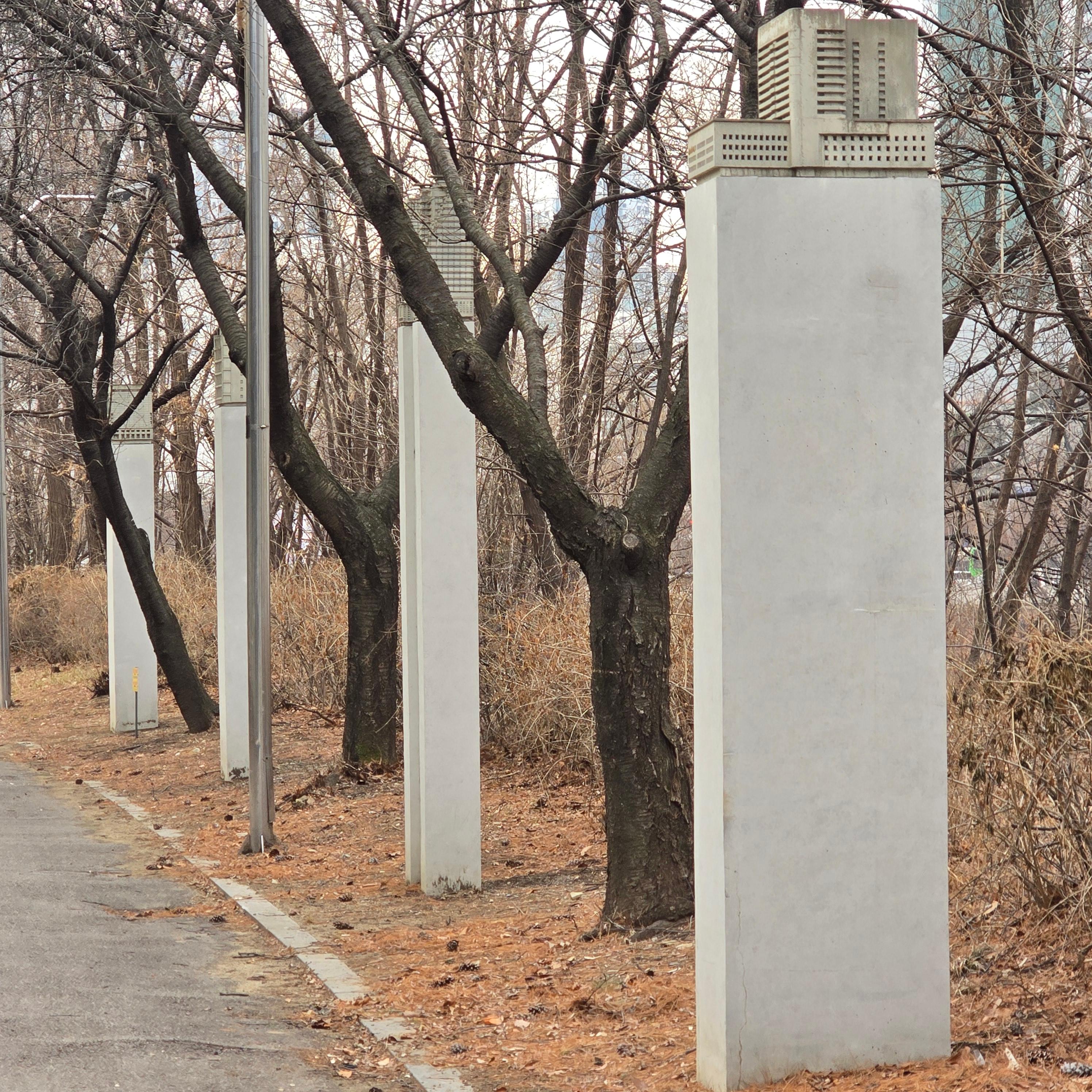 2026.01.18/ #공공예술작품 #apap #안양 / 2007년 제2회 APAP 당시 안양 학의천 남쪽 학운공원 산책길에 설치된 이 작품은 김상균 작가의 떠도는 섬들이다