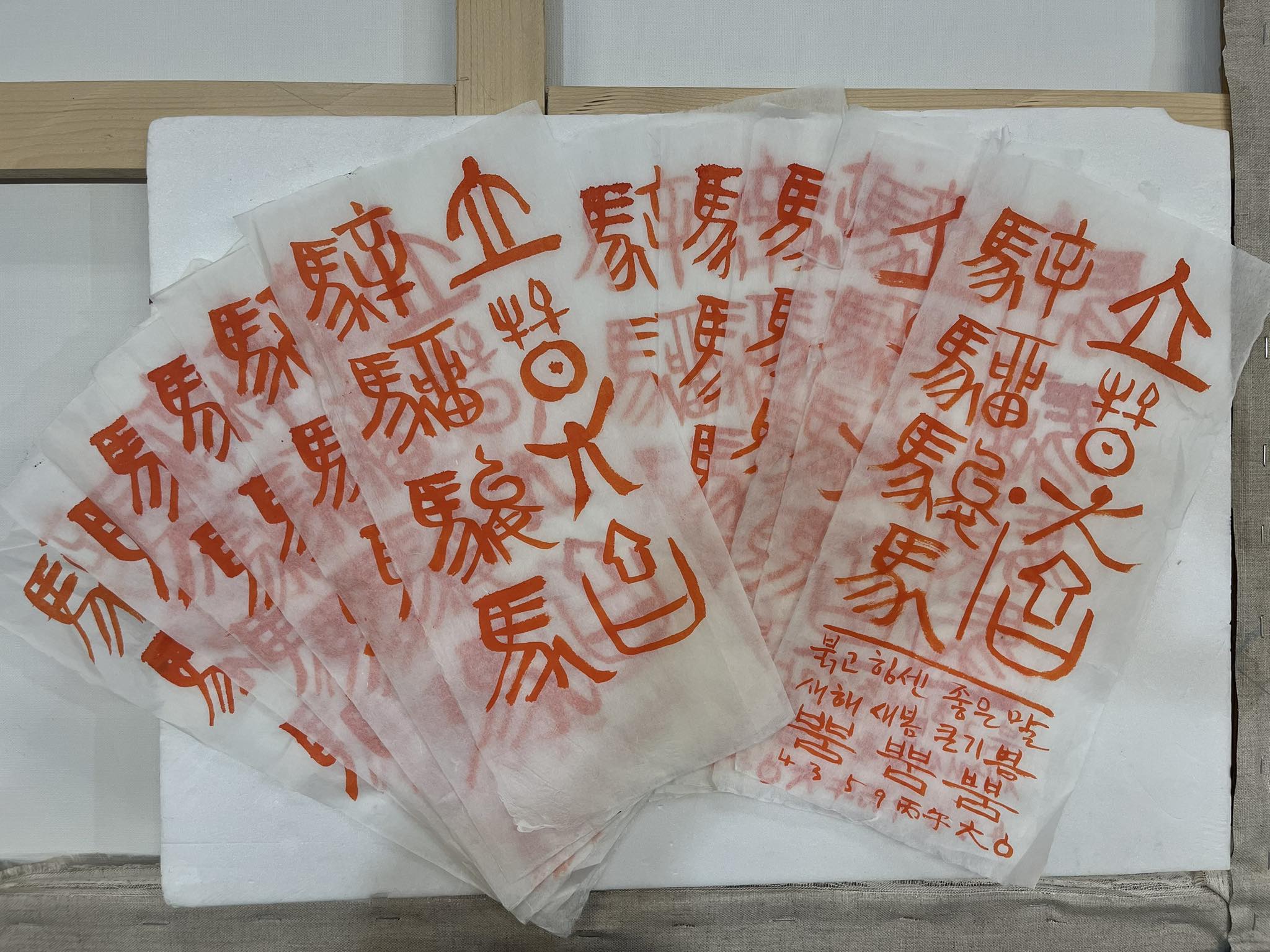올해 입춘방 내용은 ‘성류원준 입춘대길‘ 을 붉은주사로 썼습니다. 붉고 좋은 말을 상징하는 네자를 금석문에서 찾아서 ’성류원준‘을 짜집기했습니다. ‘기니디리미비시이 지치키티피히 으이아!‘ 는 다석 류영모님의 다섯일지에서 따온 주문입니다. 소리내서 읽어보시면 힘이 납니다! ㅎㅎ